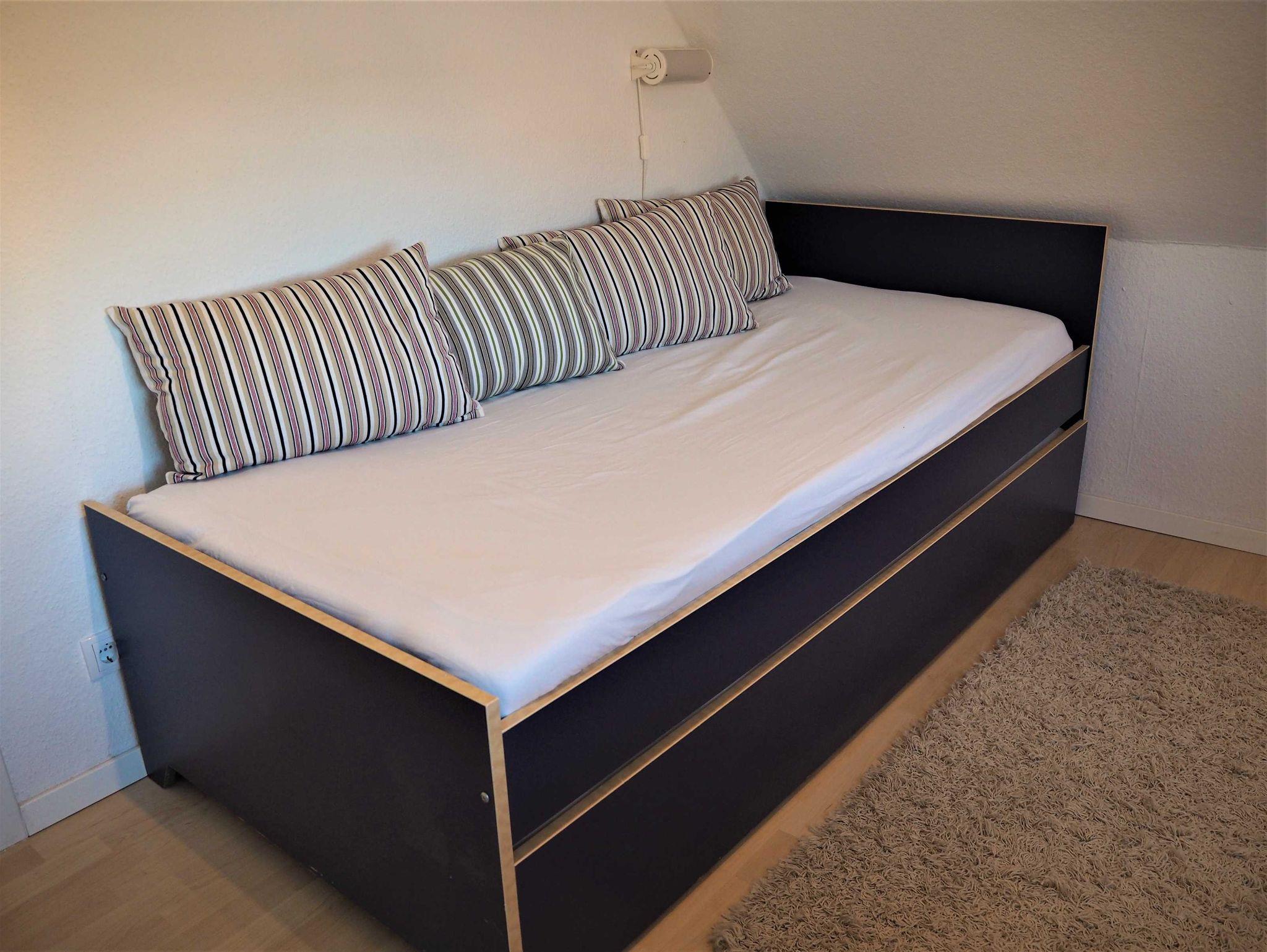 Die Wohnung verfügt über ein Schlafzimmer mit Doppelbett und Smart TV, ein Einzelzimmer mit Zustellbett sowie einen Schreibtisch. (Alle Betten 90X200 cm). Zusätzlich kann ein Kinder-Reisebett und ein Kinder-Hochstuhl angefragt werden.