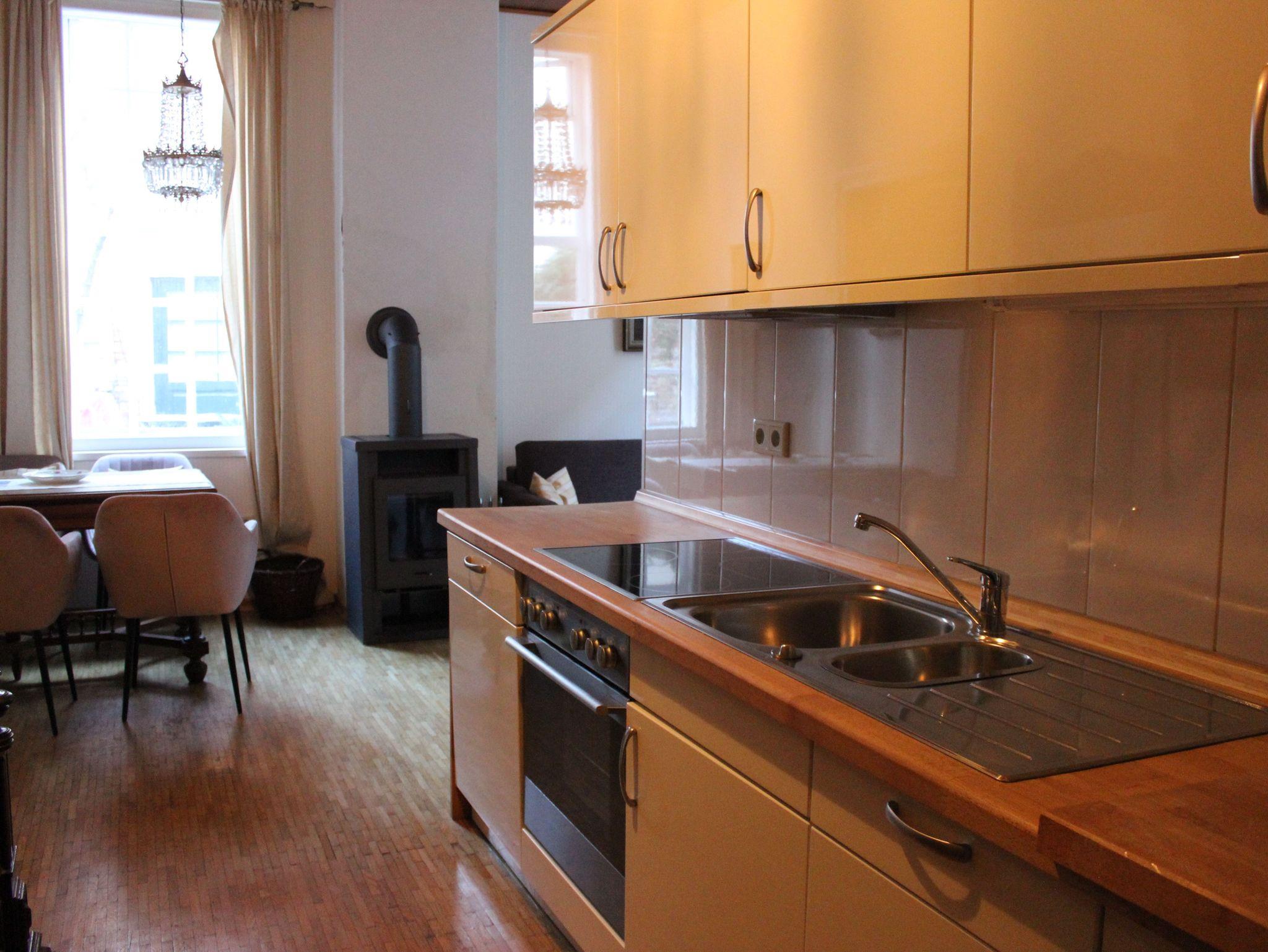 Diese gemütliche Wohnung hat eine Größe von 55 qm. Sie verfügt über eine vollausgestattete Küche, ein gemütliches Wohnzimmer mit Kamin und stilvollen Antiquitäten-Möbeln, ein großes Badzimmer mit Badewanne, Dusche und WC, sowie ein Schlafzimmer mit Doppelbett.