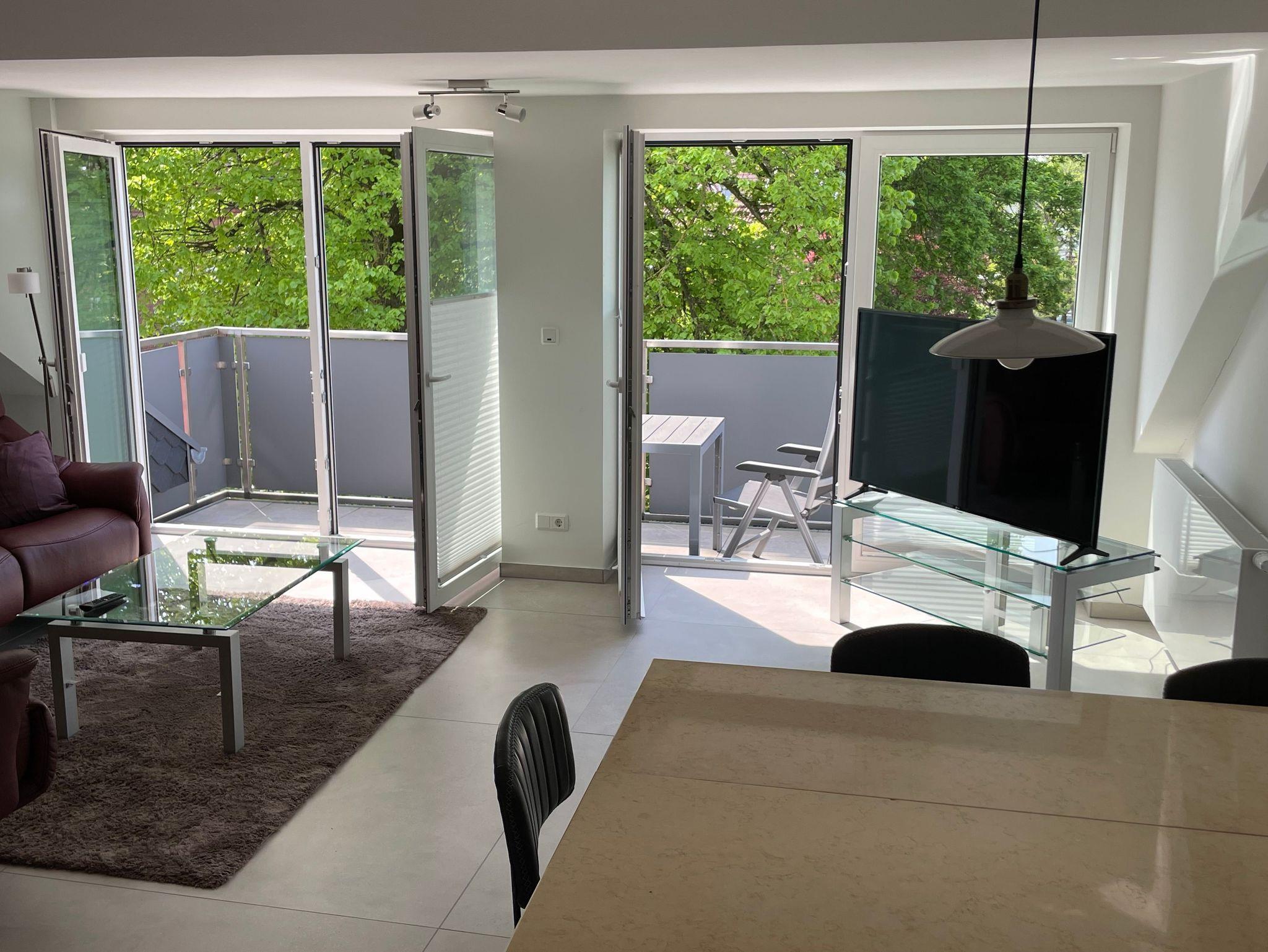 Zum Haus gehört ein großer Garten, der von allen Gästen genutzt werden kann. Parkplätze im angrenzenden Innenhof können kostenlos genutzt werden. Alle Wohnungen haben große Balkone oder Terrassen und bodentiefe Fenster in den Wohnräumen.