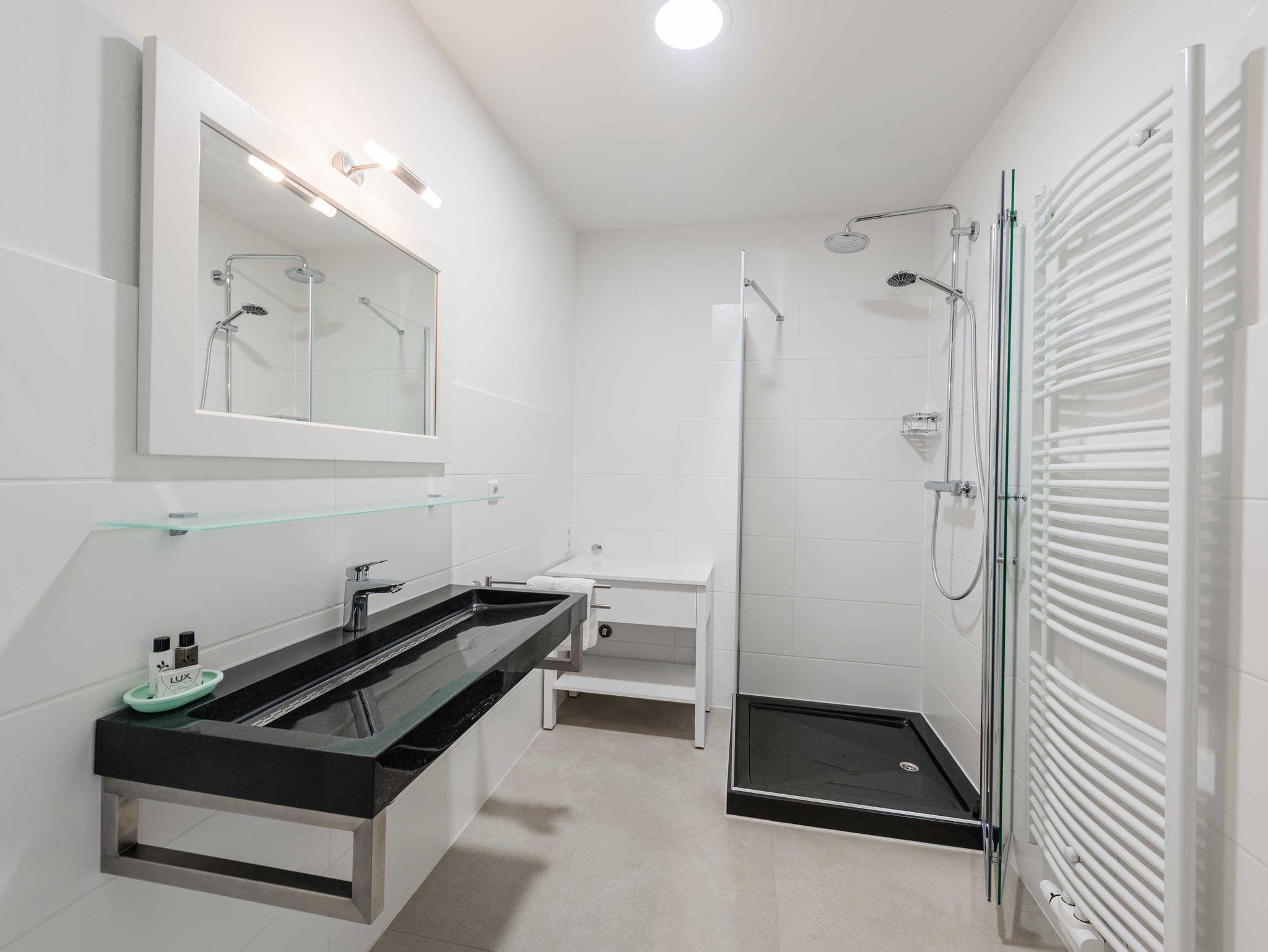 „4 Bunde“ verfügt über ein Schlafzimmer, ein Bad mit Dusche und über einen großen Wohn-Küchenraum.