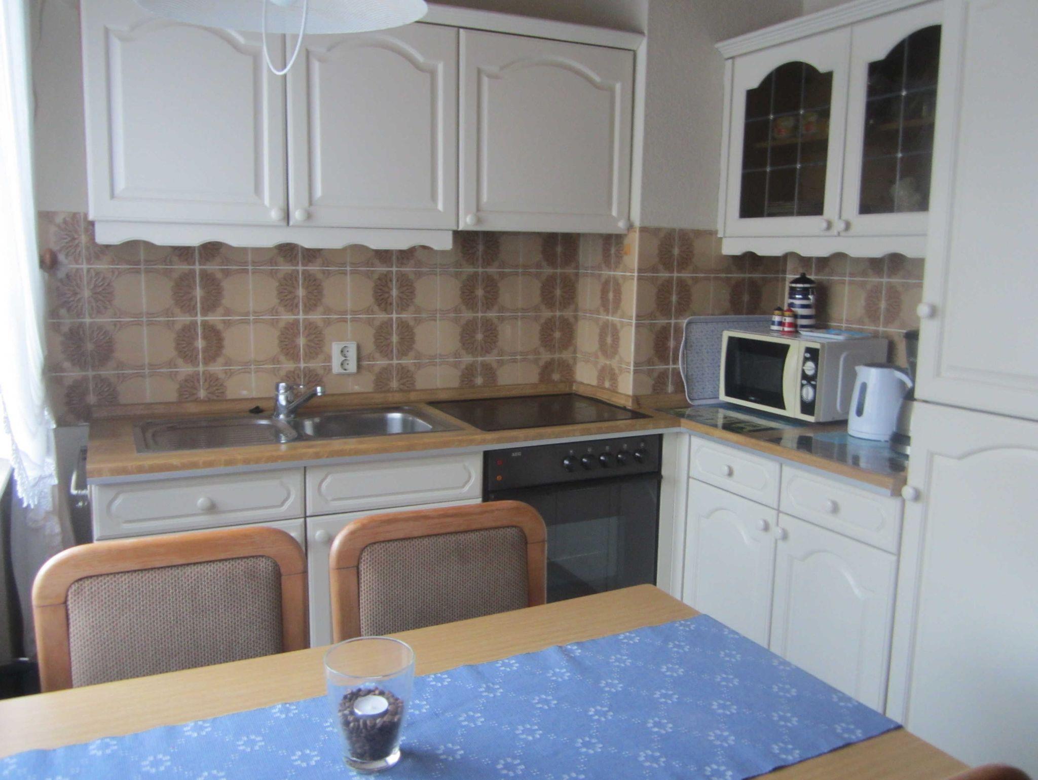 Herd mit Ceranfeld, Backofen, Mikrowelle, Kühl-Gefrierkombi, Kaffeemaschine, Wasserkocher, SAT-TV, W-Lan.