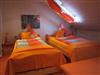 Dachgeschoss: Schlafzimmer 3: Drei Einzelbetten der Größe 90 cm x 200 cm.