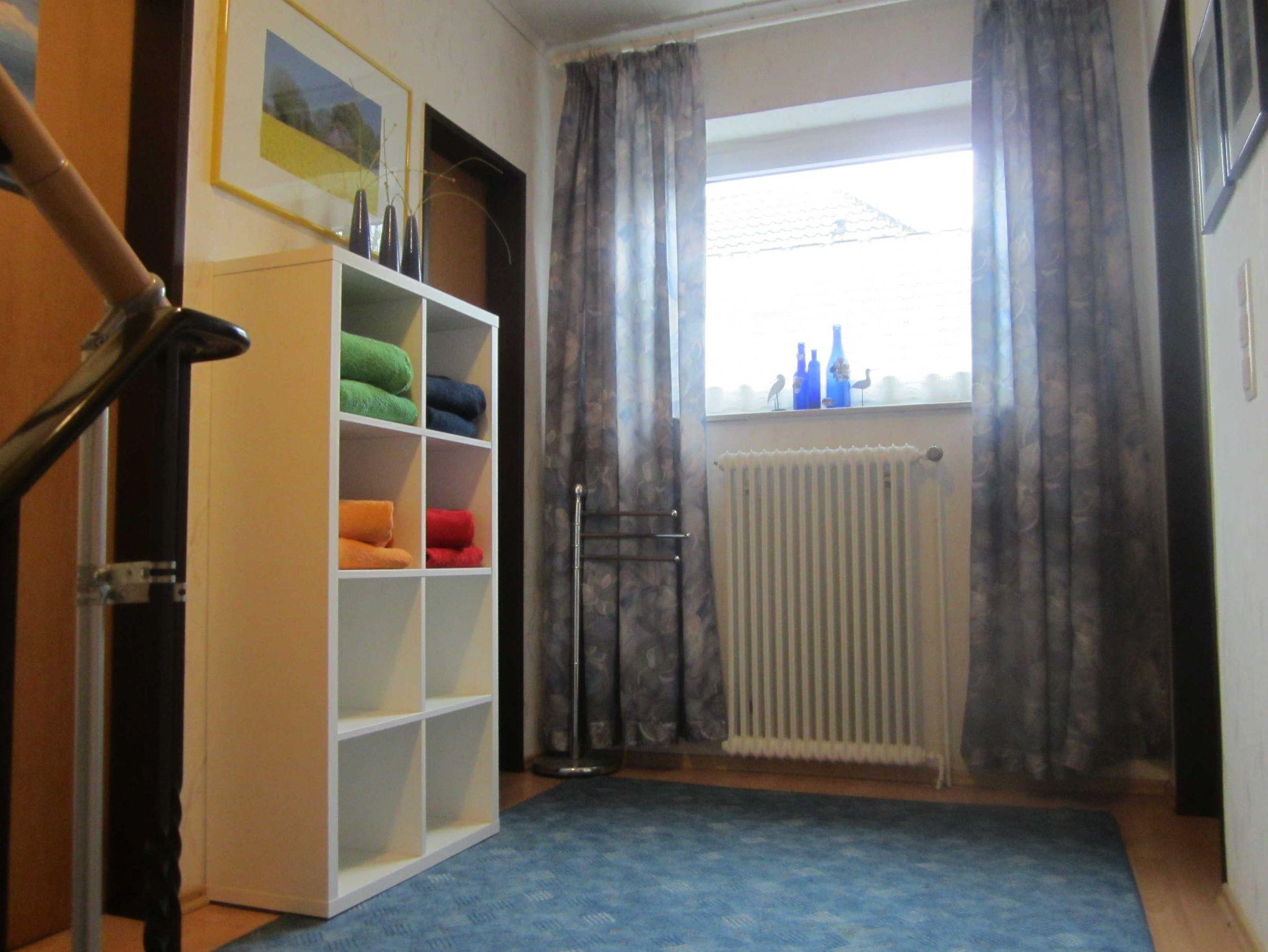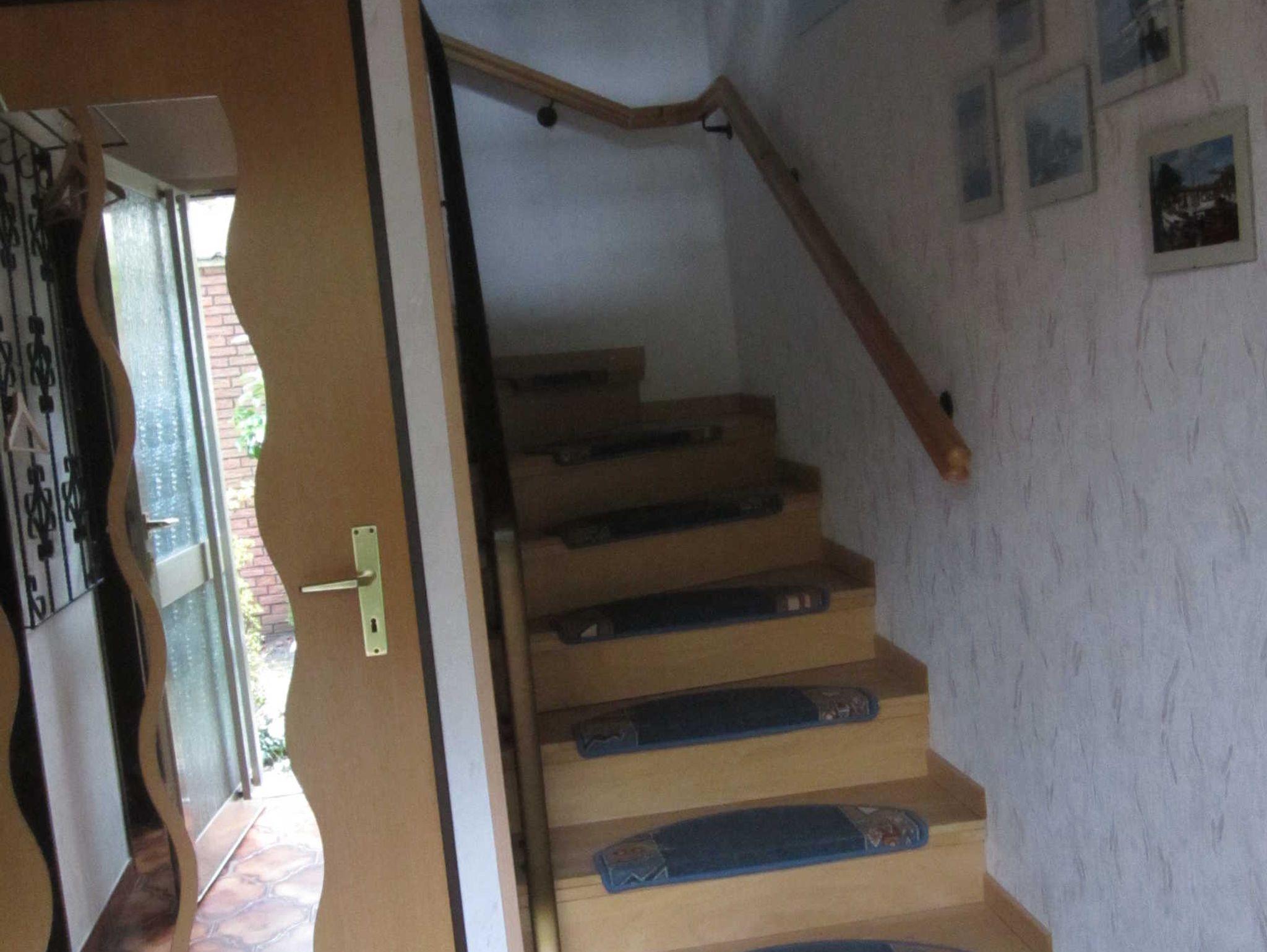 Im Erdgeschoss der Ferienwohnung befinden sich ein Wohnzimmer mit Terrassentür, eine Küche mit einem Geschirrspüler, einem Abstellraum, eine separate Gästetoilette und ein geräumiger Eingangsbereich mit Treppenaufgang. Waschmaschiene ist vorhanden.