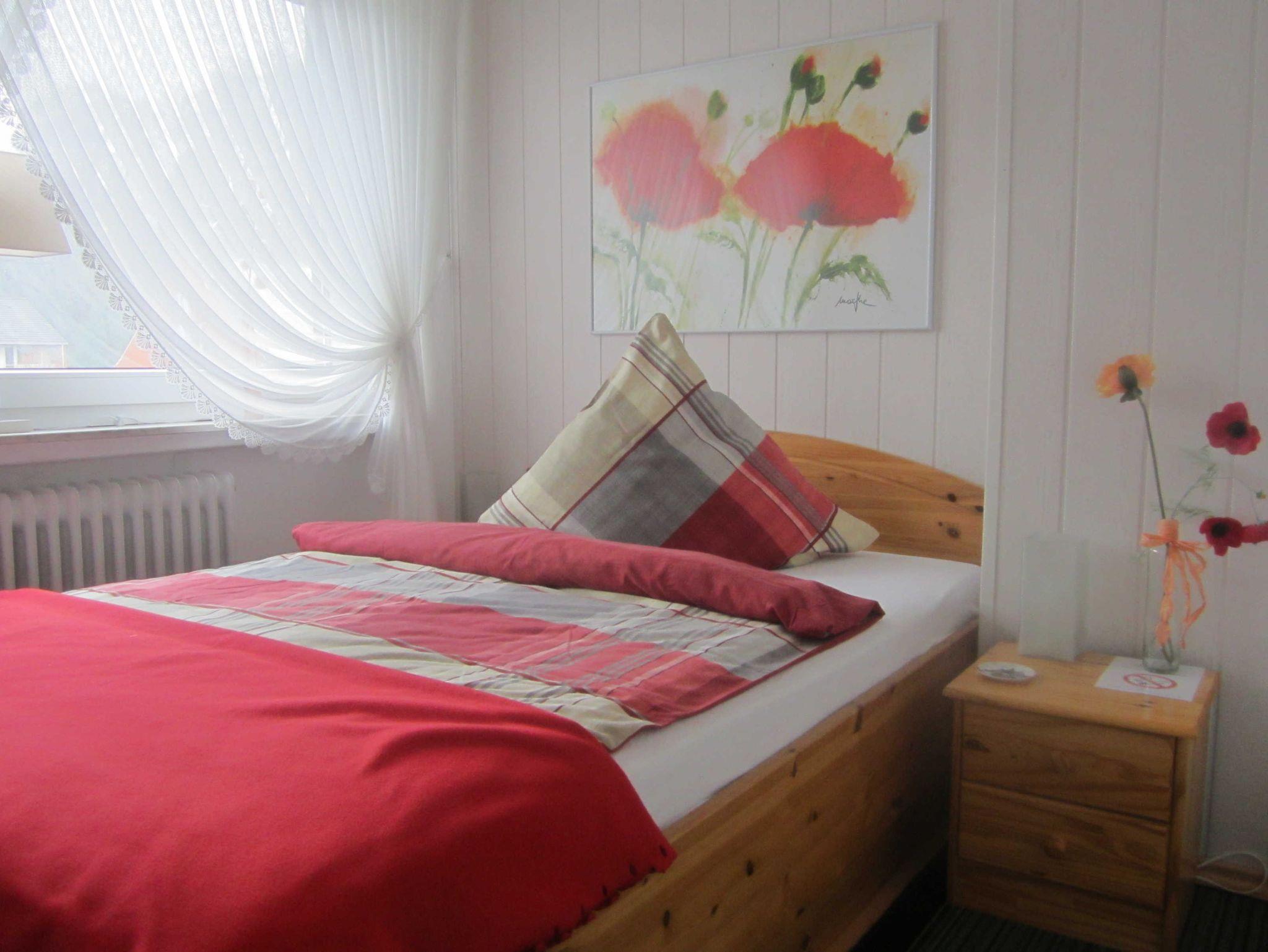Schlafzimmer 2: Ein Doppelbett der Größe 140 cm x 200 cm.