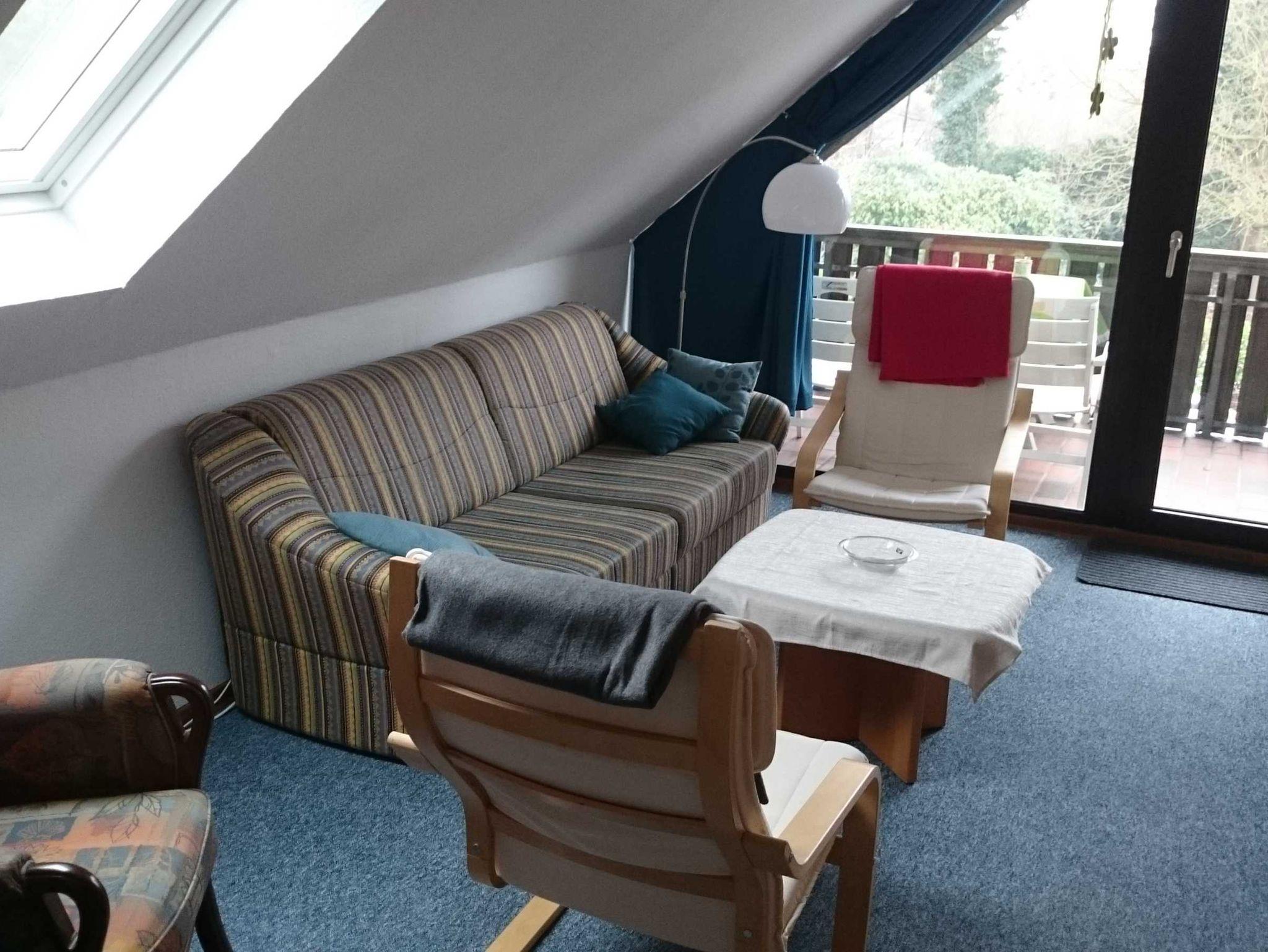 Die Ferienwohnung befindet sich im Obergeschoss. Sie ist hell und lichtdurchflutet.