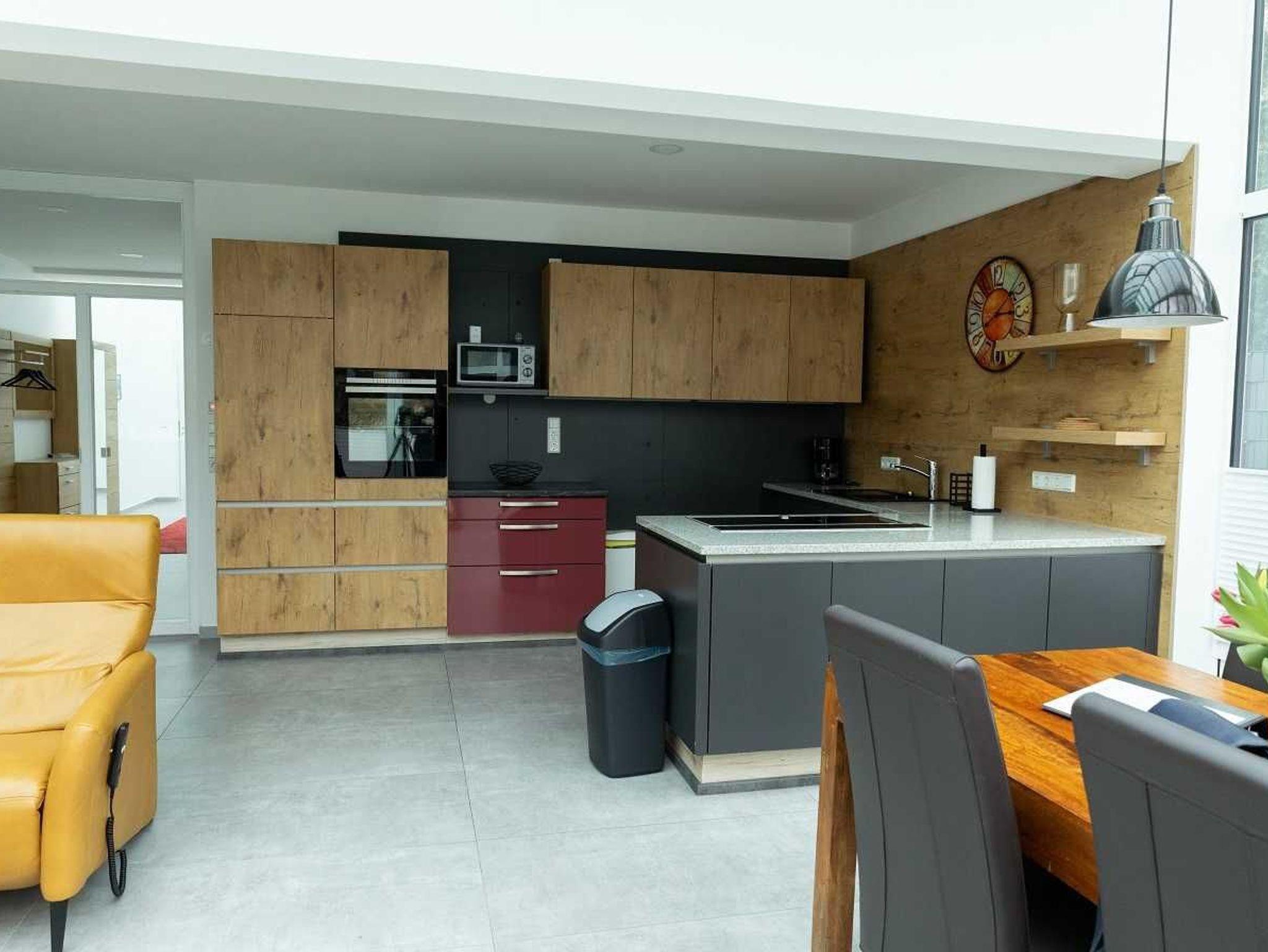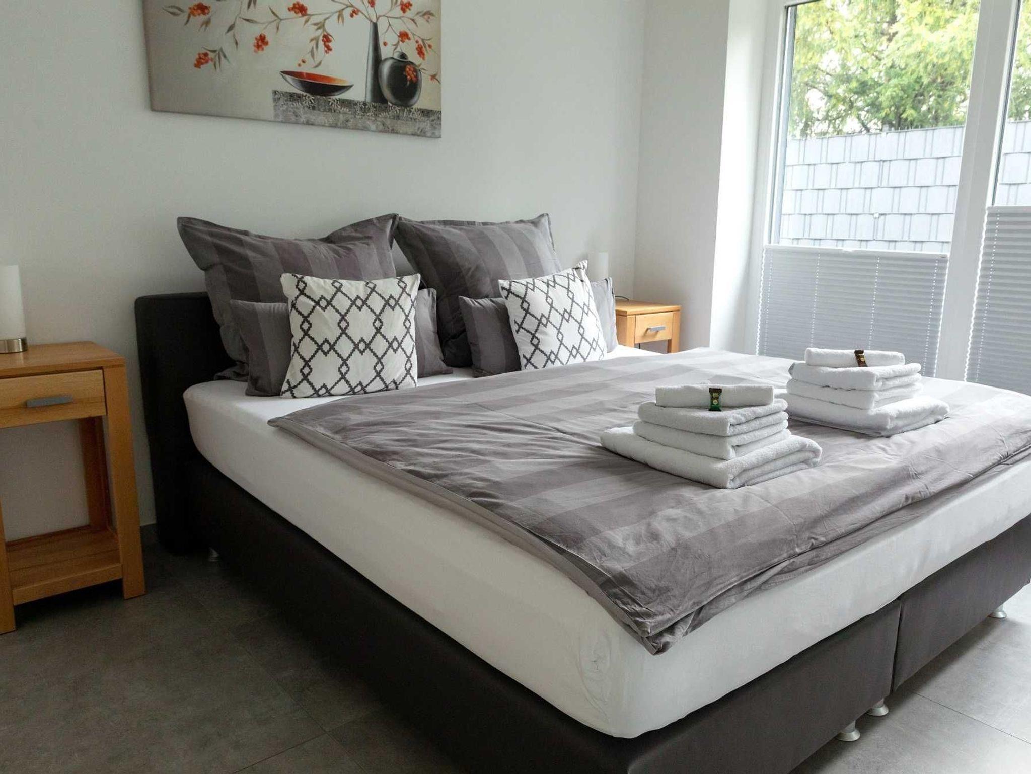 Diese Ferienwohnung verfügt über 2 Schlafzimmer jeweils mit Boxspringbetten der Größe 180x200 cm und ein weiteres separates Zimmer mit einem Boxspringbett der Größe 90x200 cm, einen großen Wohn/Küchenraum und ein Bad.