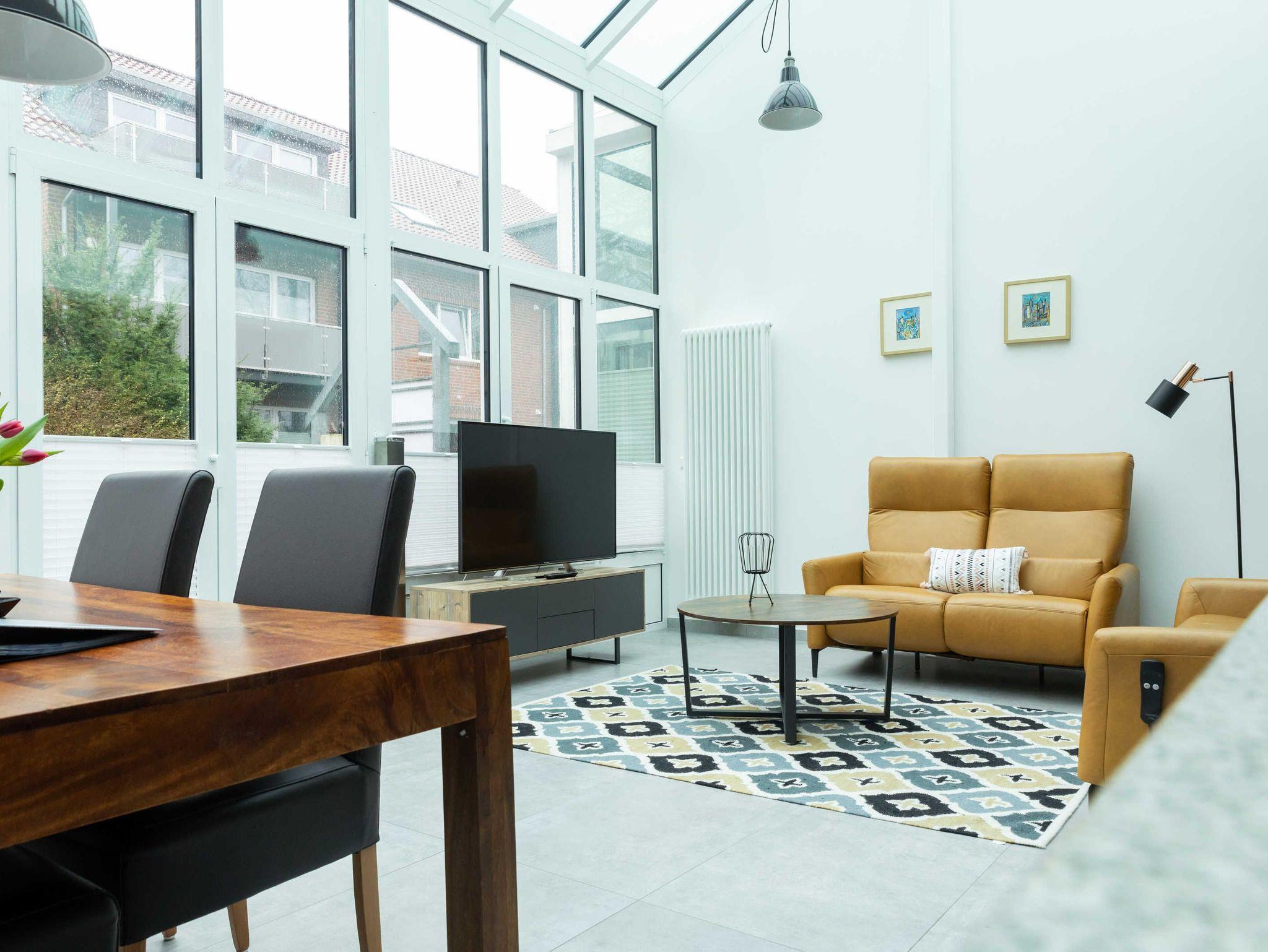 Im Anbau, dem Glashaus, mit eigenem Eingang, sind lediglich 2 Ferienwohnungen untergebracht, Altschwoog und Neermoor.