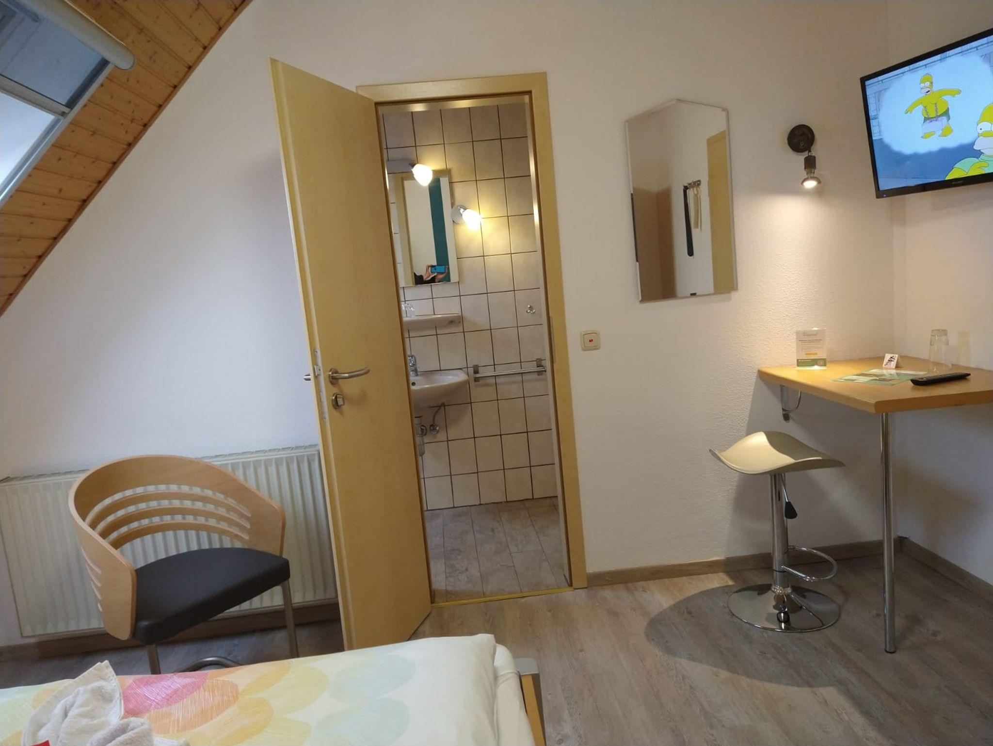 Das Zimmer befindet sich im 1. Stock und ist mit Sat-TV, Dusche und WC, Radiowecker, W-LAN und Föhn ausgestattet.