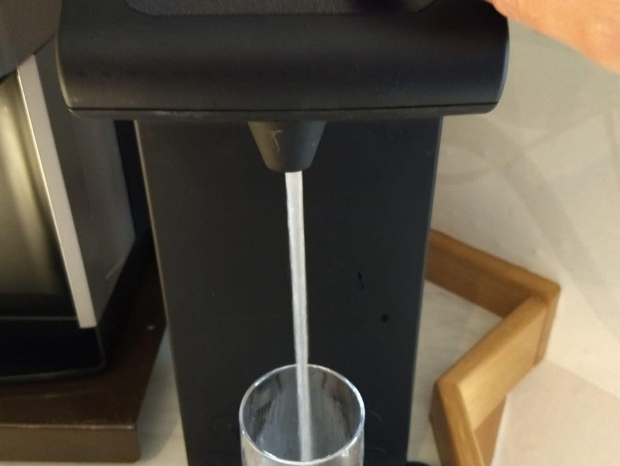 Wasserspender mit kostenlosem Trinkwasser still, medium oder spritzig im Aufenthaltsraum.