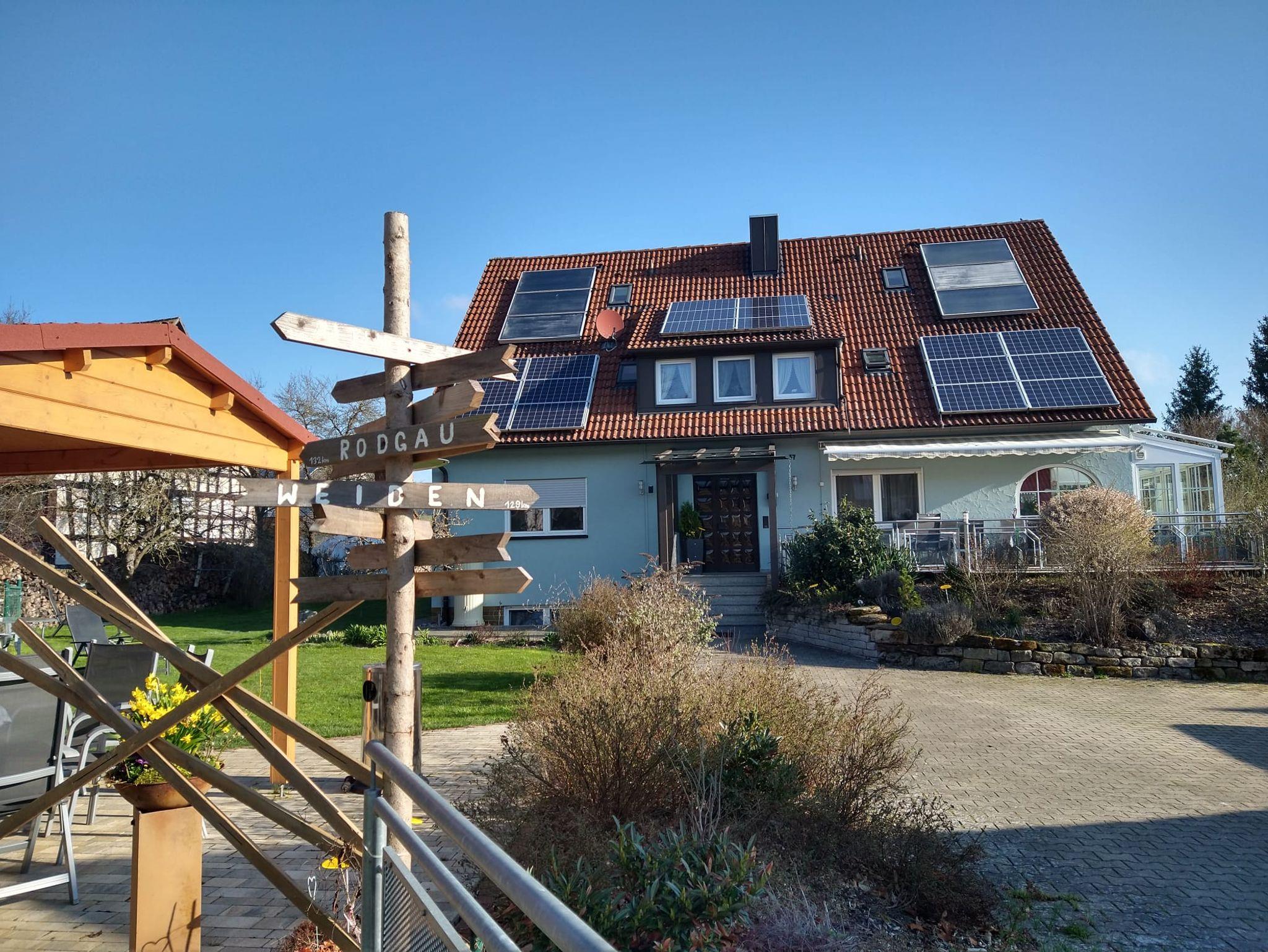Mitten im Naturpark Frankenhöhe erwartet Sie ein gutes Radwege- und Wandernetz in waldreicher, ruhiger Landschaft. Unsere hervorragende Lage zwischen Ansbach und Rothenburg o.d.T. ermöglicht es Ihnen, unsere fränkischen Kostbarkeiten zu besuchen. Wohltuende Entspannung finden Sie auch in der Franken-Therme Bad Windsheim. Wintergarten, Aufenthaltsraum, Terrasse sowie Sitzecken und Liegen auf unserem 3.300 qm großen Grundstück laden zum erholsamen Verweilen ein. Genießen Sie das großzügige Frühstücksbuffet inclusive Kaffeespezialitäten und ab und zu unser schmackhaftes Abendessen in Buffetform. Kaffeespezialitäten, hausgemachter Kuchen und kalte Getränke runden unser Angebot für Sie ab. Mittlerweile können Sie sich an unserem Wasserspender kostenlos mit stillem, medium oder spritzigem Wasser versorgen.