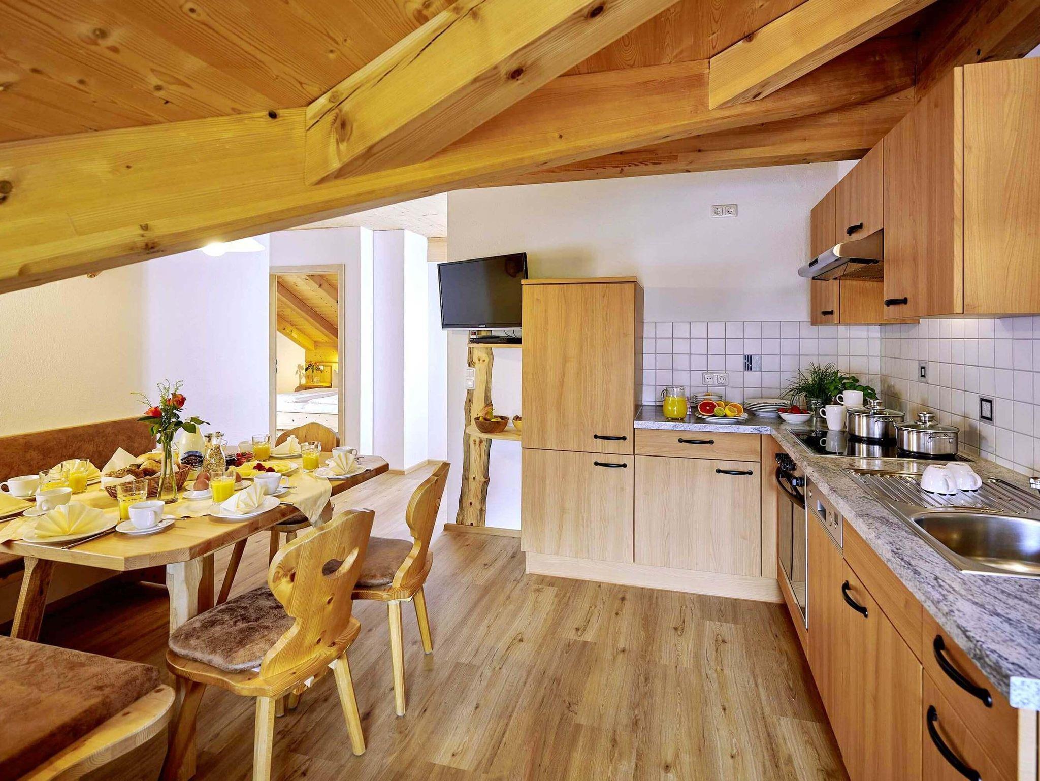 Mit viel naturbelassenem Holz und einer hochwertigen 4-Sterne-Ausstattung bietet das Dach-Chalet im 2. Obergeschoss ein angenehmes Urlaubs-Zuhause für bis zu vier Personen.