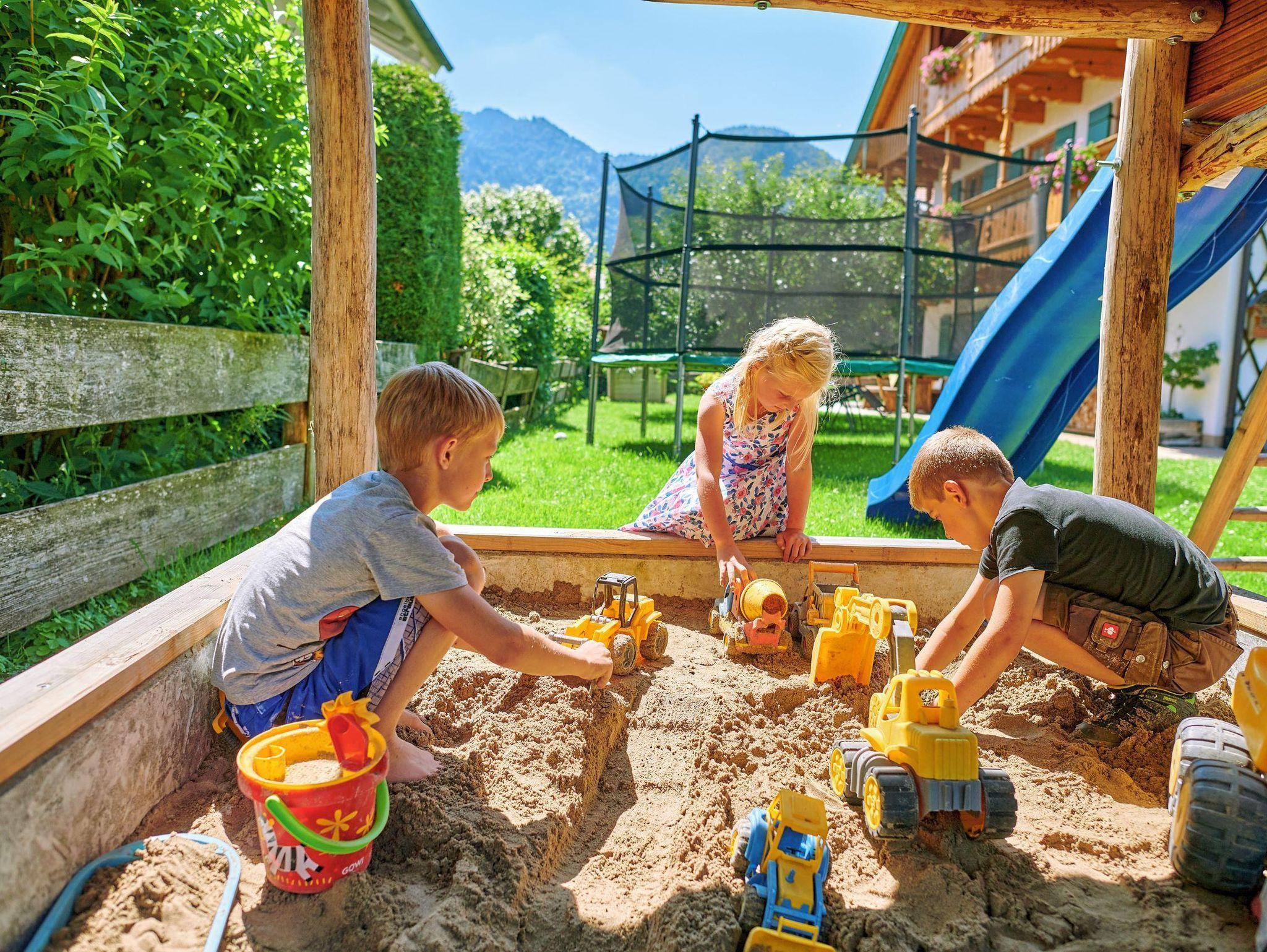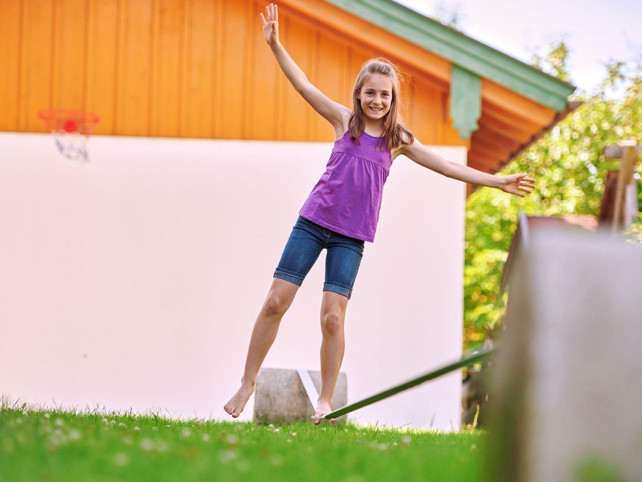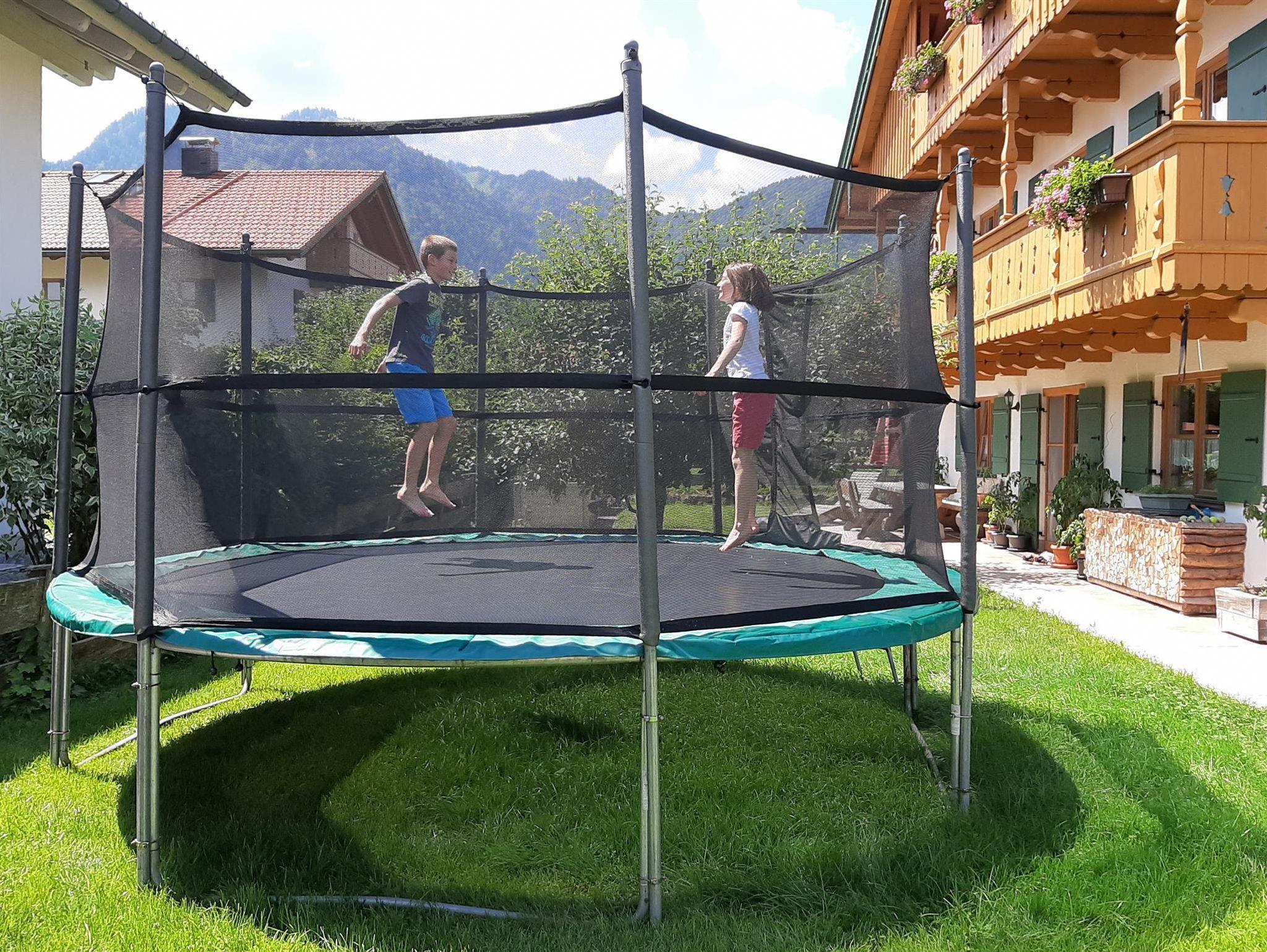 • Spielplatz mit Riesentrampolin, Spielturm, Schaukel, Rutsche, Sandkasten, Kinderfahrzeugen, Ketcar, Slack-Line, ...