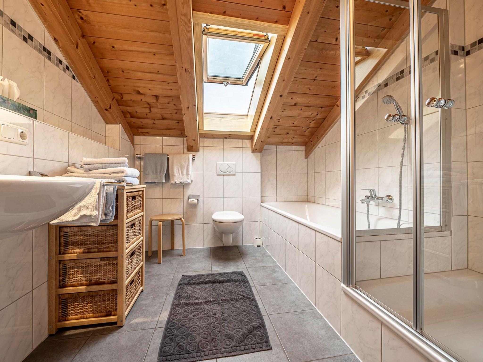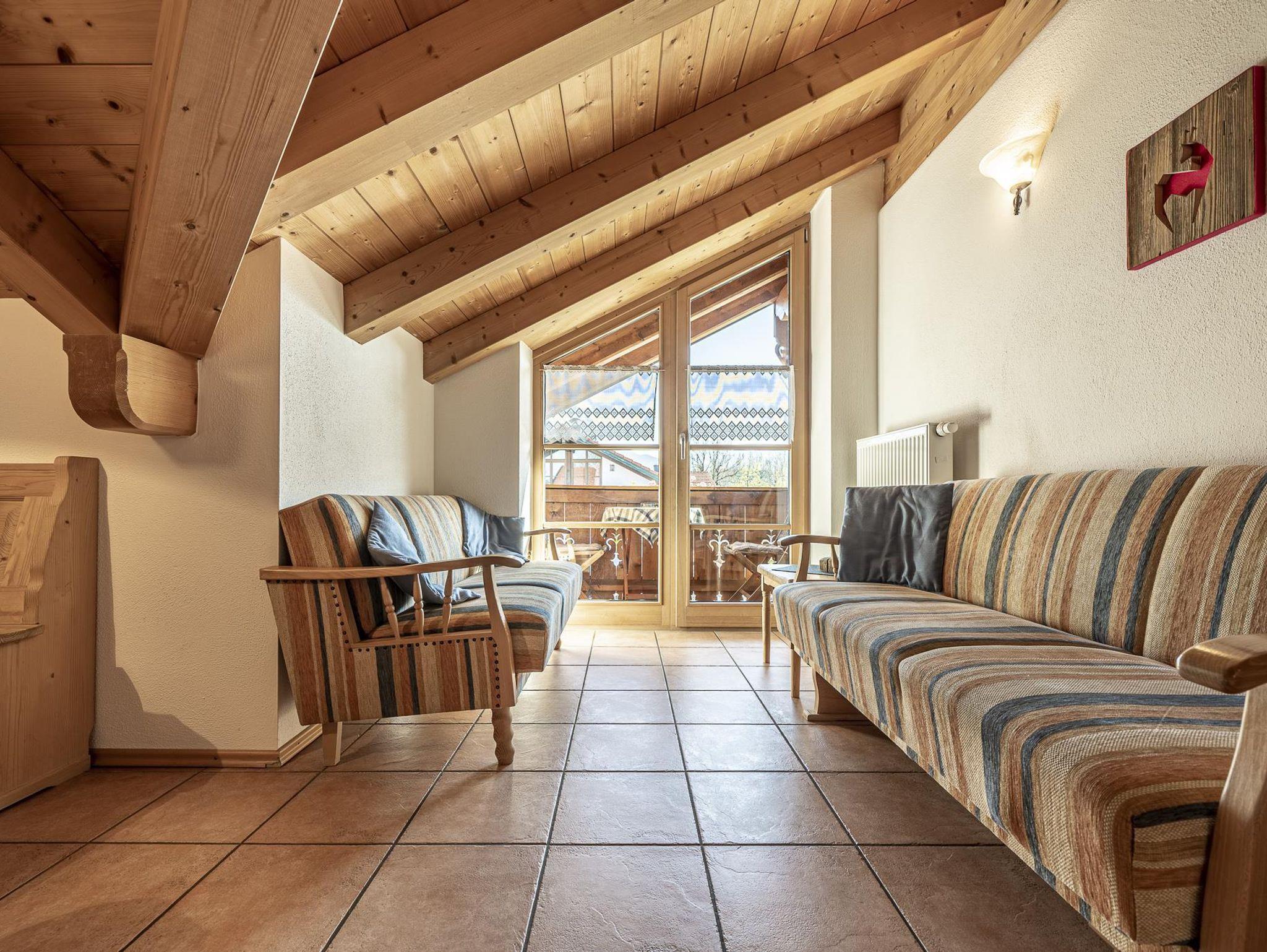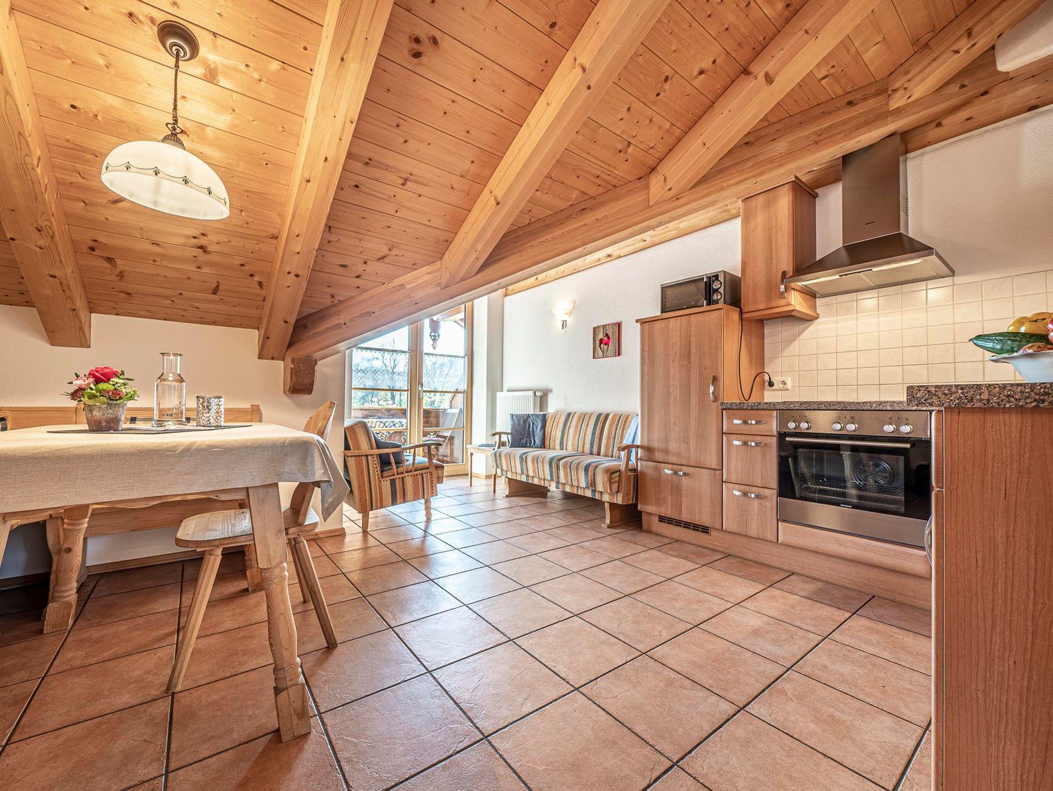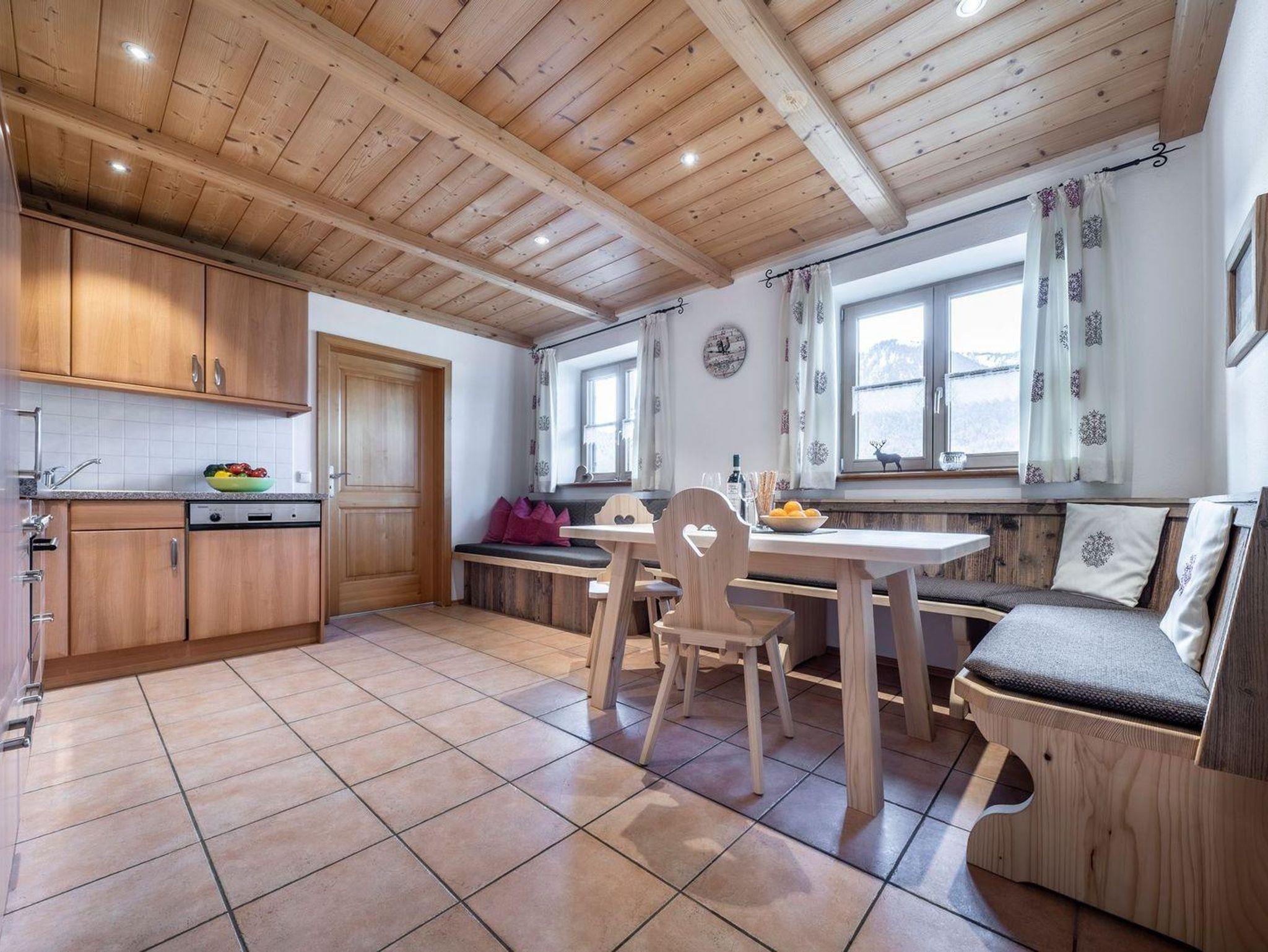 **** Wohnung im 1. Stock mit zwei handgefertigten Schlafzimmern aus Eichen- und Zirbenholz, einer komplett ausgestatteten Wohnküche mit Spülmaschine, Backofen, Mikrowelle, Kaffeemaschine und Fachbildfernseher. Bad mit Dusche/WC, Hand- und Badetücher, Handtuchtrockner, Kosmetikartikel und Fön. Großer möblierter Balkon mit unverbauter Bergsicht.