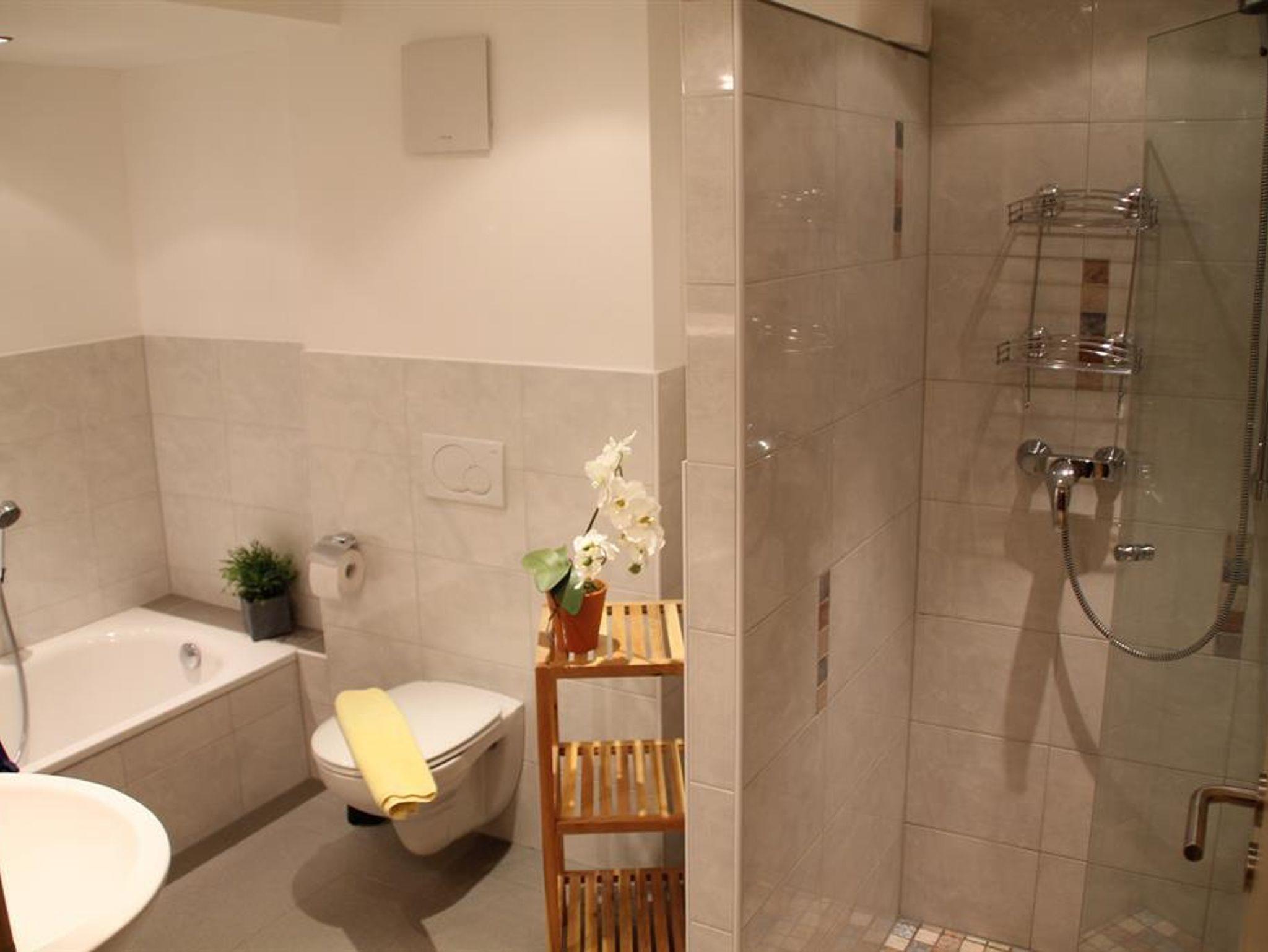 Unsere sehr geräumigen FeWos verfügen, je über eine komplett ausgestattete Wohn-Küche(E-herd mit Backofen, Geschirrspüler, Wasserkocher, Flachbildfernseher,ect.) die für bis zu fünf Personen reichlich Platz bieten. Im Badezimmer befinden sich neben einer großzügigen Dusche auch Badewanne, Föhn, Handtuchtrockner und Kosmetikspiegel. Die jeweils zwei seperaten Schlafzimmer verfügen über ein Doppelbett und großen Kleiderschrank.