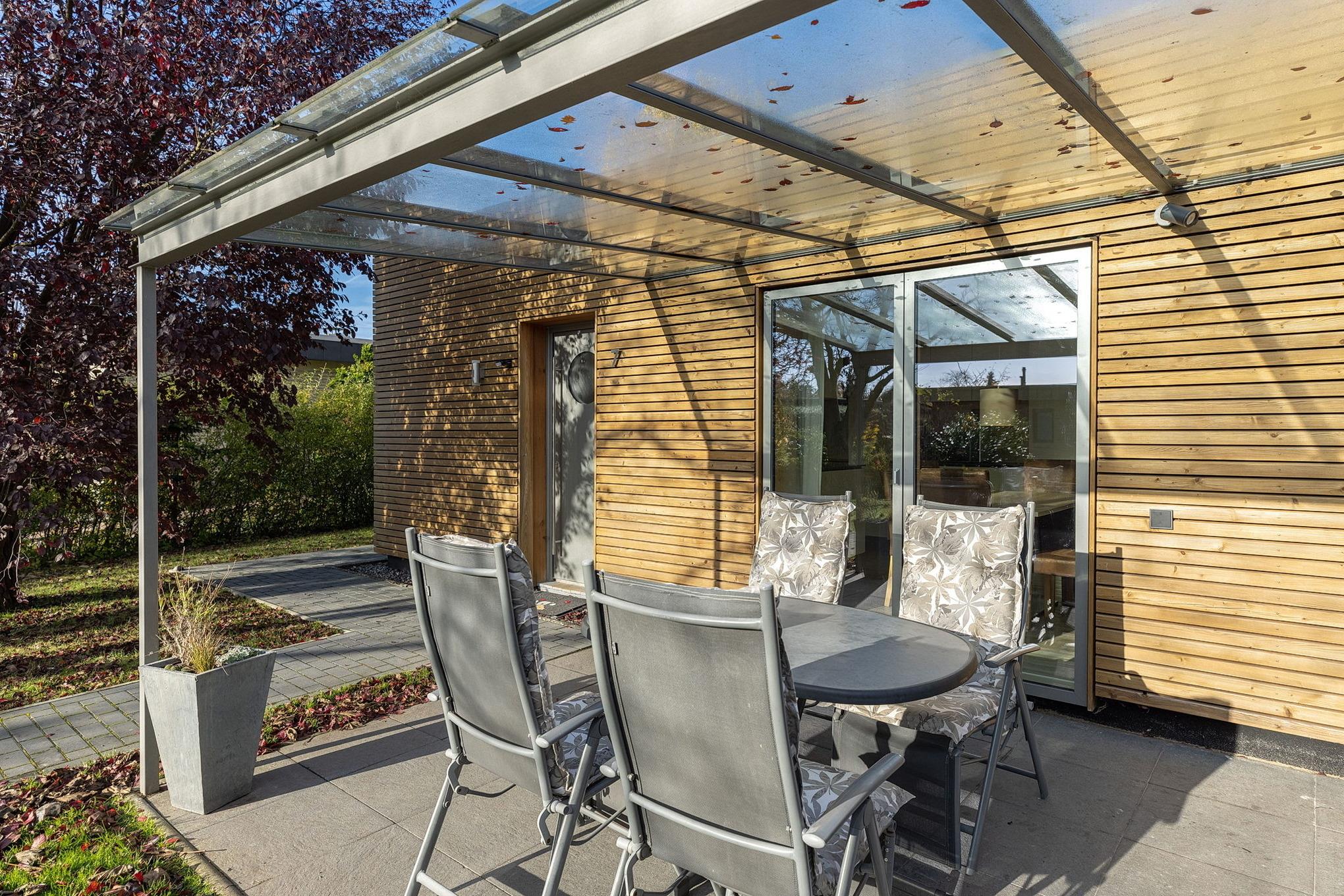 PKW-Stellplatz auf dem Grundstück, Terrasse in südliche Richtung. Waschmaschine, Bobbycar zur kostenlosen Nutzung.
