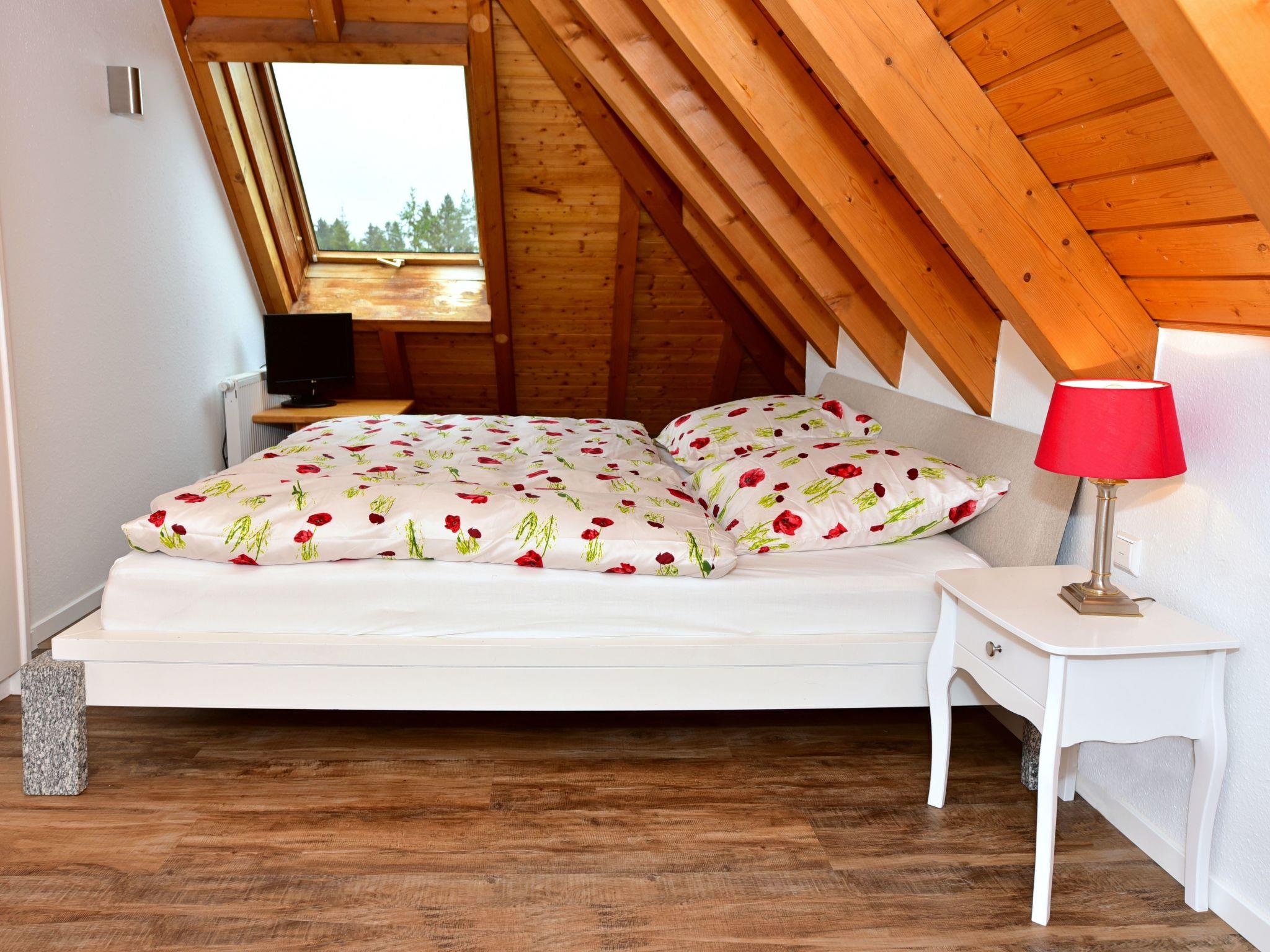 Is an open-plan bright room with a large panoramic and roof window and wonderful views of the natural surroundings of the Upper Black Forest, in good weather the view extends as far as the Alps. Thanks to the open-plan design, you can look up to the top of the roof. We have placed great emphasis on beautiful materials, furniture and accessories.