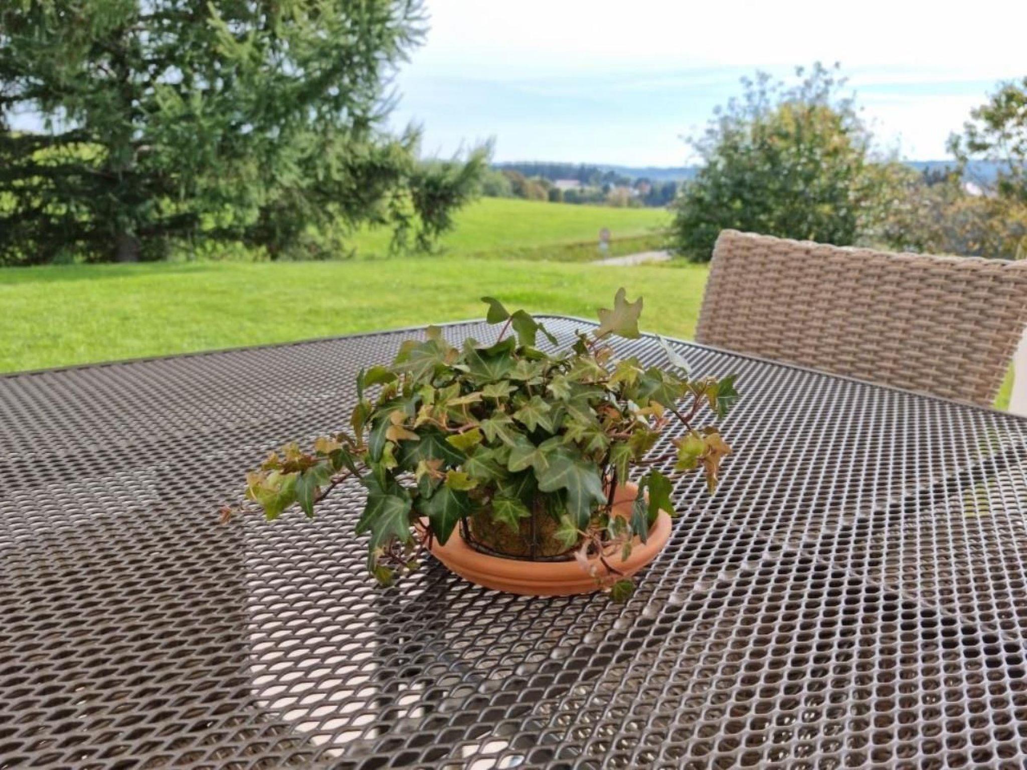 There is a bedroom, a living room with dining area and integrated kitchen, a bathroom with whirlpool bath and shower and a large garden terrace. From the living/dining area and the garden terrace, you can enjoy a fantastic view over meadows and forests all the way to the Alps. Check-in is contactless. You will find your keys in a key safe, for which you will receive the access code from us. You can park your car conveniently and safely in front of your flat in a private car park. Your stay here is comfortable, conveniently located and extremely affordable.
