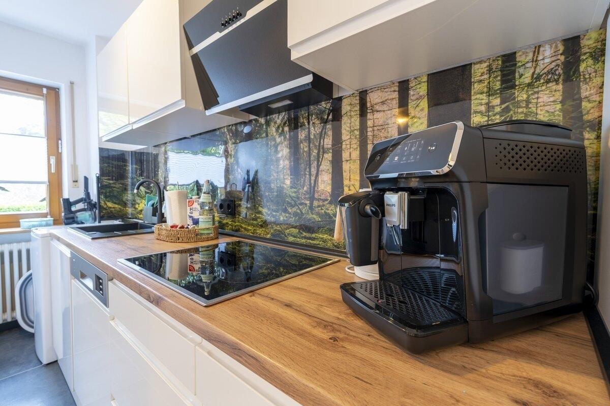 -Voll ausgestattete Küche mit Spül-& Kaffemaschine, Essbereich