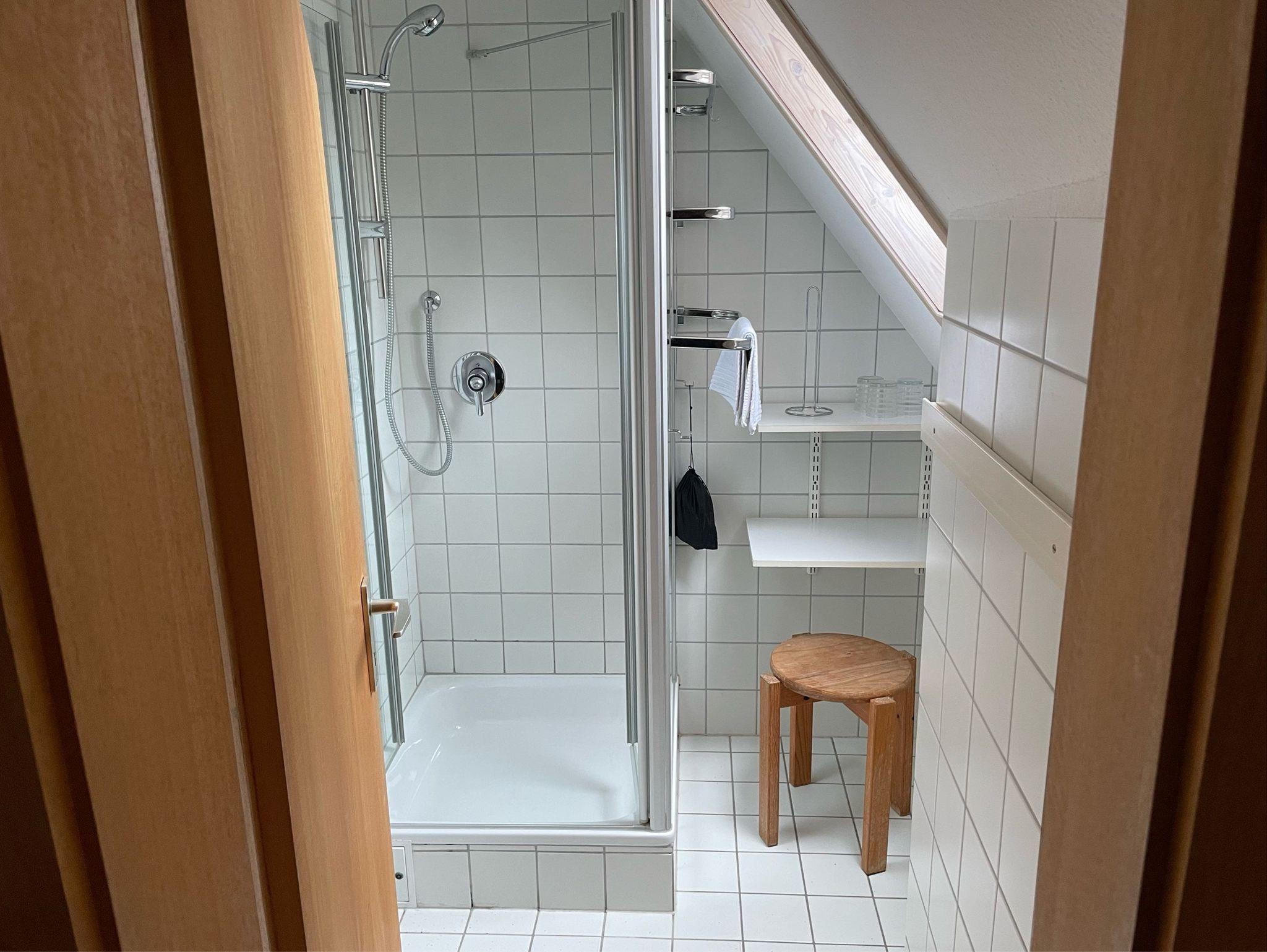 • Kochzeile im Wohnzimmer, Dusche, separates WC