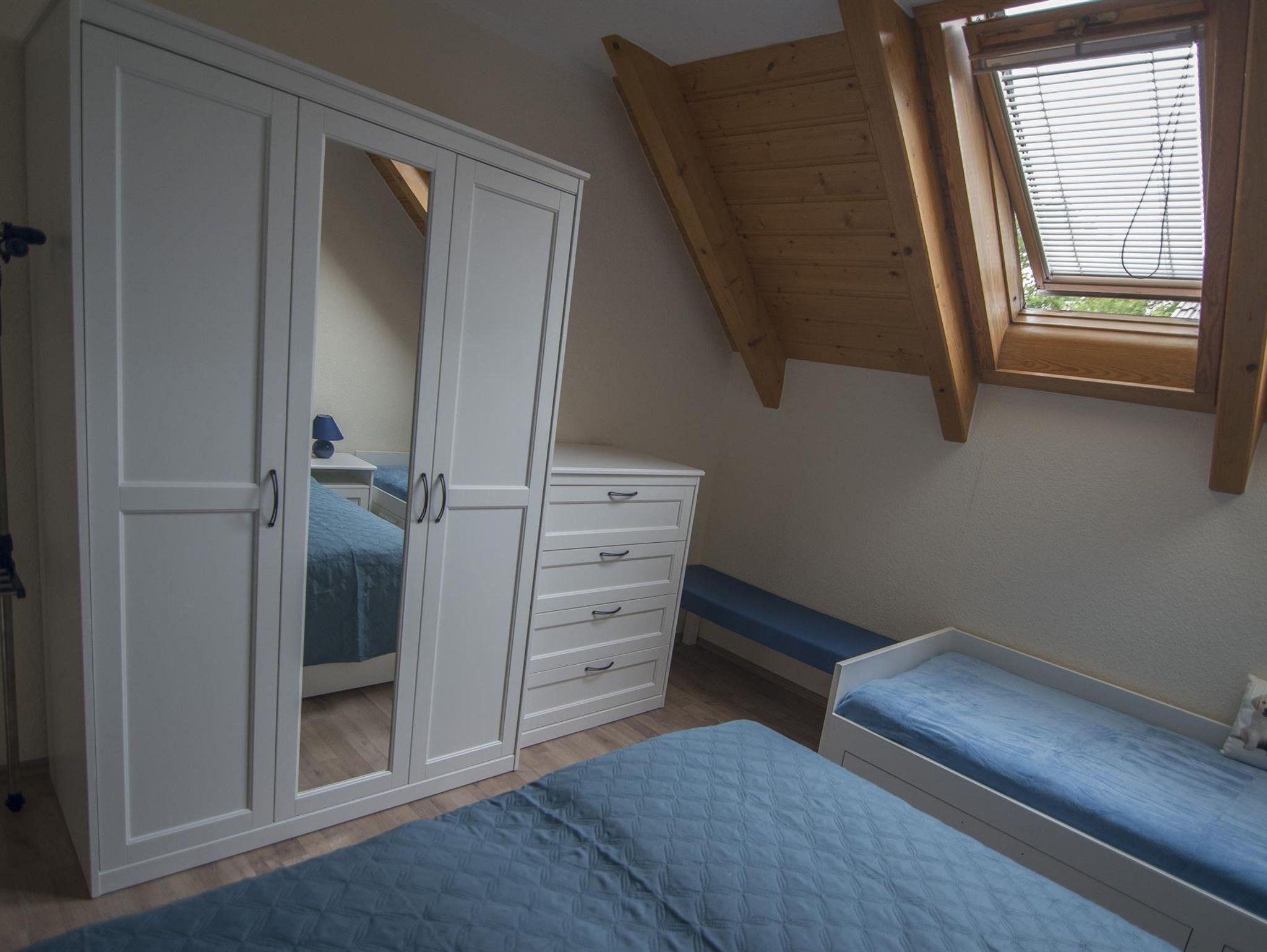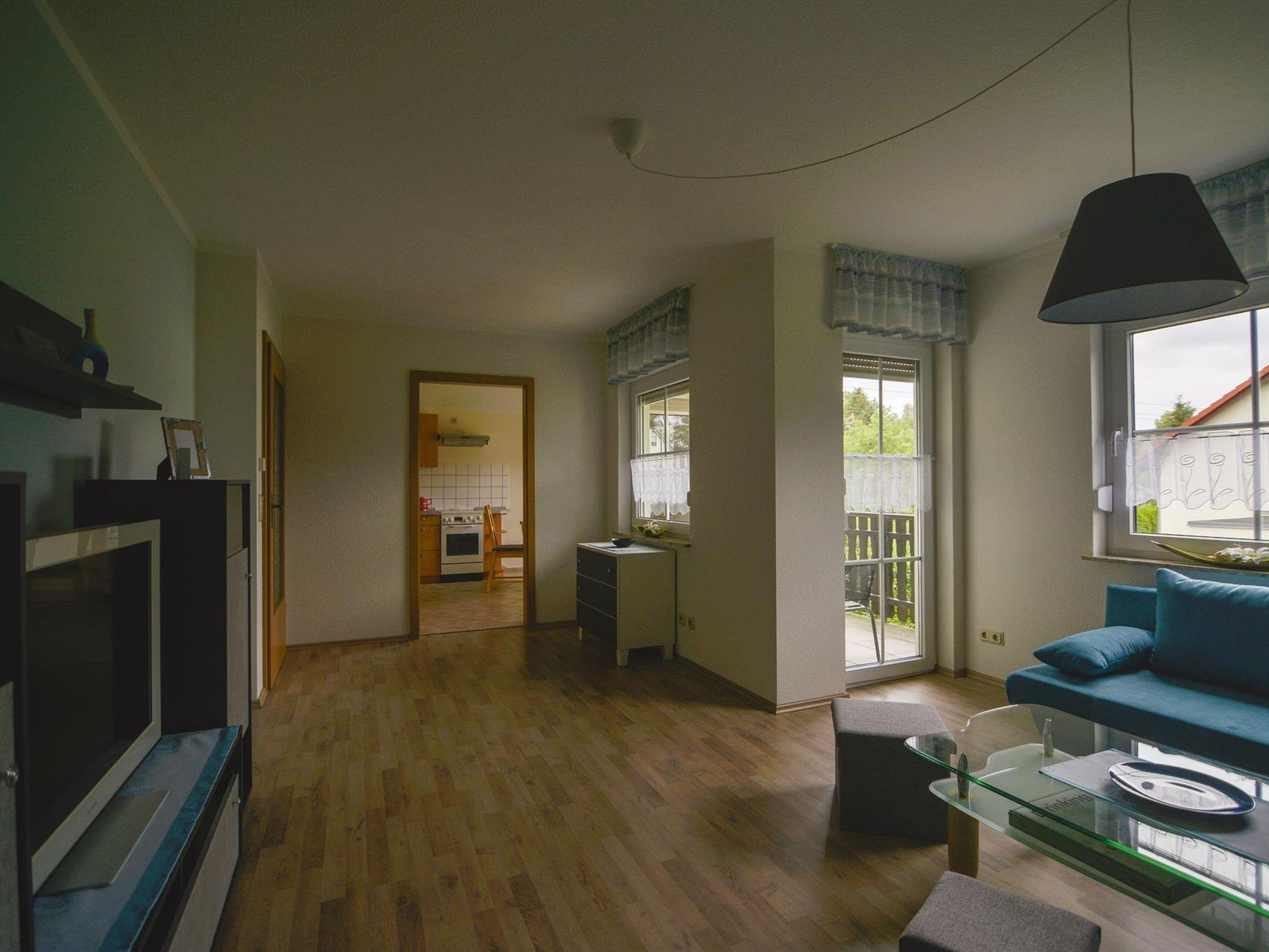 Unsere schöne, ruhige, am Ortsrand gelegene Ferienwohnung ist 60 m² groß und für bis zu 3 Personen (zzgl. einem Babybett) geeignet. Sie befindet sich im Obergeschoss. Sie besteht aus einer Küche, einem Wohnraum, einem Schlafraum, Bad und Balkon. Für Kinder gibt es eine Spielecke mit Spielsachen.