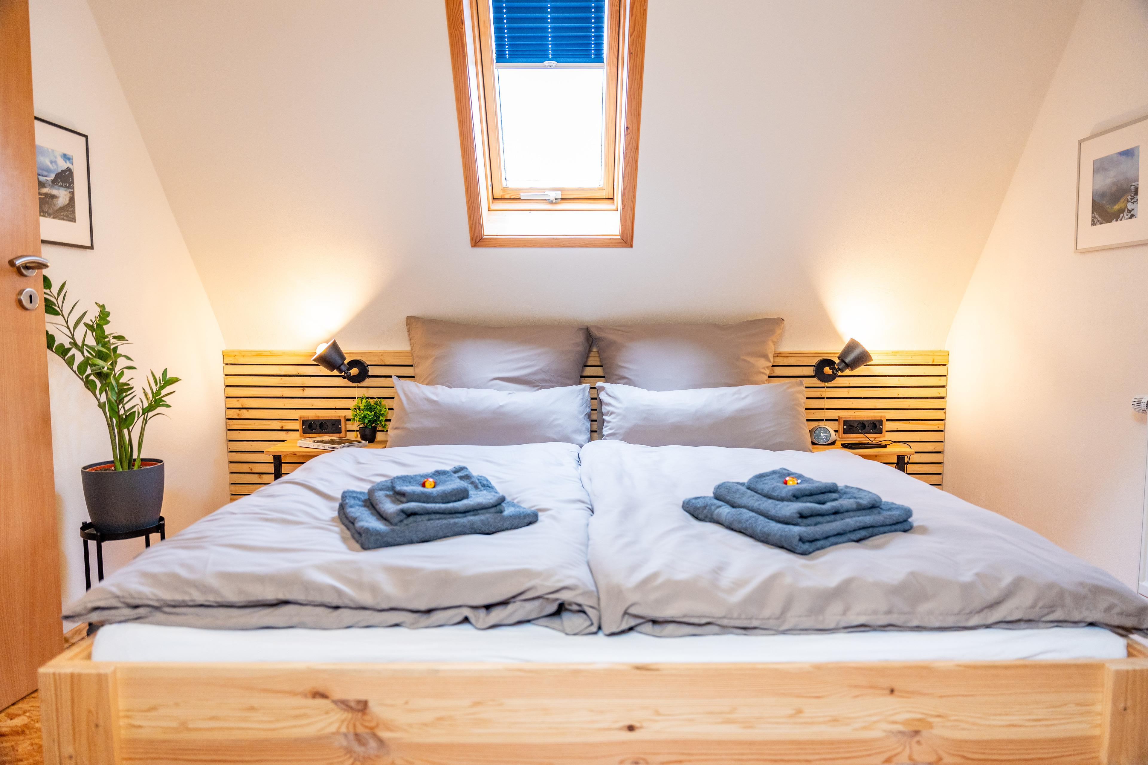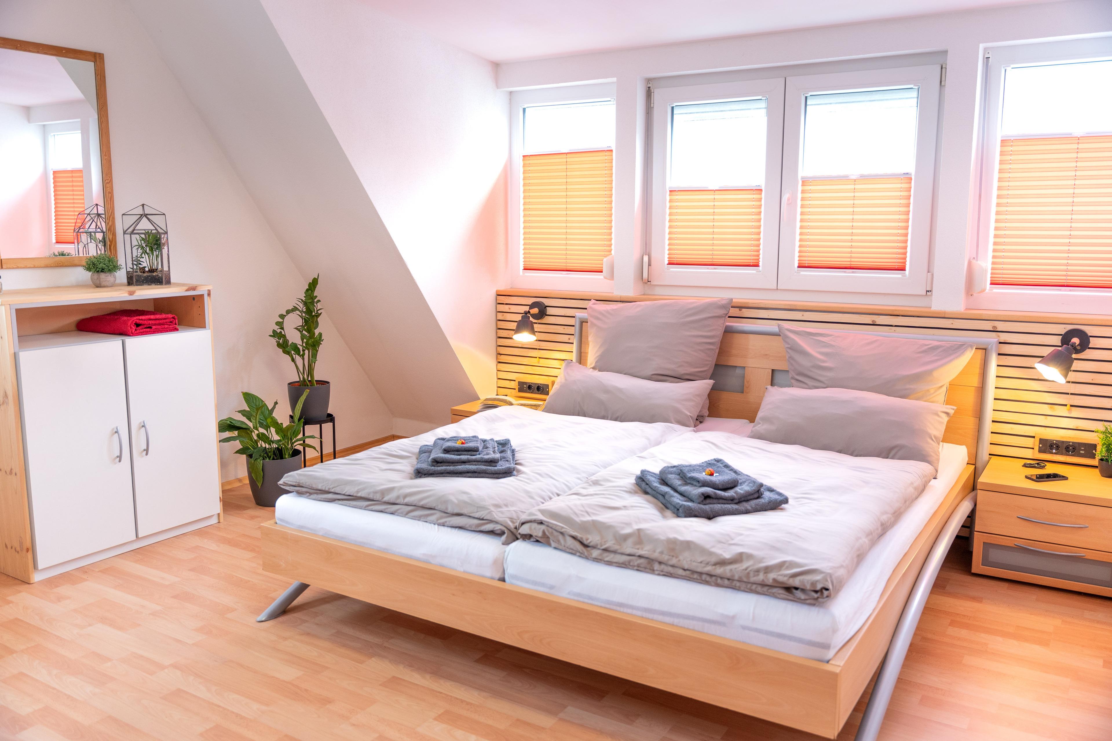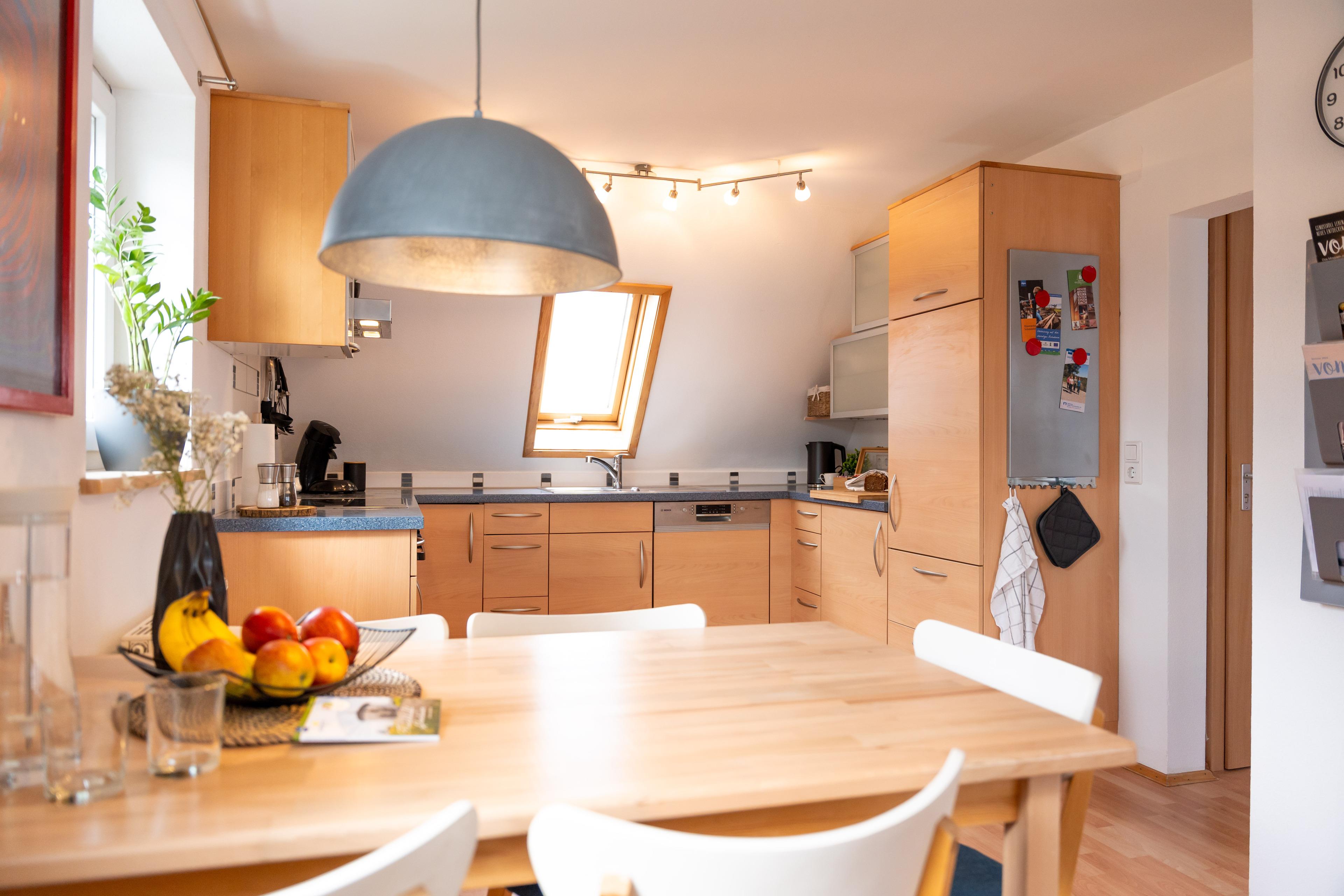 Unsere Unterkunft ist der ideale Rückzugsort für Einzelpersonen, Paare und Familien bis 5 Personen. Die modern eingerichtete Dachgeschosswohnung erstreckt sich über zwei Ebenen und bietet 3 Schlafzimmer: 1x Einzelbett und 2x Doppelbett. Der großzügige Wohn- und Essbereich lädt zum Verweilen ein. Die Küche ist voll ausgestattet, einschließlich einer Spülmaschine, und lässt keine Wünsche offen.