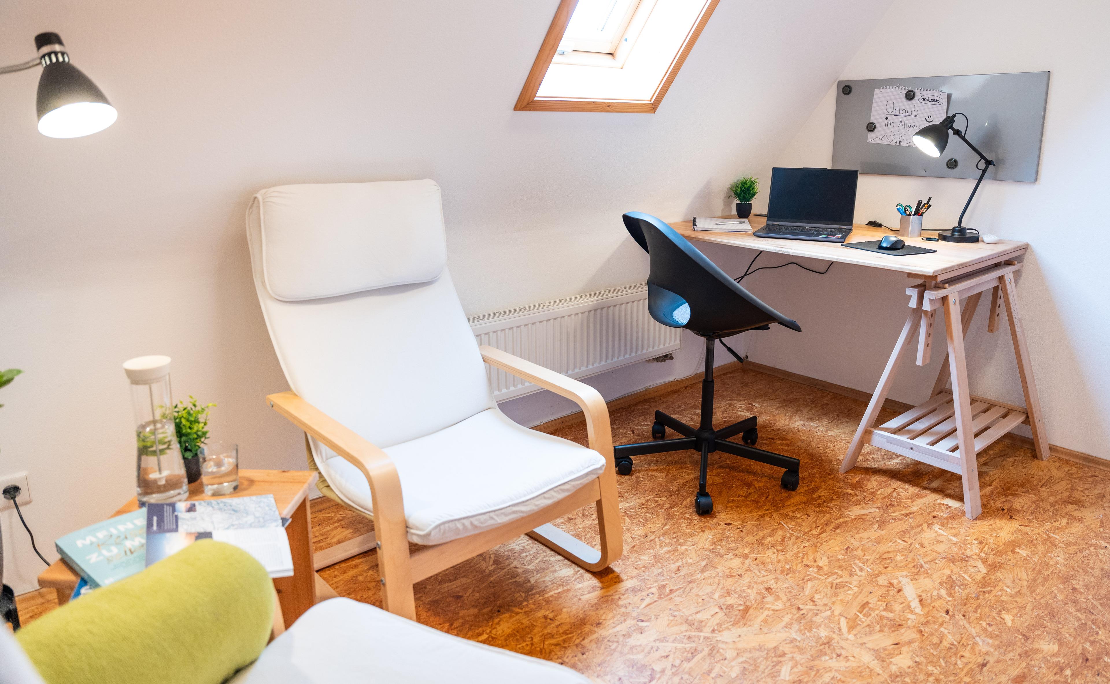 Flachbildschirm mit Amazon FireTV Stick, USB-(C) Ladebuchsen, Lese/Arbeitszimmer, Arbeitsplatz mit Bürostuhl, Gemeinschaftsspiele, Garten mitnutzung, Ausgewählte Infomaterialien für Region, Putzmaterialien, Sauna und Whirlpool (3 Personen - buchbar Vorort)