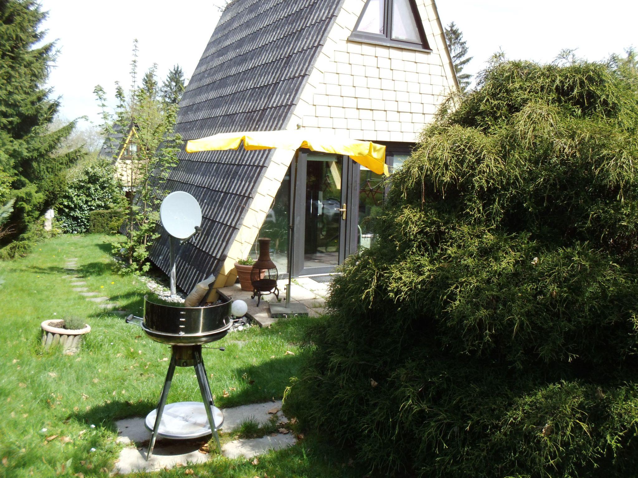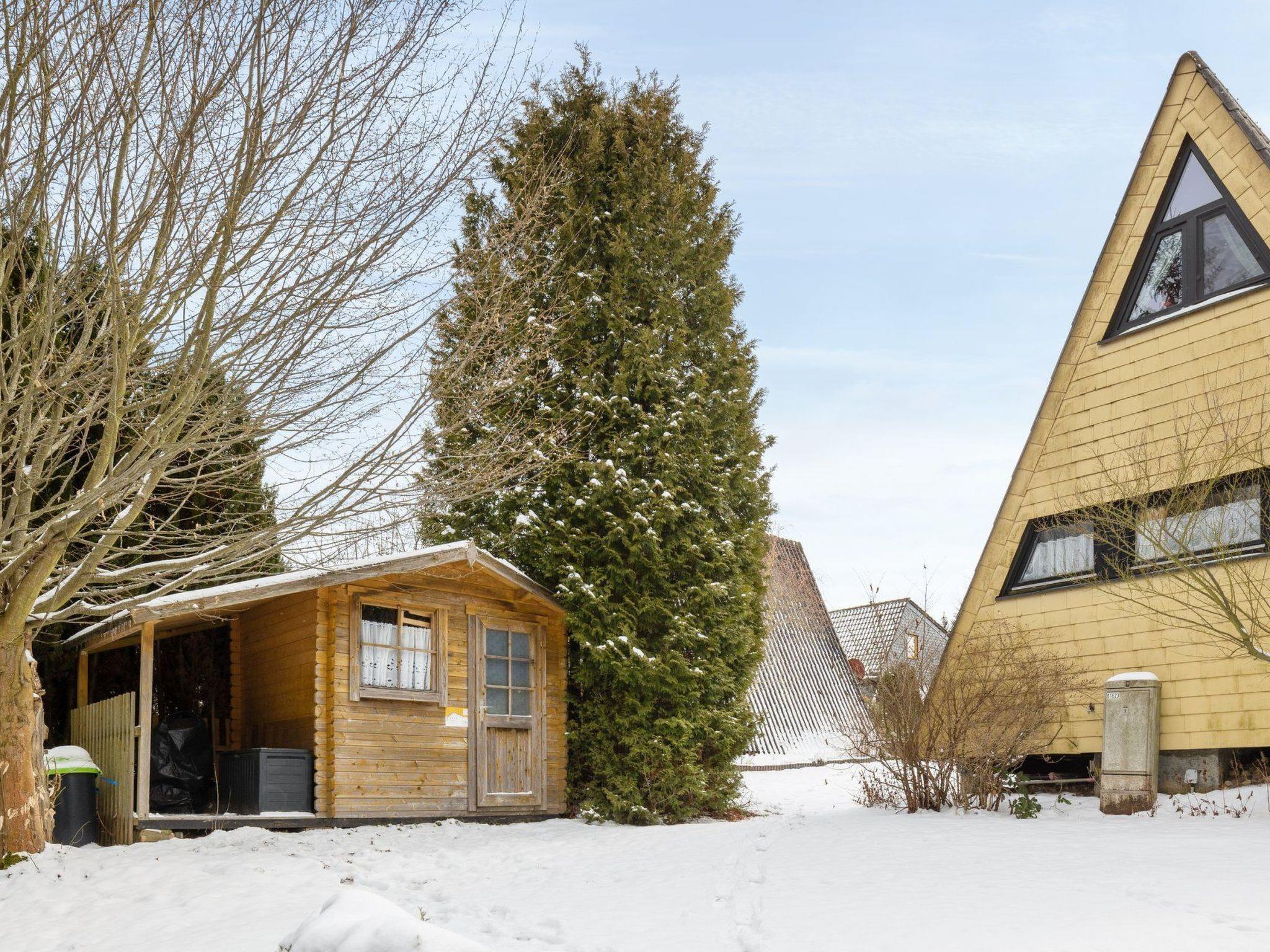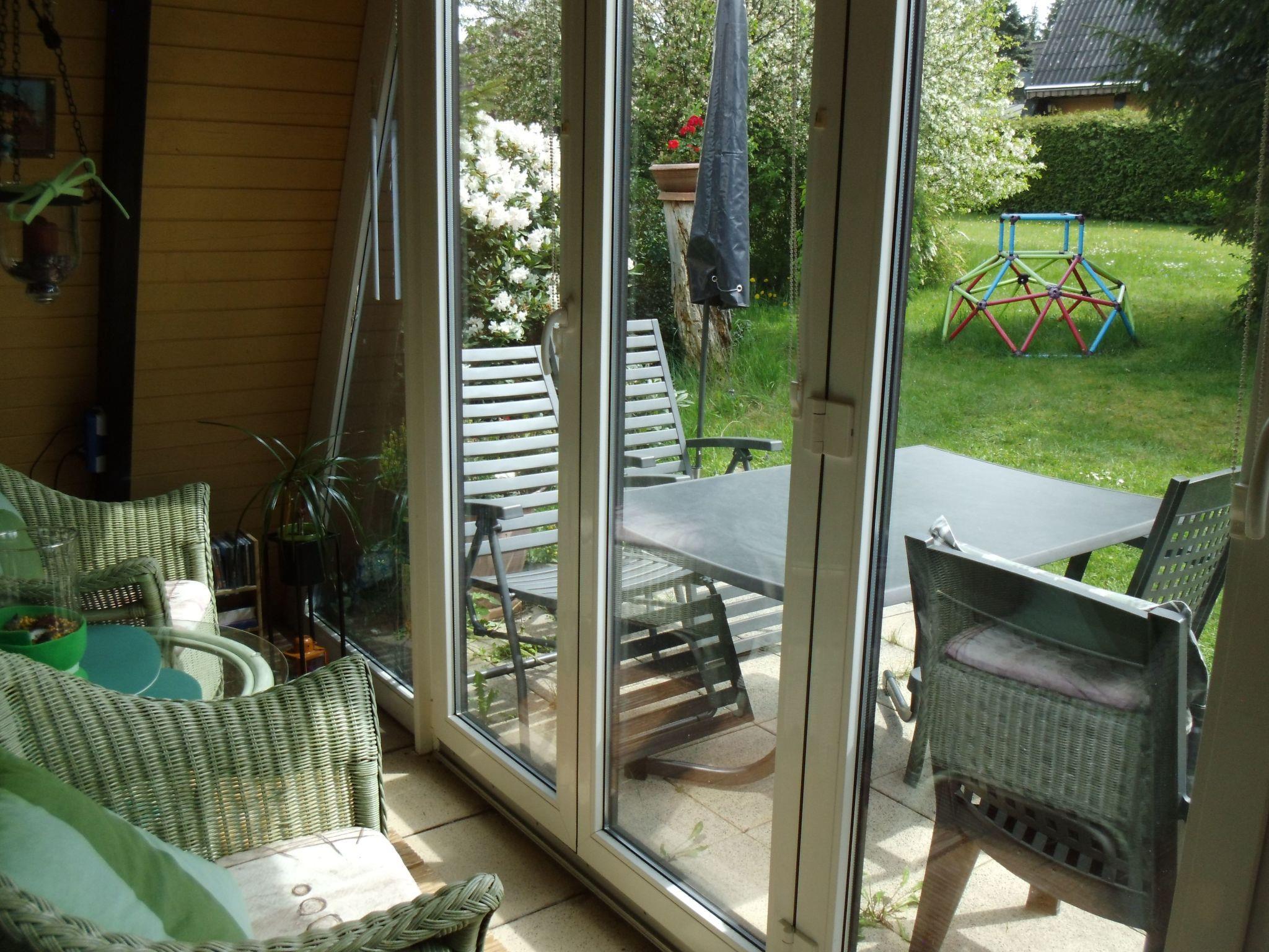 - The house and garden with garden shed in a very quiet residential area (no holiday park) are well maintained. The south-facing terrace and a small conservatory with rattan furniture and compact music system lead to a spacious living/dining area with upholstered seating area and rustic dining area and satellite TV. A very well-equipped, small kitchenette, hallway with wardrobe and a shower room/WC are adjacent. A Samba staircase (= narrow room-saving staircase) leads to the upper area with two bedrooms and wall cupboards for the travelling wardrobe. A child safety lock and banisters are provided. One bedroom has two single beds (80 x 190 cm). In the 2nd bedroom there is a double bed (180 x 190 cm). However, the beds can also be converted into two single beds. There is an additional option for a cot or reading area with lounge chair. An additional emergency bed (70 x 190 cm) is available. The tilting windows in the bedrooms have insect screens.