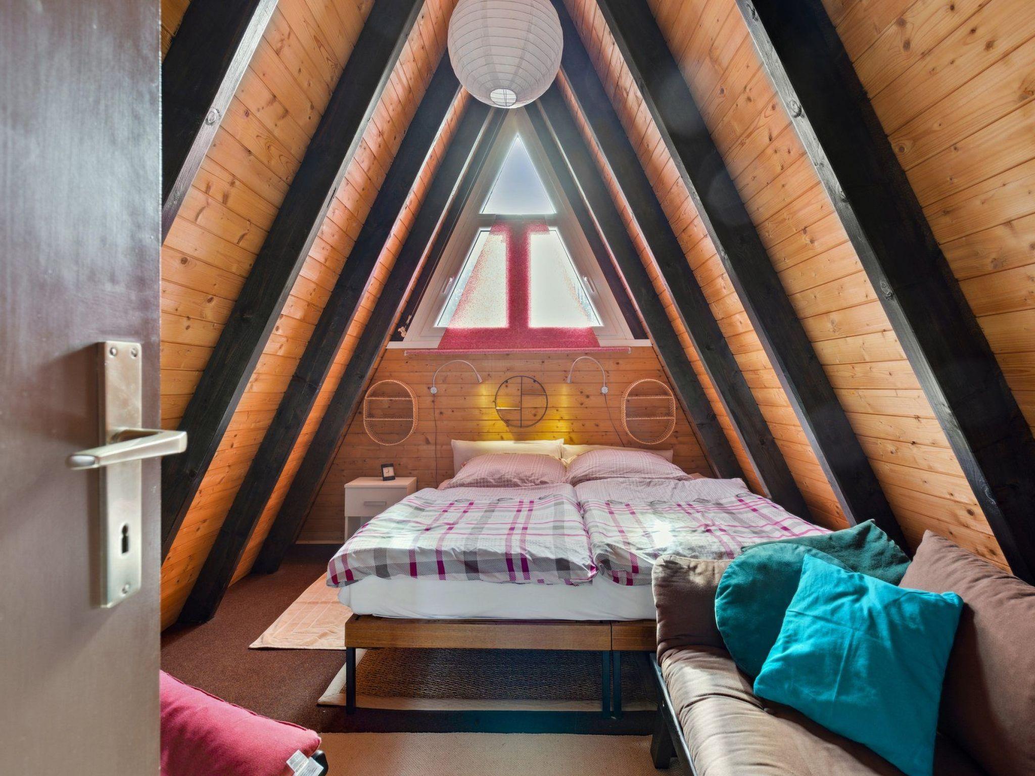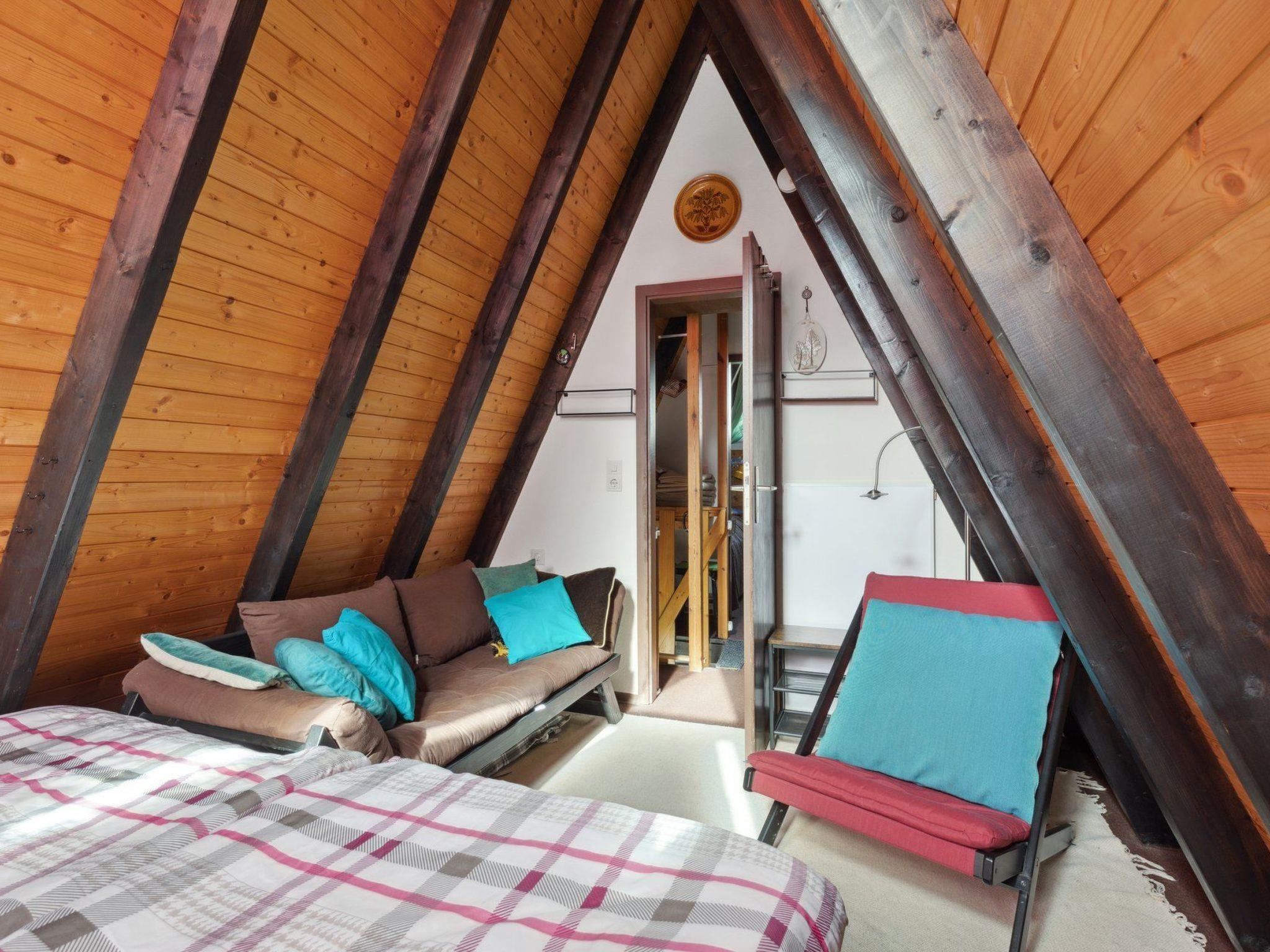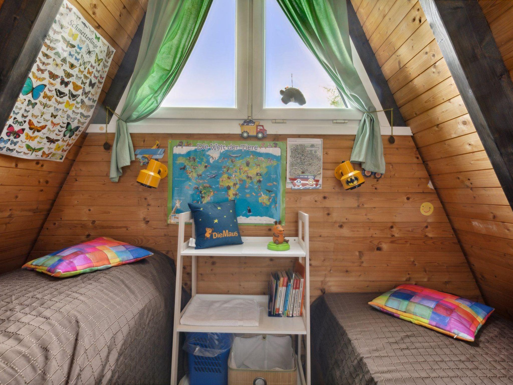 - The house and garden with garden shed in a very quiet residential area (no holiday park) are well maintained. The south-facing terrace and a small conservatory with rattan furniture and compact music system lead to a spacious living/dining area with upholstered seating area and rustic dining area and satellite TV. A very well-equipped, small kitchenette, hallway with wardrobe and a shower room/WC are adjacent. A Samba staircase (= narrow room-saving staircase) leads to the upper area with two bedrooms and wall cupboards for the travelling wardrobe. A child safety lock and banisters are provided. One bedroom has two single beds (80 x 190 cm). In the 2nd bedroom there is a double bed (180 x 190 cm). However, the beds can also be converted into two single beds. There is an additional option for a cot or reading area with lounge chair. An additional emergency bed (70 x 190 cm) is available. The tilting windows in the bedrooms have insect screens.
