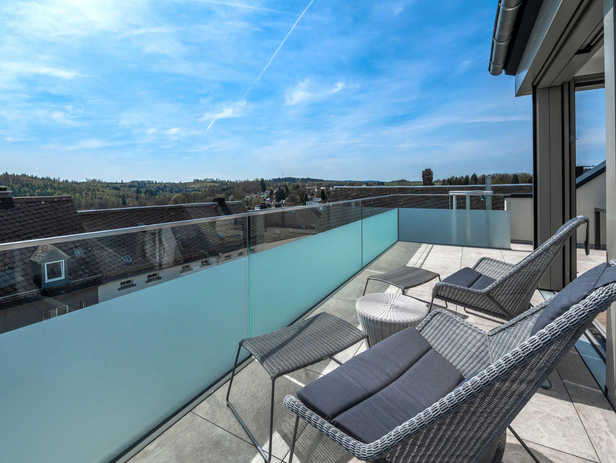 Lichtdurchflutetes, exklusiv möbliertes 5 Sterne 60 m²-Dachgeschoss-Apartment mit Sonnenterrasse mit Sonnenterrasse und traumhafter Aussicht