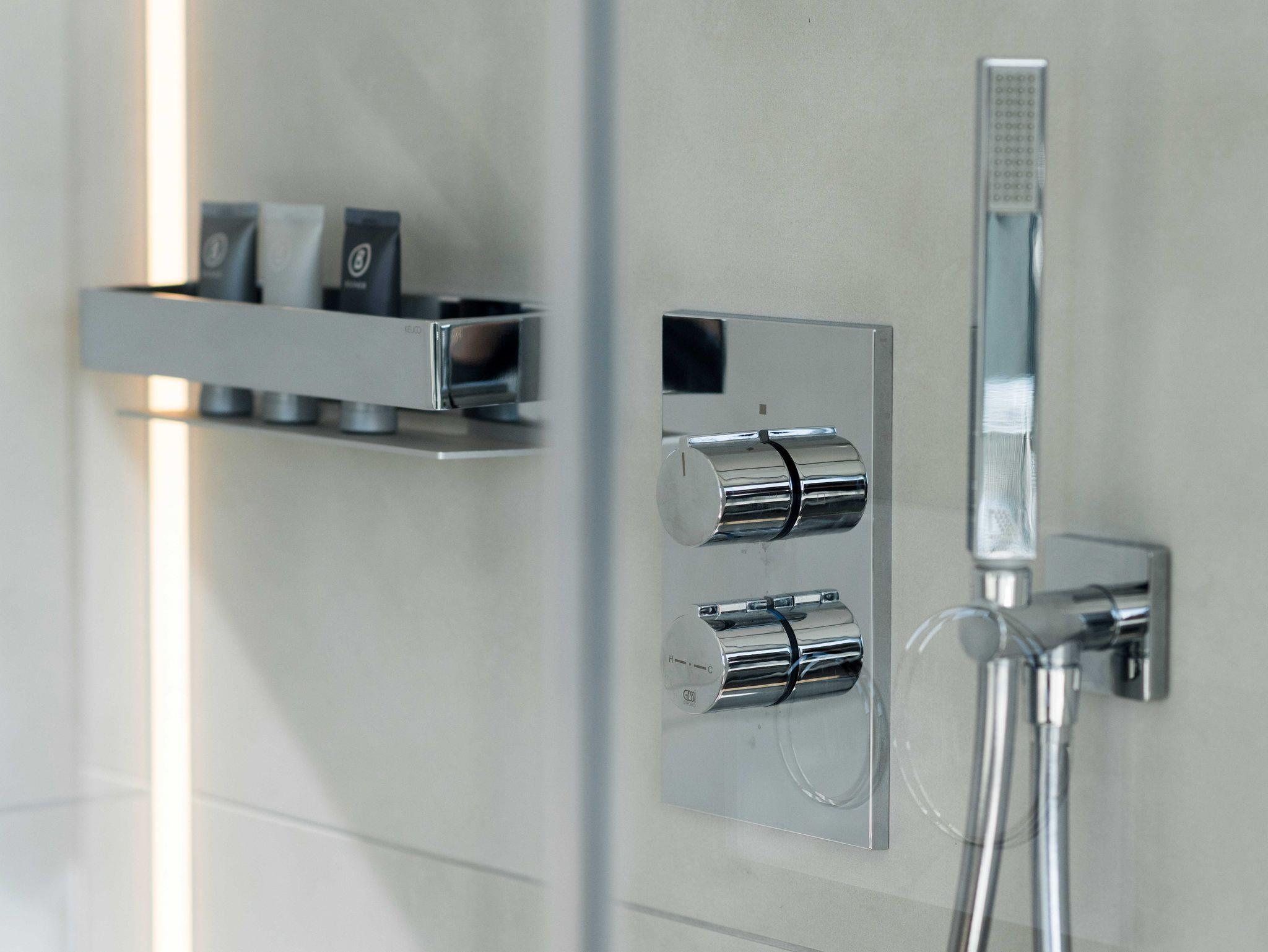 Fußbodenheizung, Dimmer-Beleuchtung, Designer-Leuchten (u.a. TOLOMEO, MARSET), diverse LED-Leisten