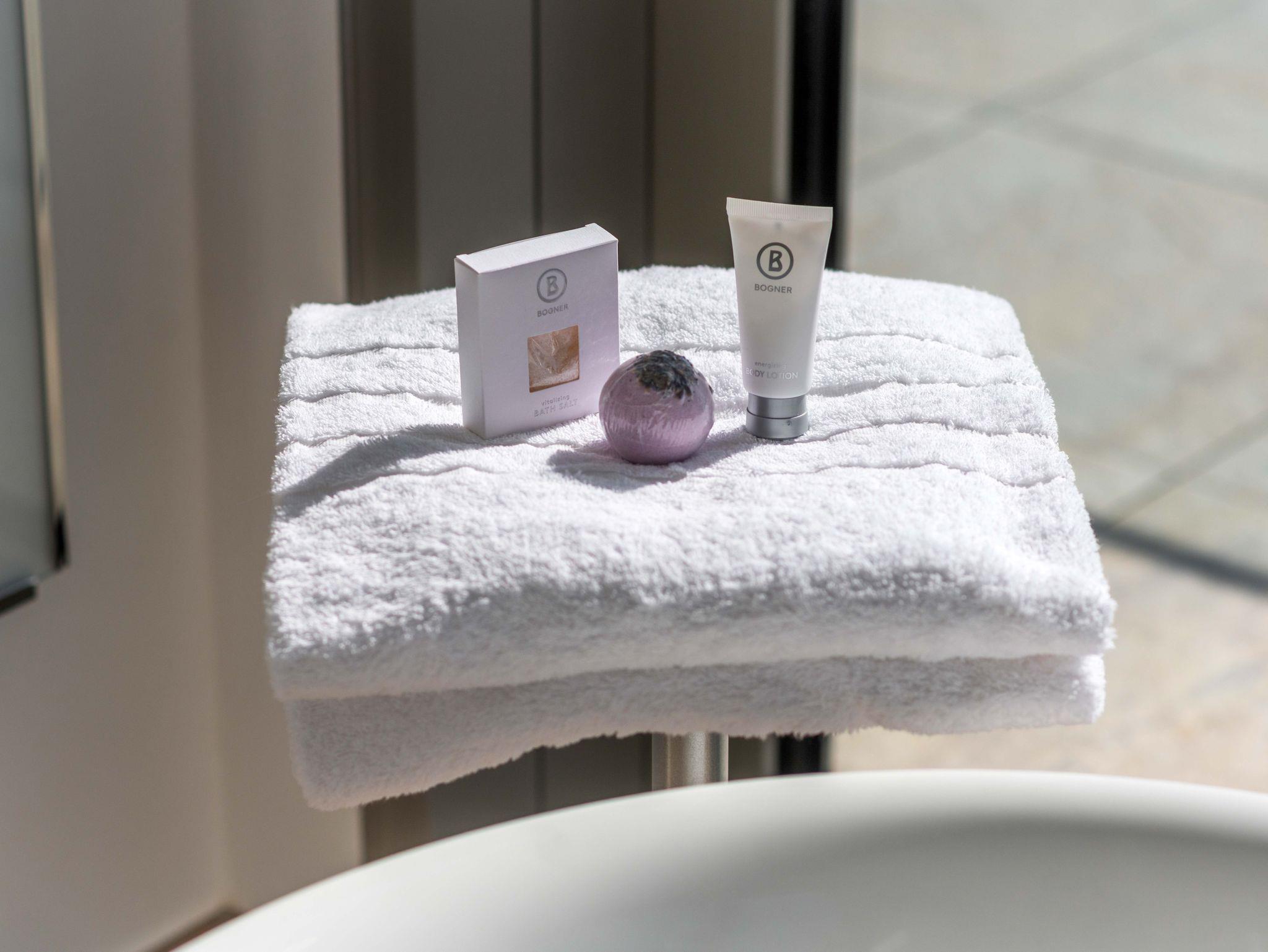 Hochwertige Bettwäsche, Bademäntel, Handtücher, hochwertige Hotelkosmetik, Fön und Safe, aber auch zahlreiche Dinge des täglichen Bedarfs