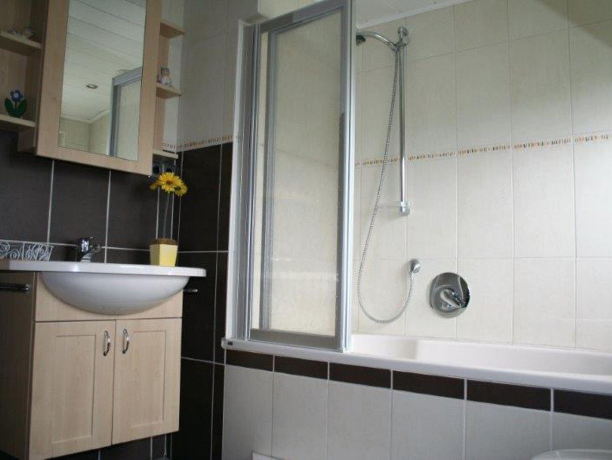 Das Bad verfügt über eine Dusche sowie Badewanne, weiterhin ist es mit Kosmetikartikel, Föhn und Kosmetikspiegel ausgestattet.