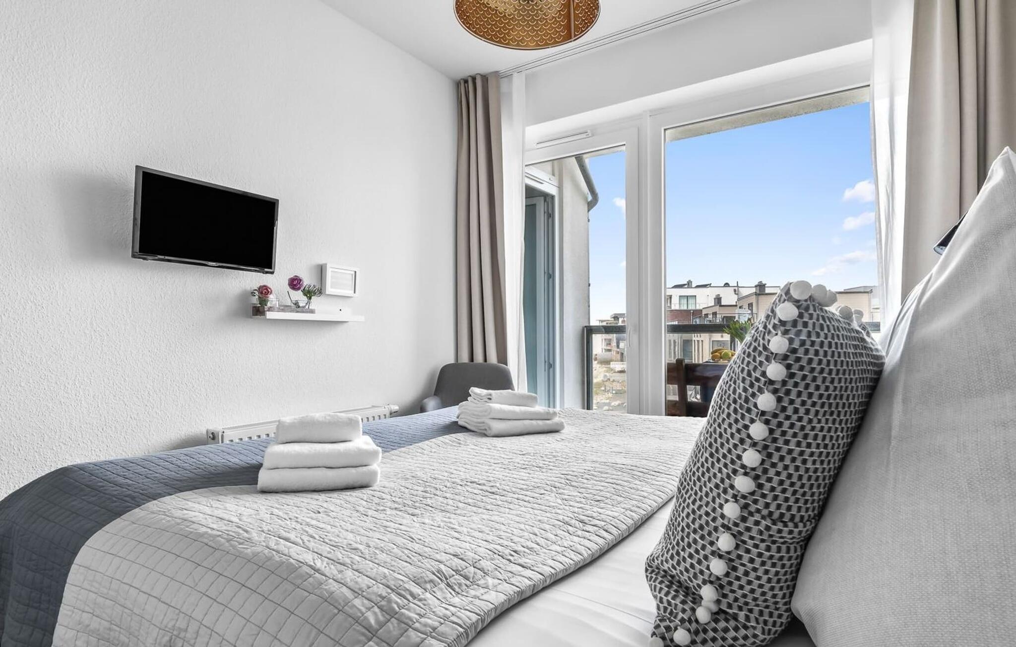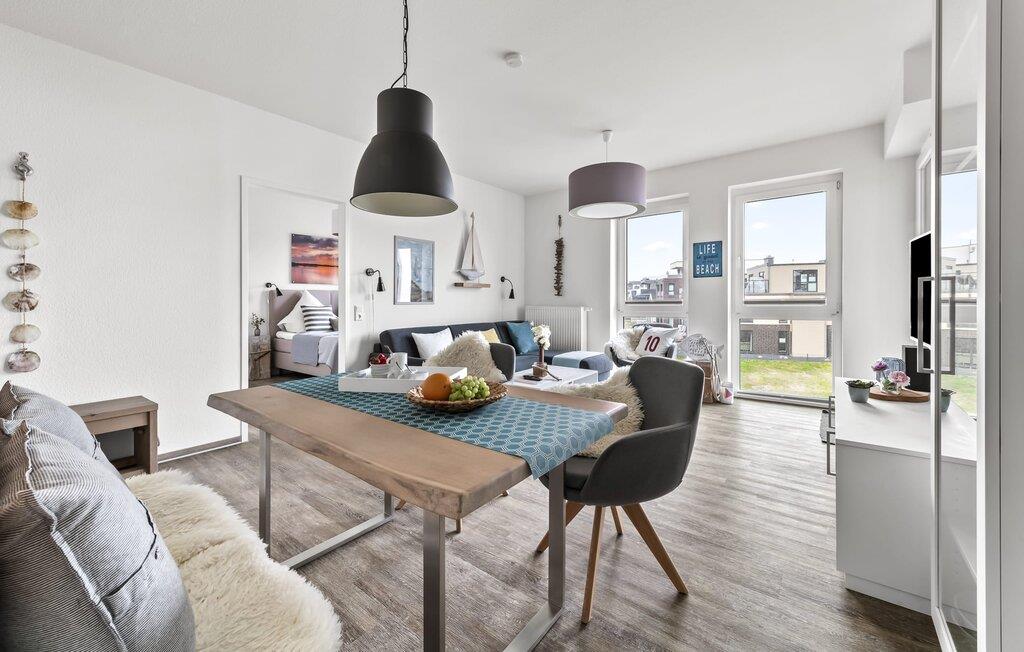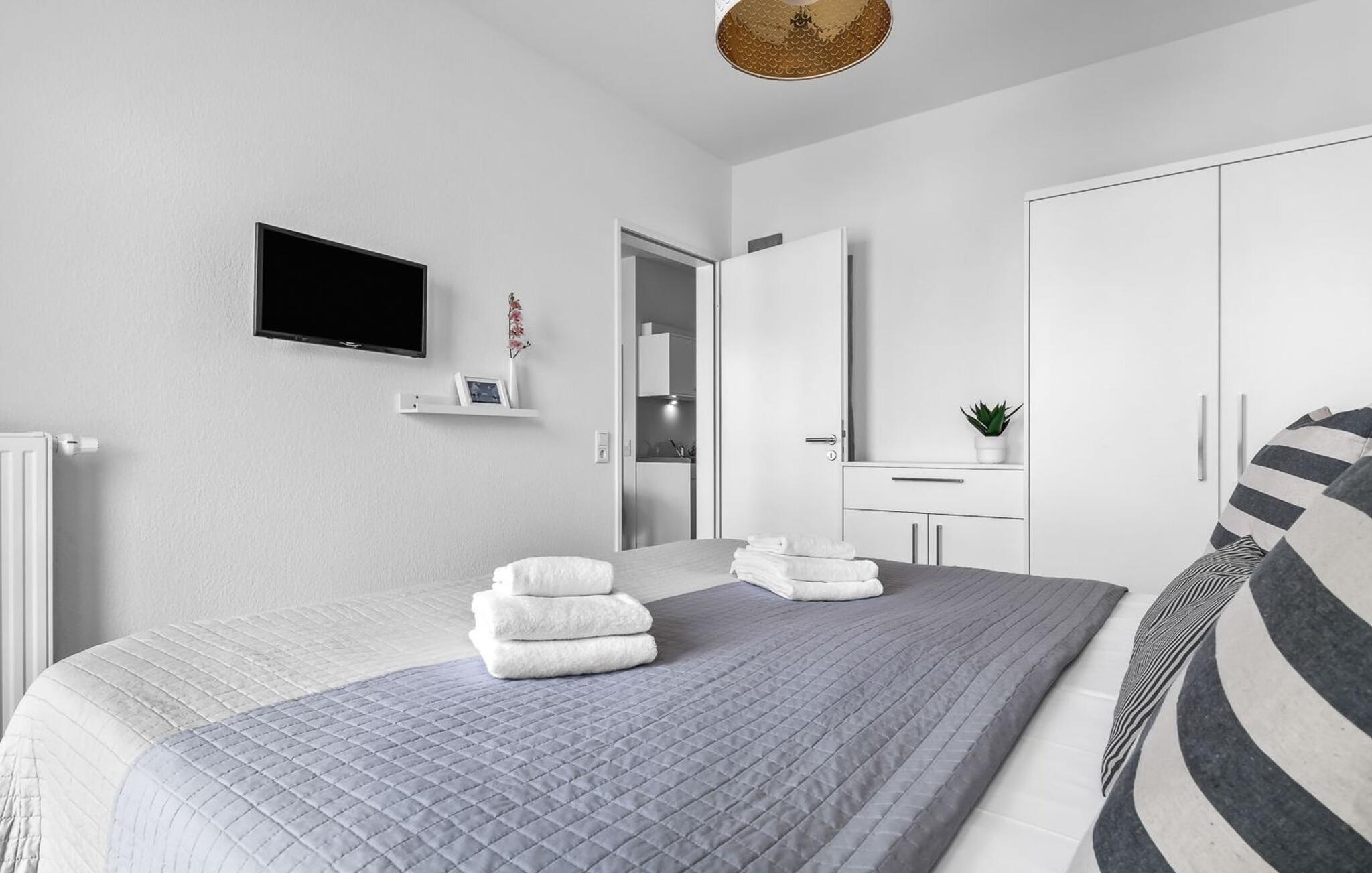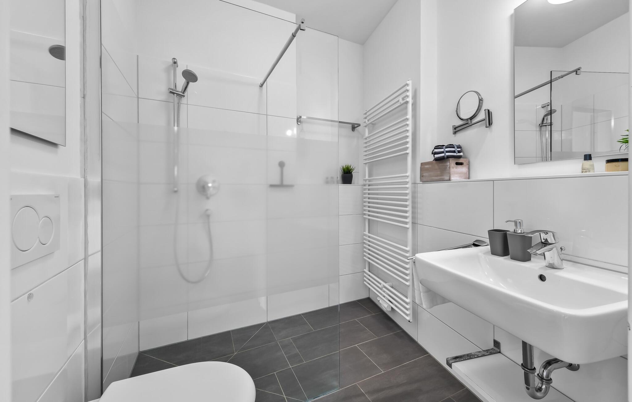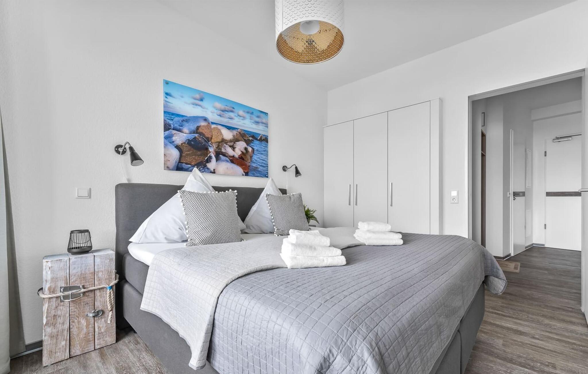 Midt i Østersøen finder I jeres ideelle tilflugtssted på et næs for at flygte fra hverdagen: Yndlingssted nr. 10. Denne eksklusive ferielejlighed ligger ved Østersøen i feriestedet Olpenitz ved Østersøen. Her, omgivet af blide bølger og den friske havbrise, åbner et betagende panorama sig foran jer. Yndlingssted nr. 10 byder på plads til op til seks personer og byder jer velkommen med to hyggelige soveværelser, udstyret med komfortable dobbelte boxmadrasser og smart-tv. Sofaen i stuen med en indbydende lang stol kan omdannes til en ekstra dobbeltseng, perfekt til afslappende nætter. Spisepladsen til seks personer i stuen skaber en harmonisk atmosfære til fælles måltider. Det fuldt udstyrede køkken, som forbinder problemfrit til opholds-/spiseområdet, inviterer jer til at fremtrylle kulinariske delikatesser. Fra hvert vindue kan I nyde den fascinerende udsigt over det omgivende vand. Loggiaen med sin charmerende hjørnebænk bliver et privat tilflugtssted for hyggelige morgener eller romantiske solnedgange for to. Et rigtigt højdepunkt og et naturligt skue. Lejligheden indeholder to badeværelser, begge med walk-in brusere, der tilbyder et ekstra strejf af luksus og komfort. Disse moderne og stilfulde badeværelser er perfekte oaser for afslapning og afrunder booplevelsen på favoritsted nr. 10 rabat. Til lejligheden hører en privat parkeringsplads, som giver jer frihed til at udforske det omkringliggende område fleksibelt. Cykelelskere har deres egen cykelkælder, inklusive gratis stikkontakter til e-cykler. Schlei/Østersøregionen tiltrækker med maleriske cykelstier, der er perfekte til lange ture i naturen. Fordyb jer i Østersøens verden, et sted, hvor hverdagen synker ned i bølgerne, og tiden ser ud til at stå stille. Oplev uforglemmelige øjeblikke og skab minder med hele familien. Vores favoritsted: På hjørnesædet på balkonen lige foran Østersøen, bedst med en kop kaffe i hånden. I kælderen er der vaskemaskine og tørretumbler til fælles brug. Betaling sker via en møntautomat. I sidebygningen af komplekset venter der gæsterne et eksklusivt pool- og wellnessområde, som naturligvis kan benyttes gratis. Dyk ned i det behageligt tempererede vand, og lad blikket glide ud over Østersøens vidder – en oplevelse for alle sanser. Velgørende saunature indbyder til ophold og giver jer dyb afslapning. Giv jer selv disse små pauser og læg hverdagens stress bag jer – til en ferie fuld af ro, nydelse og ny energi. Bemærk venligst: OstseeResort Olpenitz er meget populært, og der bygges fortsat i parken. Ikke desto mindre kan I se frem til en 5-stjernet standard og et førsteklasses ophold. Byggeaktiviteterne kommer ikke til at forstyrre jer på ferien, og derfor gives der ikke yderligere afslag i prisen.