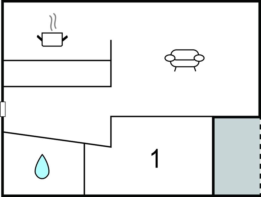 Opholdsstue/køkken - 2 Sovepladser. (Sofa, madras eller lignende).
