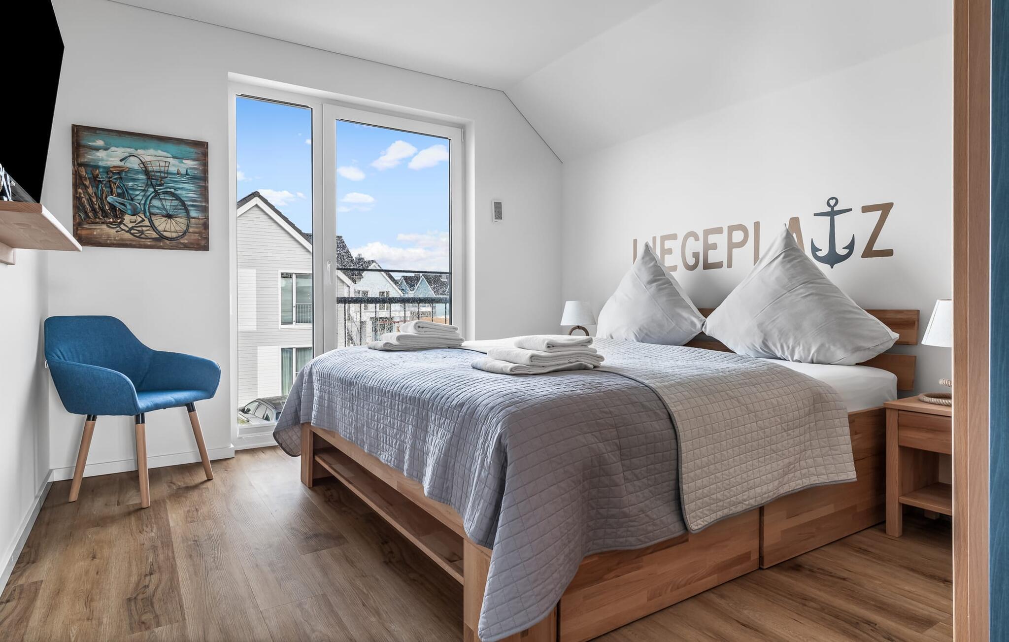 Kun få meter fra Weidefelds sandstrand og havnepromenaden ligger den moderne ferielejlighed LIEGEPLATZ med central beliggenhed, fantastisk nærhed til naturen og topfaciliteter. I kan nyde solen hele dagen lang på de to altaner.