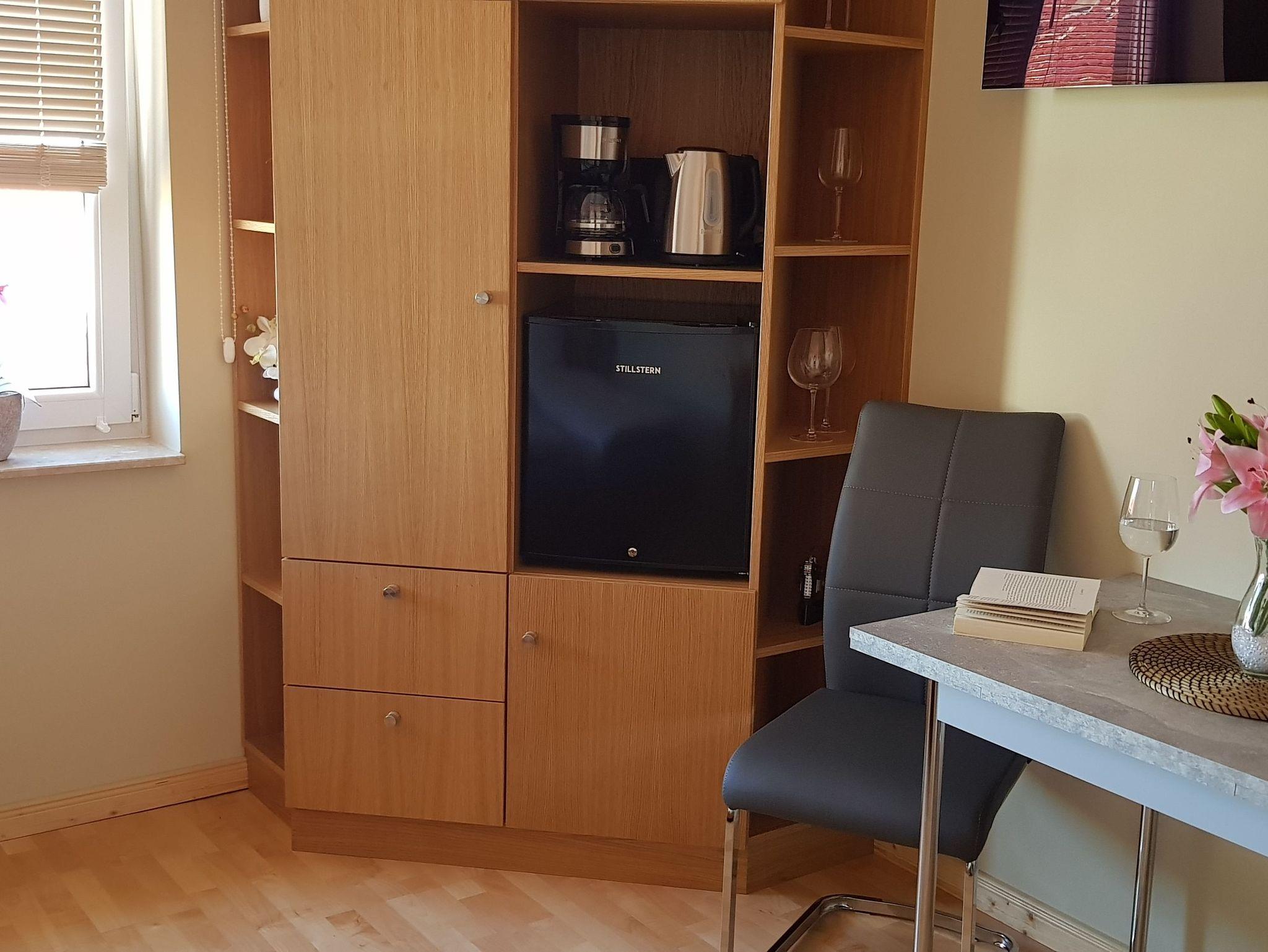 Die Suite Kleine Auszeit ist gemütlich, mordern und komfortabel eingerichtet. Die 18 m² große Suite befindet sich im Obergeschoss eines Einfamilienhauses. Ausgestattet ist sie für 2 Personen. Das Zimmer verfügt über ein großes Doppelbett, Kleiderschrank, Essbereich sowie Bad mit Du/WC. Ihren Pkw können Sie auf hauseigenen Parkplätzen abstellen. Es gibt Fußbodenheizung, eine Grillmöglichkeit und Gartenmöbel.