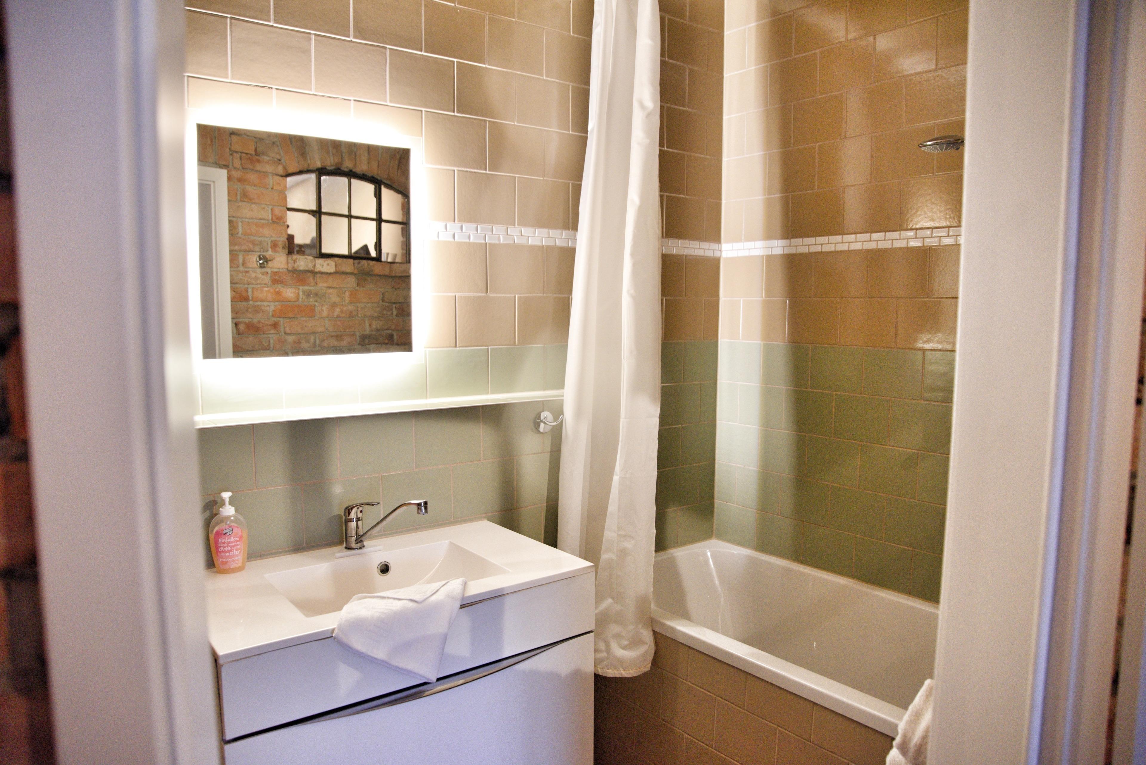 Ihr Badezimmer ist, wie das gesamte Studio, mit einer Fußbodenheizung versehen und mit einer Badewanne ausgestattet. Für Gäste mit Kleinkindern bis drei Jahren stehen ein Reisebett und ein Kinderhochstuhl zur Verfügung.