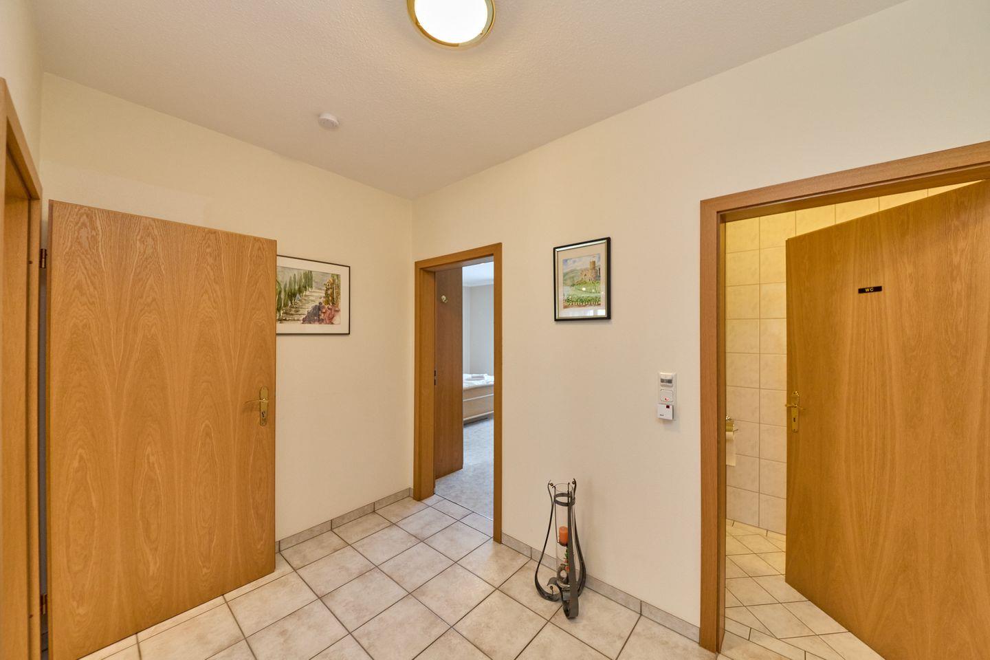 Die Fewo Paulsberg ist modern und stilvoll eingerichtet. Es stehen Ihnen insgesamt drei Zimmer zur Verfügung, darunter ein komfortables Schlafzimmer, ein gemütliches Wohnzimmer und ein zusätzliches Gäste-WC. Das Schlafzimmer ist mit einem großen Bett ausgestattet und lädt zu erholsamen Nächten ein. Das freundliche Design und die durchdachte Architektur sorgen für eine angenehme Atmosphäre, in der Sie sich sofort wohlfühlen werden.
