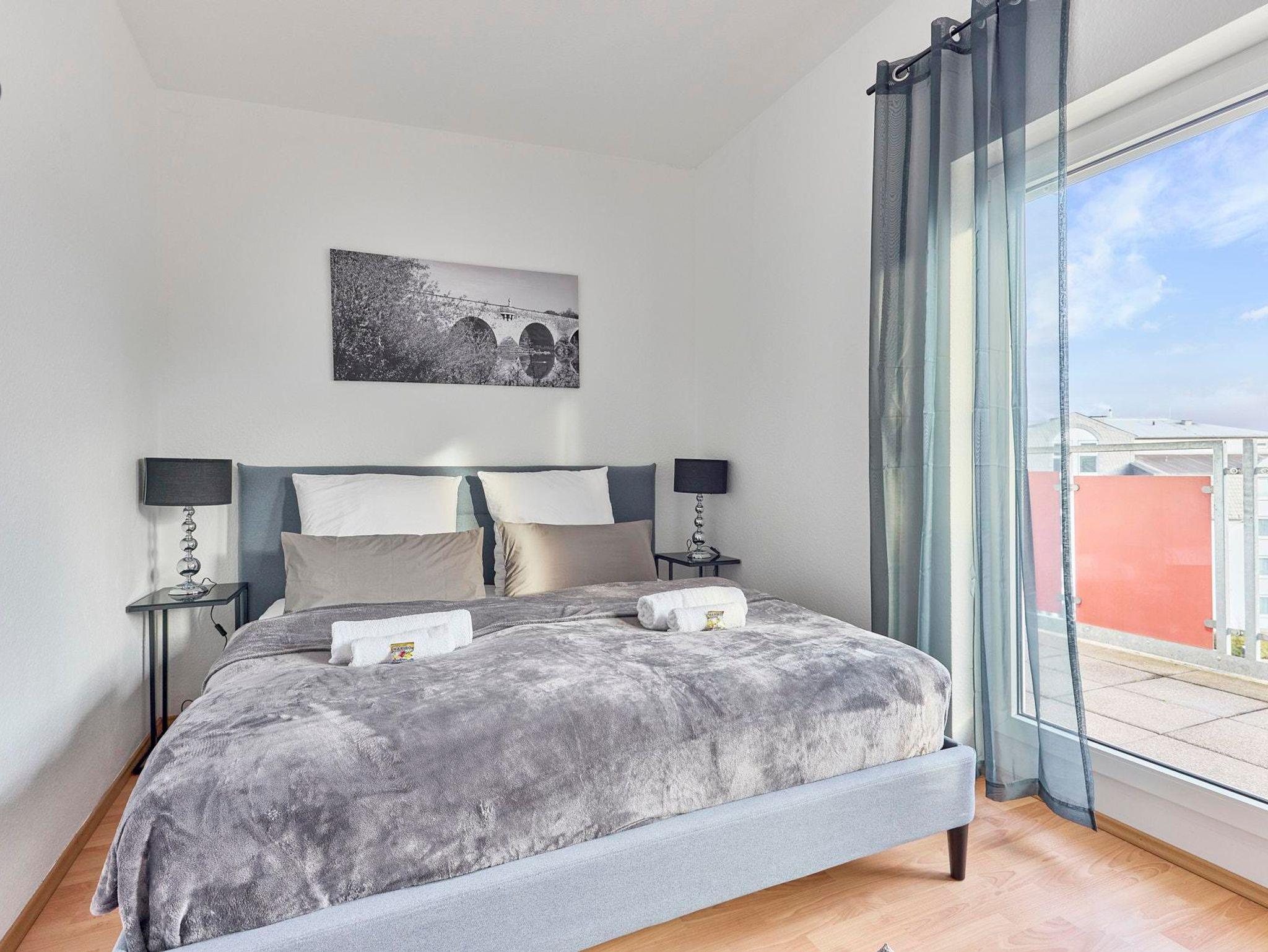 Willkommen in unserer liebevoll eingerichteten Traumferienwohnung Domblick 2 – dein stilvolles Zuhause für besondere Tage in Limburg an der Lahn. Das rund 80?m² große 3-Zimmer-Apartment verbindet modernes Design mit gemütlichem Komfort und begeistert mit zwei Balkonen, kuscheligen Doppelbetten (jeweils 180?×?200?cm) und einem traumhaften Blick auf den Dom. Das erste Schlafzimmer bietet direkten Zugang zum großen Balkon mit Dompanorama, während das zweite Schlafzimmer – ideal für den 3. und 4. Gast – einen eigenen Zugang zum zweiten Balkon bietet. Der lichtdurchflutete Wohn- und Essbereich lädt mit einer bequemen Couch, Smart-TV und einer voll ausgestatteten Küche (inkl. NESPRESSO-Maschine, Kühlschrank mit Gefrierfach, Backofen, Herd, Spülmaschine u.?v.?m.) zu entspannten Stunden ein. Schon am Morgen kannst du bei einem Kaffee auf dem Balkon den Blick auf das bekannteste Wahrzeichen der Stadt genießen – ein perfekter Start in den Tag! Das moderne Bad ist mit einer Duschbadewanne ausgestattet. Bei deiner Ankunft erwarten dich frische Handtücher und bezogene Betten, Highspeed-WLAN ist selbstverständlich in der gesamten Wohnung verfügbar. Die Lage ist ideal: Nur fünf Gehminuten trennen dich von der Altstadt, dem Hauptbahnhof, zahlreichen Restaurants, Cafés und den schönsten Ecken Limburgs – alles bequem fußläufig erreichbar. Erlebe Komfort, Charme und einen Hauch von Luxus in unserer Domblick 2 – für eine Auszeit, die in Erinnerung bleibt.