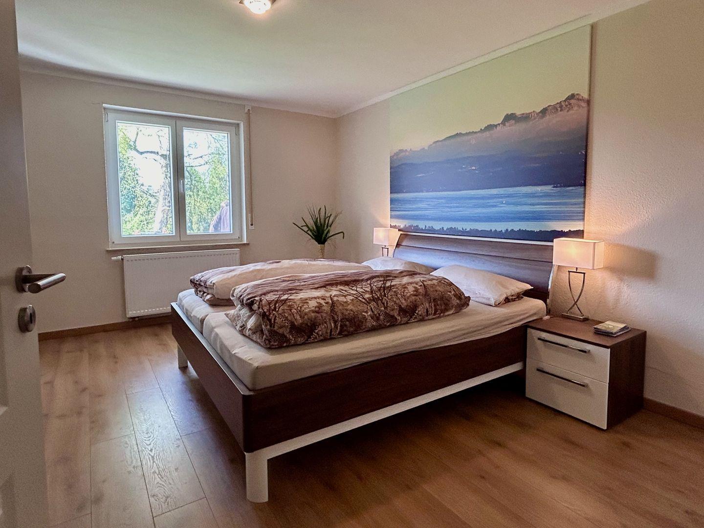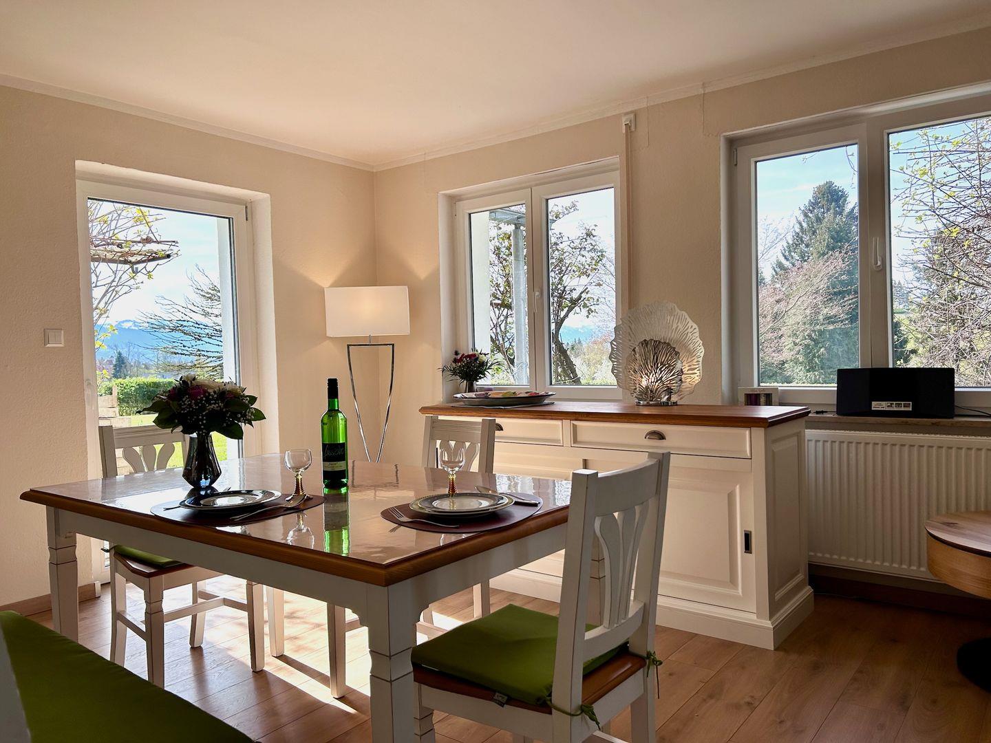 Genießen Sie einen entspannten Urlaub in dieser großzügigen, ländlich gelegenen Ferienwohnung am Stadtrand Lindaus. Es bietet sich Ihnen ein wunderbarer Blick über die direkt an das weitläufige Grundstück angrenzenden Weinberge bis zum Bodensee und den Alpen. Die Ausstattung der hellen 3-Zimmer Wohnung im Erdgeschoss mit zwei Schlafzimmern ist modern und stilvoll, auf hochwertige Materialien wurde Wert gelegt.