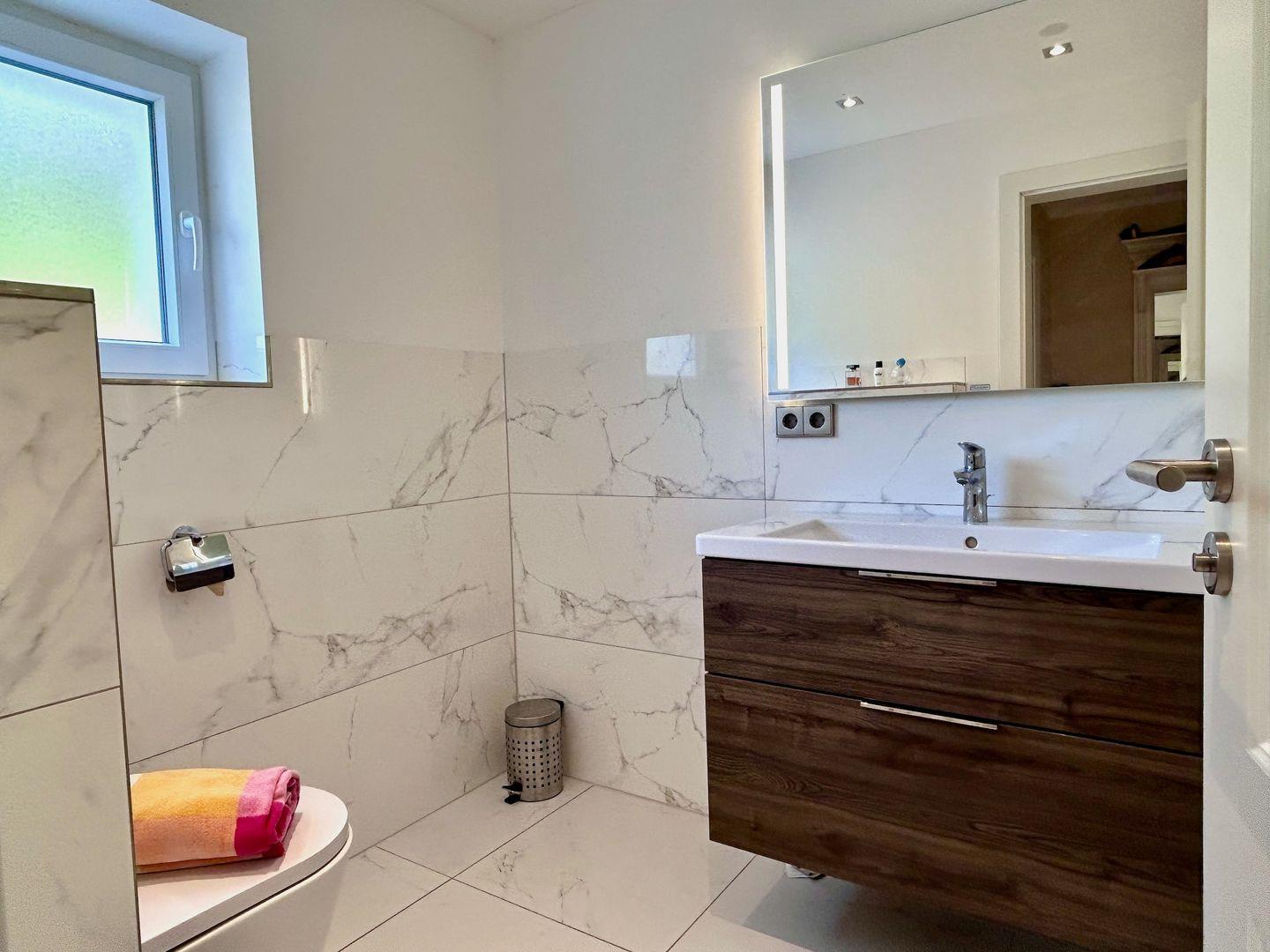 Ein Bad mit Dusche sowie ein separates WC bieten allen Komfort den Sie für Ihren Aufenthalt benötigen. Die Unterkunft bietet sich sowohl für befreundete Paare oder auch Familien an.