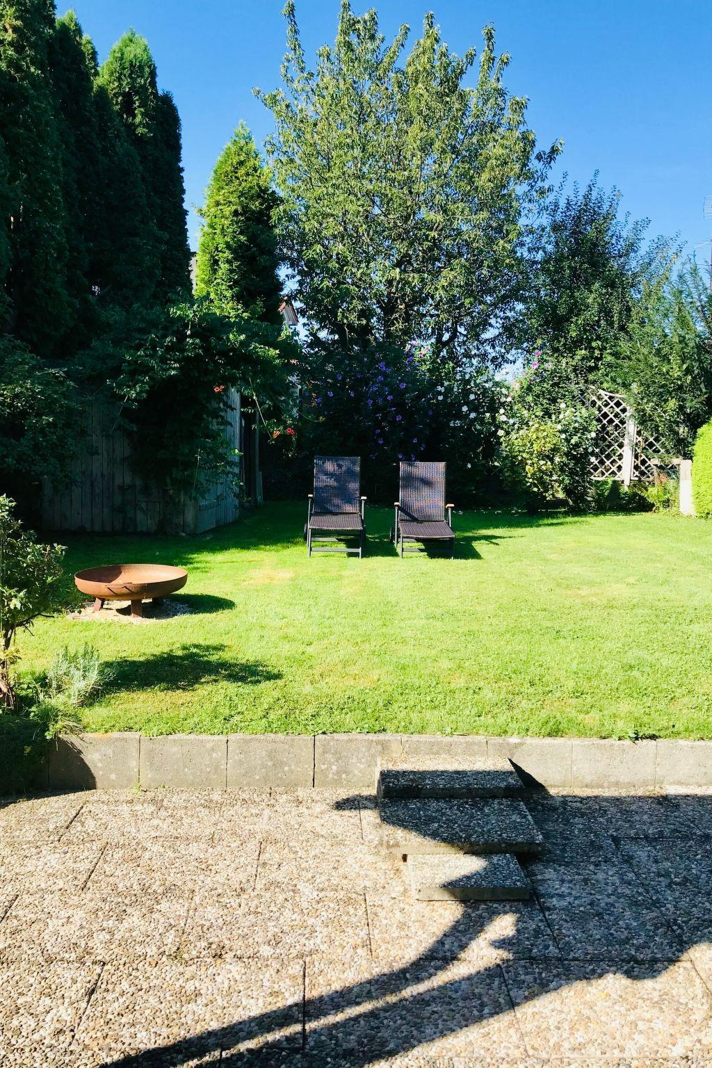 The terrace is equipped with garden furniture, parasol and two garden loungers. The property is fenced and therefore also ideal for children and dogs.