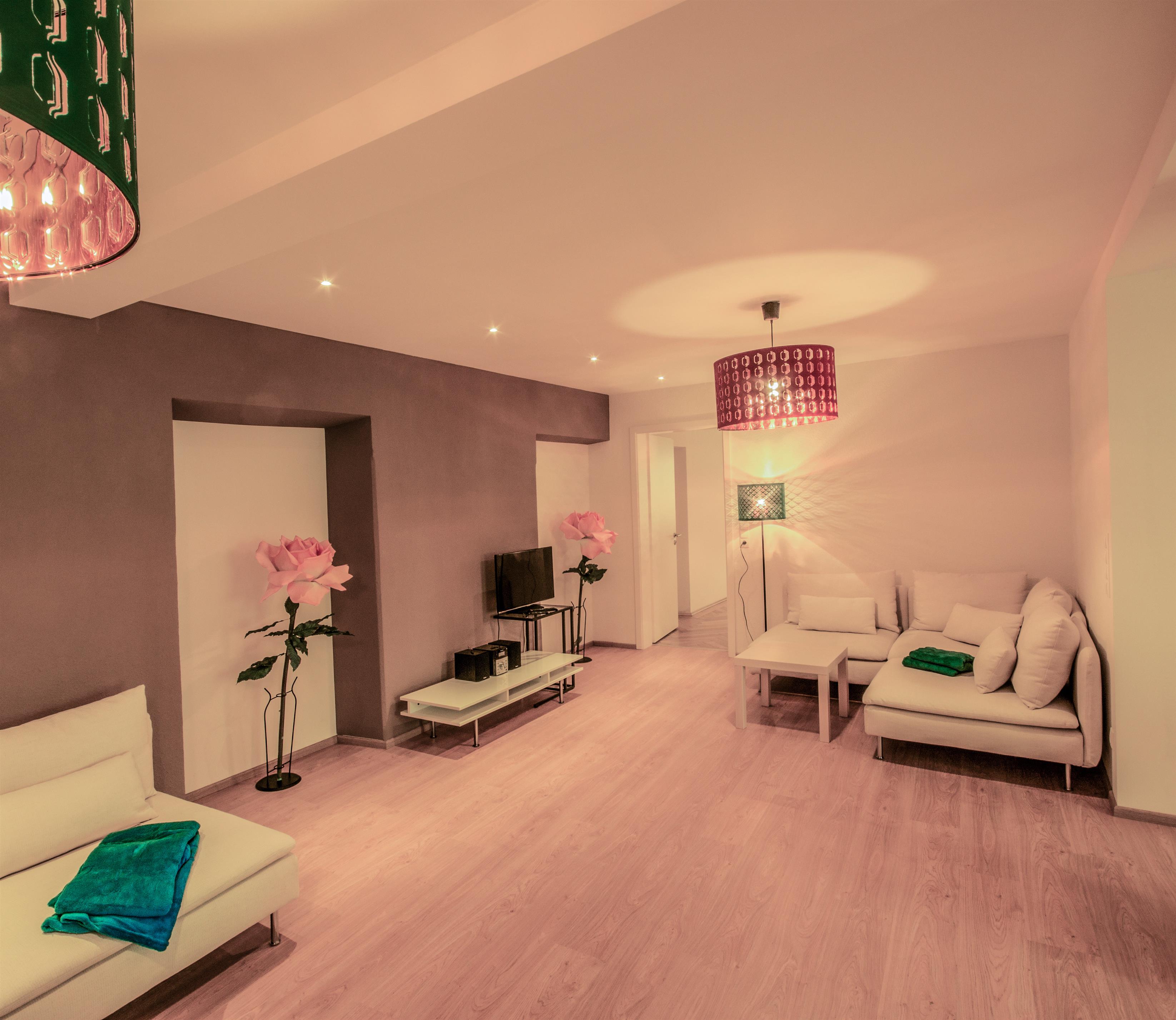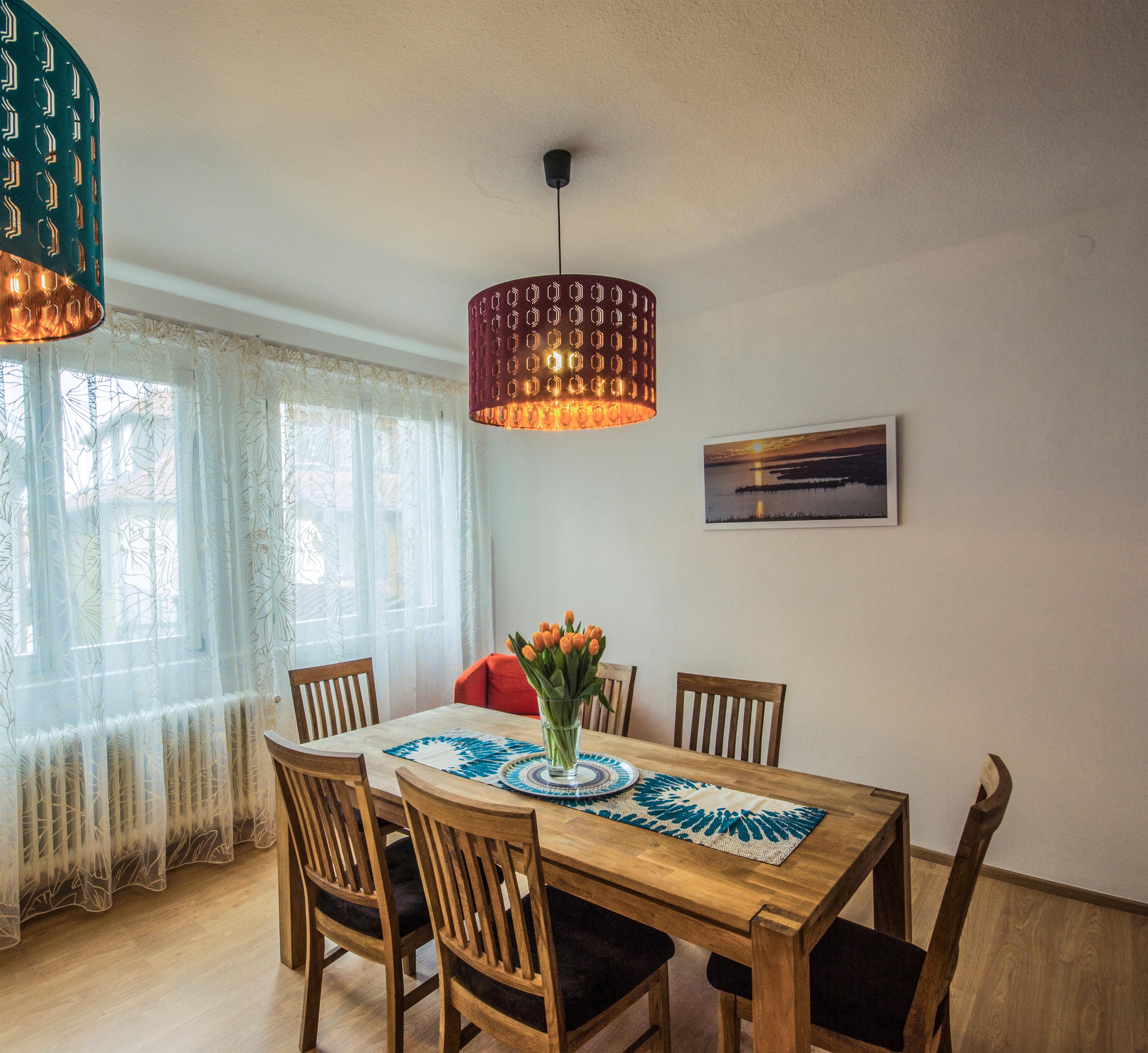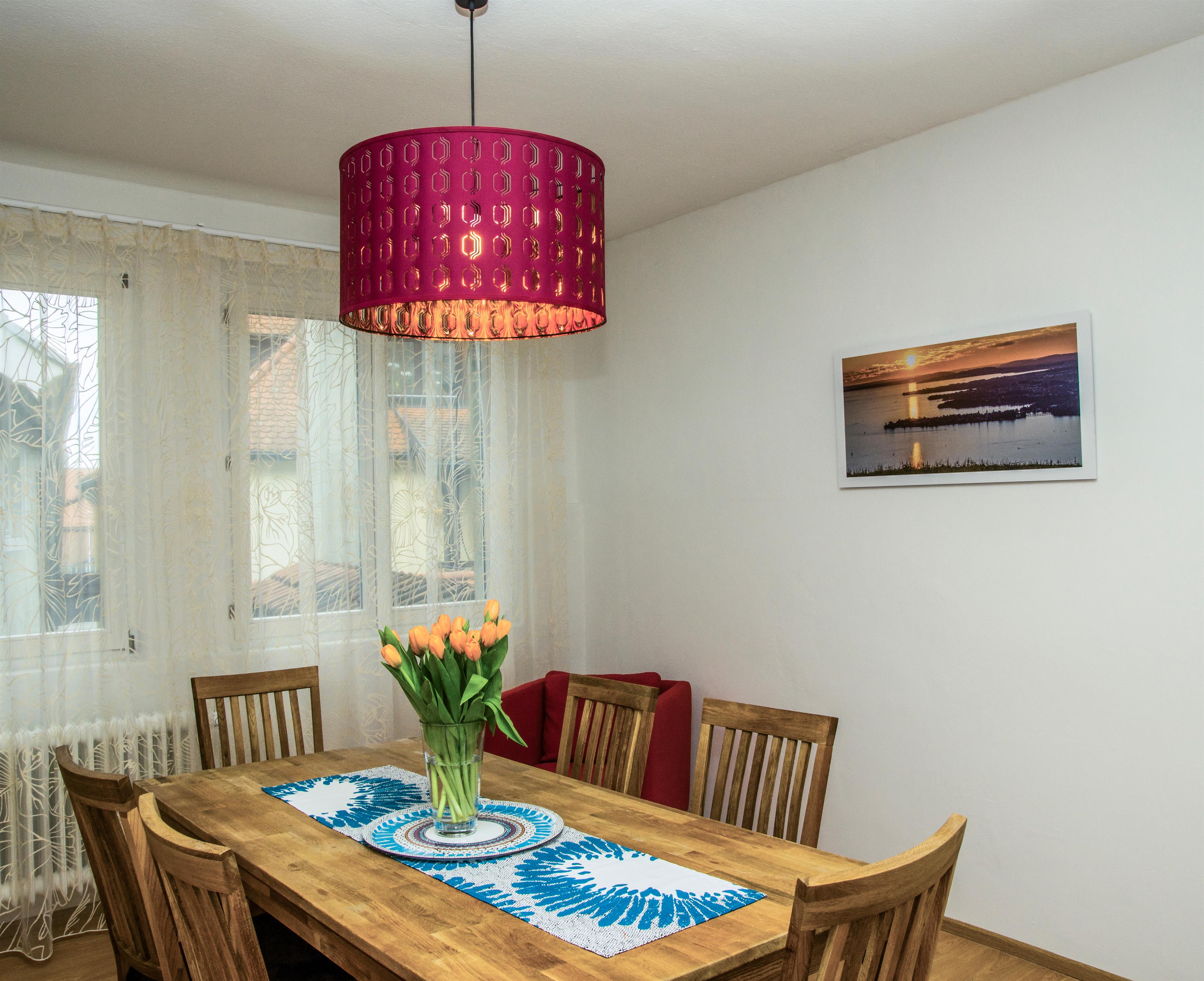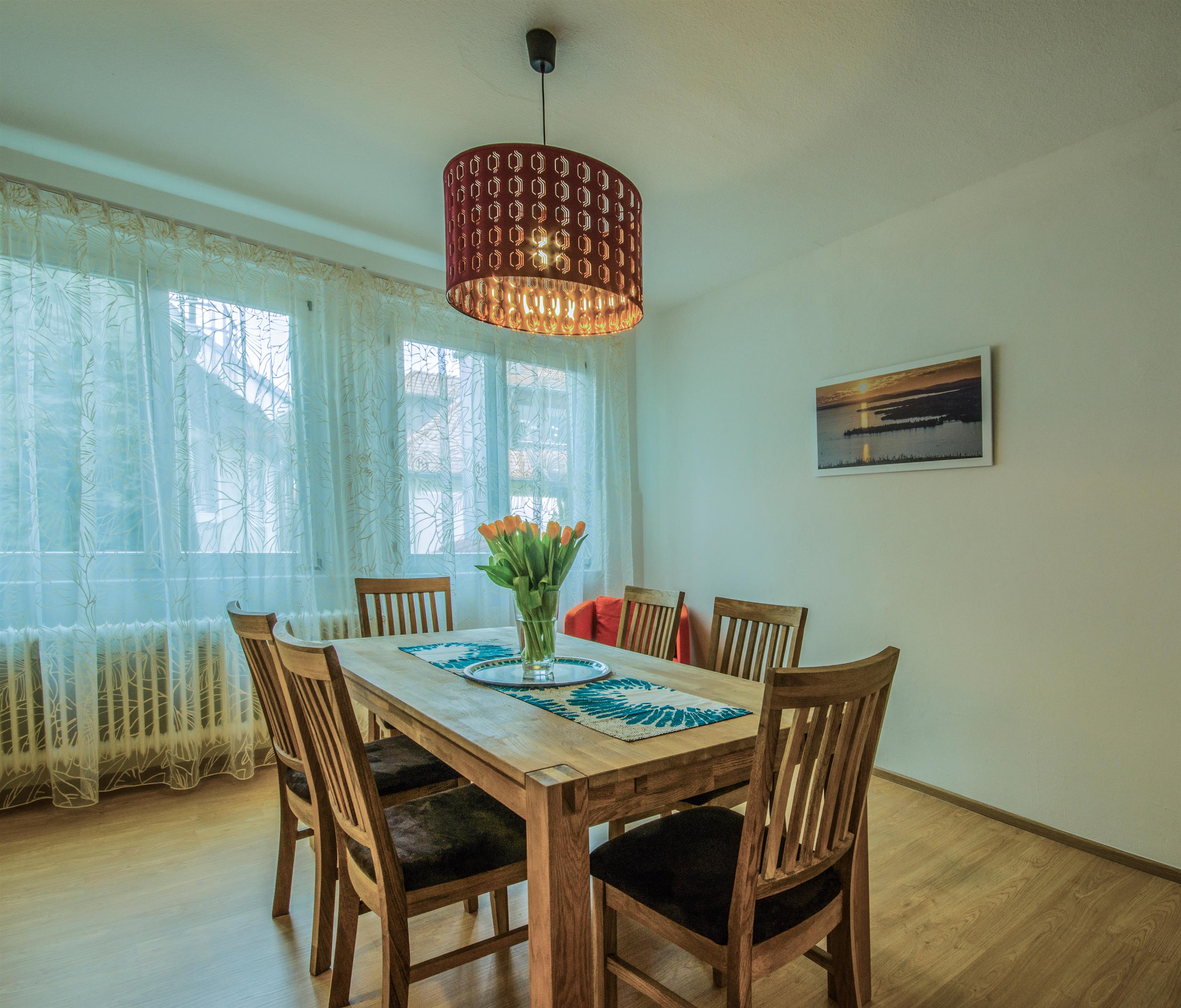 Herrlich großzügig und ruhig können Sie hier sogar mit 6 Personen Ihren Aufenthalt genießen. Der stilvoll unterteilte Wohn-Essbereich ist zentraler Treffpunkt. Sitzen Sie gerne an der Esstafel aus Eiche in der offenen Küche & oder lieber in einer der zwei gemütlichen Sofaecken des Wohnzimmers?
