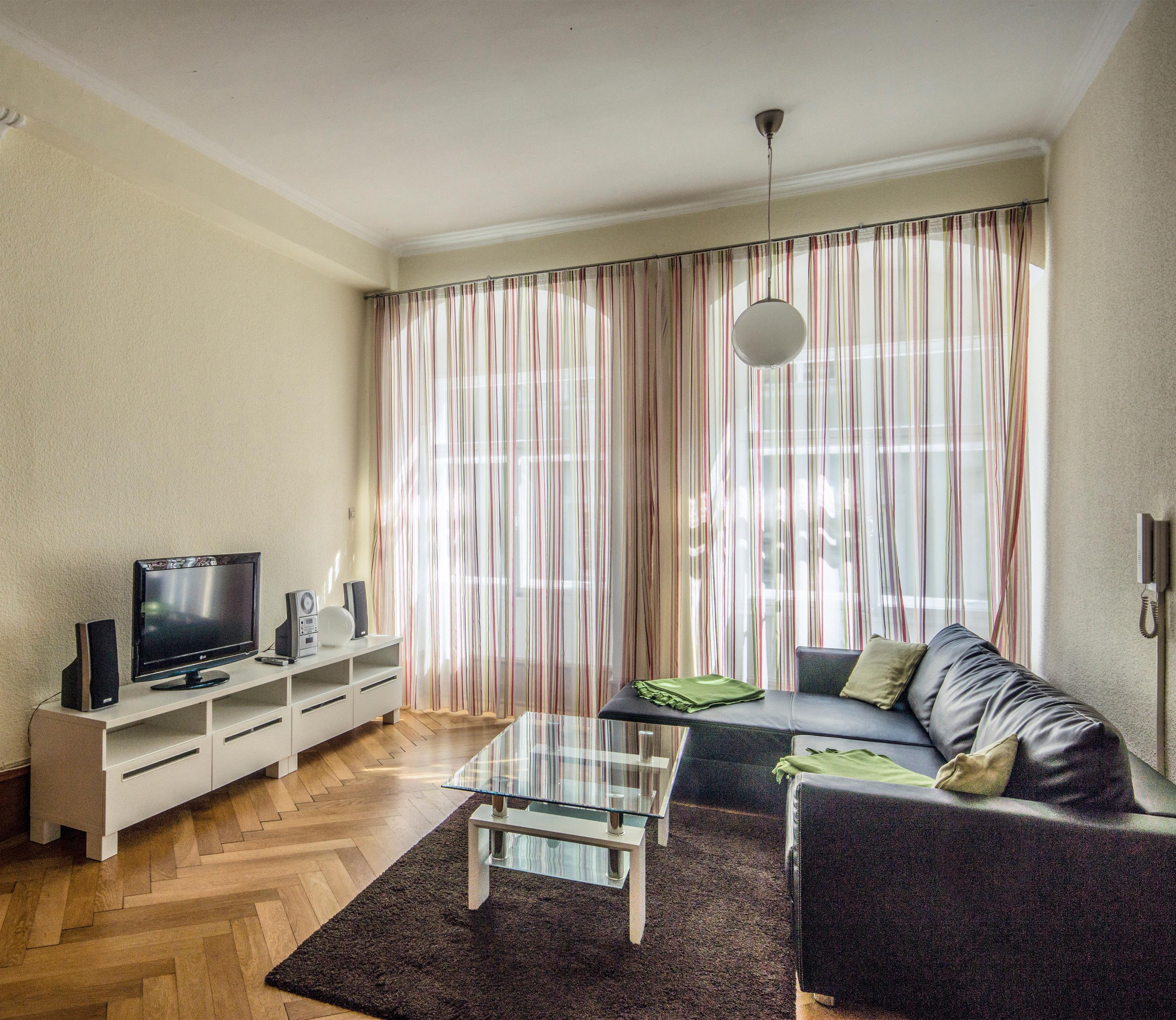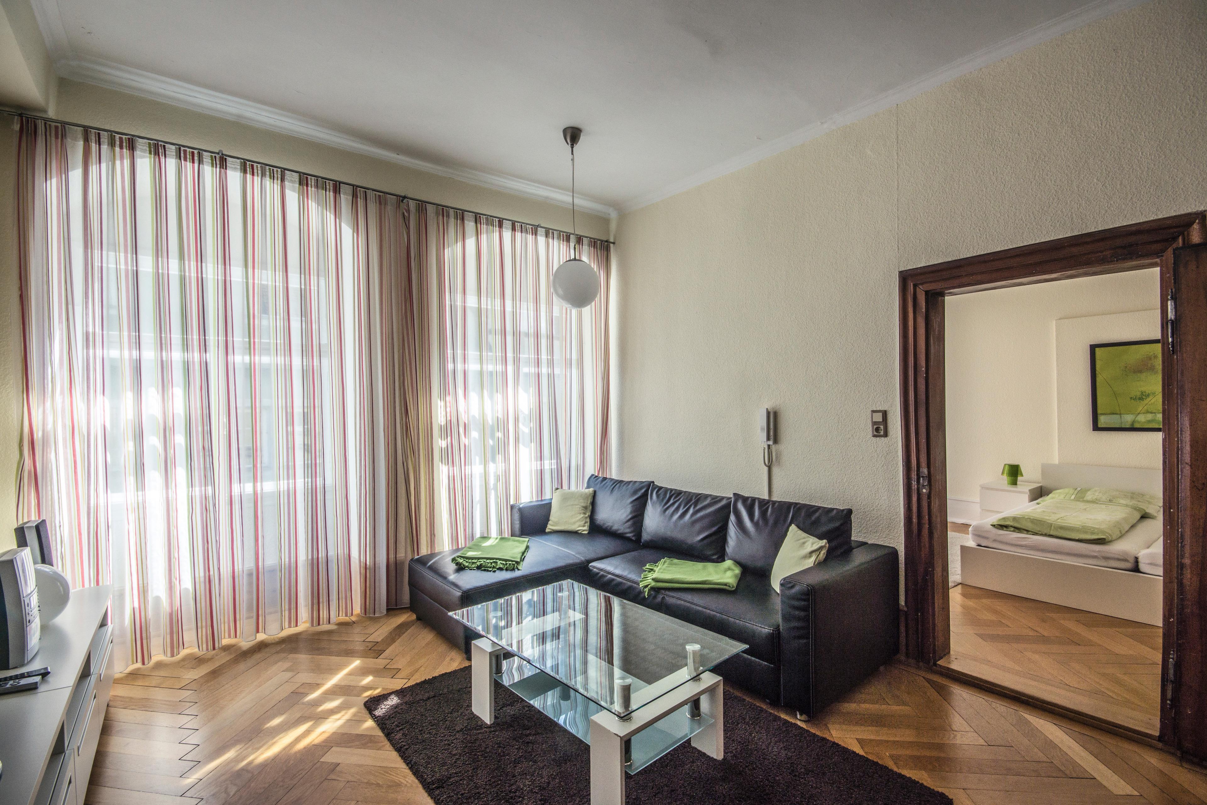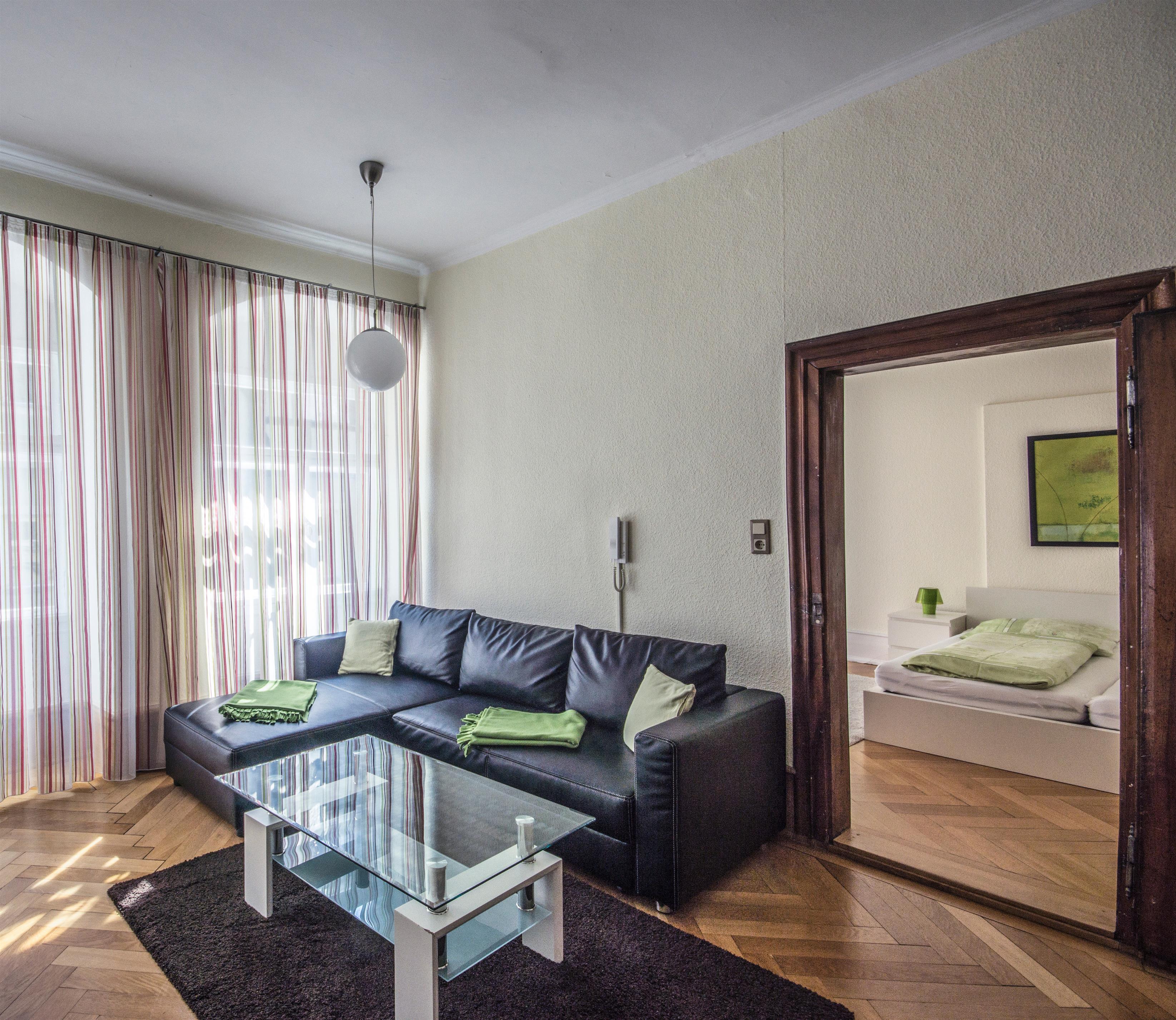 Im Wohnzimmer wartet eine bequeme Eck-Couch auf Sie, die für eine dritte Person zum Schlafen genutzt werden kann - und selbstverständlich zum Lesen, Entspannen, Musikhören oder Fernsehen.