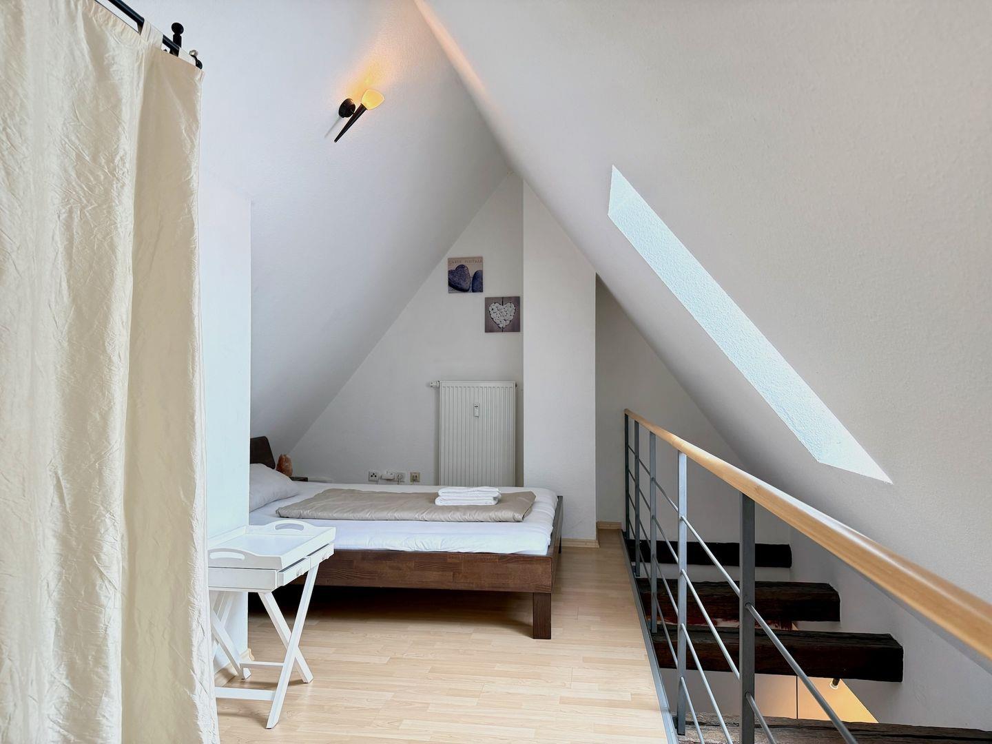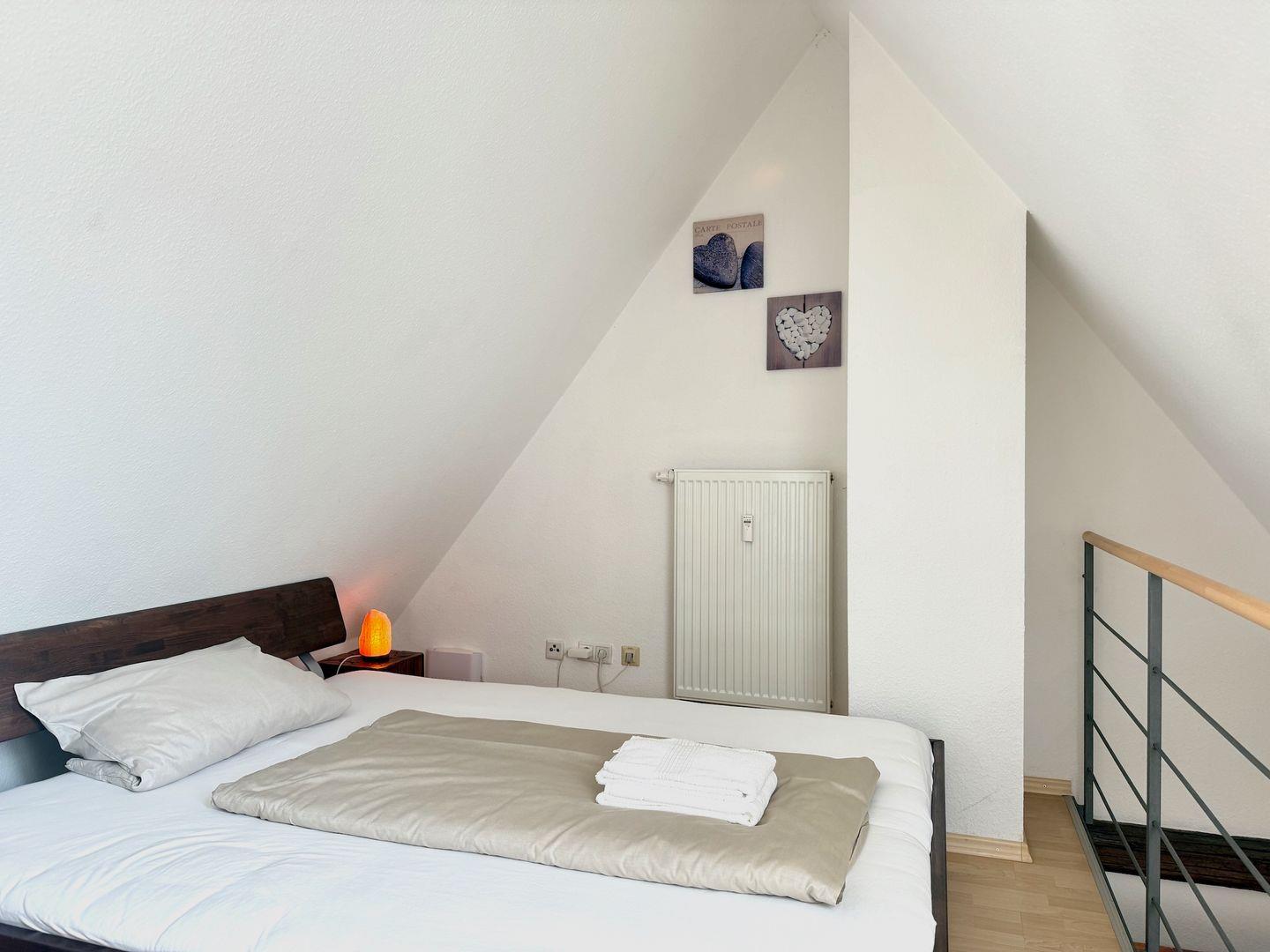 Die komfortabel ausgestattete Ferienwohnung ist 63qm groß und verfügt über ein Schlafzimmer, ein weiteres Doppelbett auf der offenen Galerie sowie eine Schlafcouch im Wohnbereich. Die Wohnung ist geeignet für 1 bis zu 6 Personen - optimal für 2 - 4 Erwachsene und 2 Kinder. Ihr Urlaubsdomizil befindet sich im 4. Obergeschoss und ist komfortabel mit dem Aufzug zu erreichen.