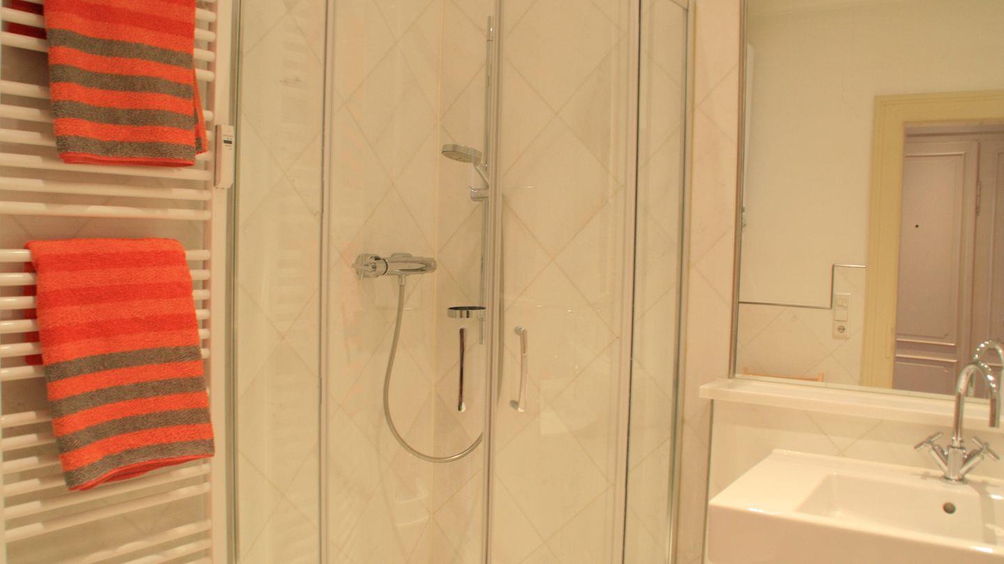 Die Wohnung besticht durch zwei geräumige und ruhig gelegene Schlafzimmer, die Ihnen erholsame Nächte garantieren. Das Badezimmer, gestaltet mit edlem Naturmarmor, bietet eine großzügige Dusche, moderne Ausstattung und eine angenehme Fußbodenheizung.