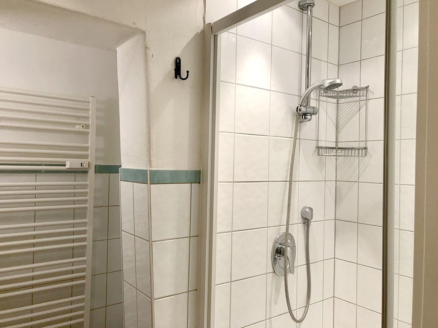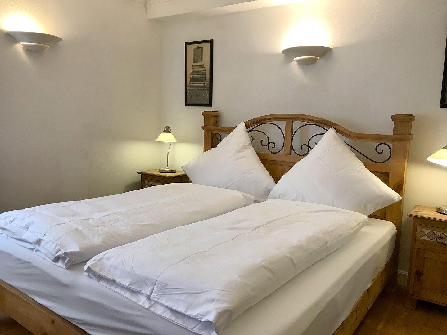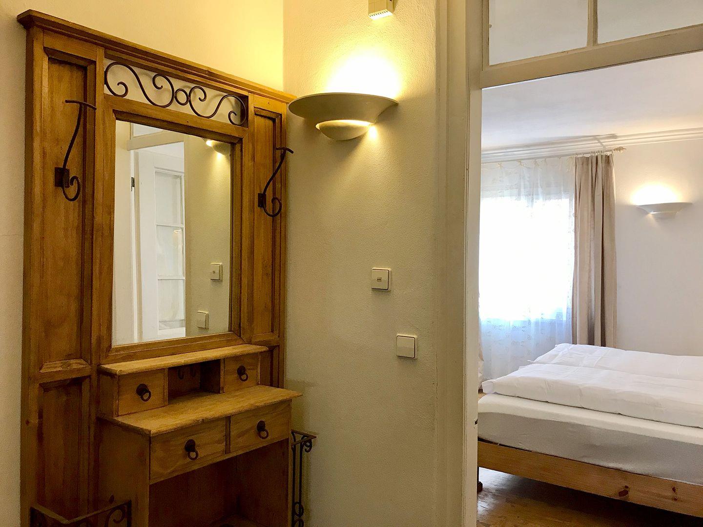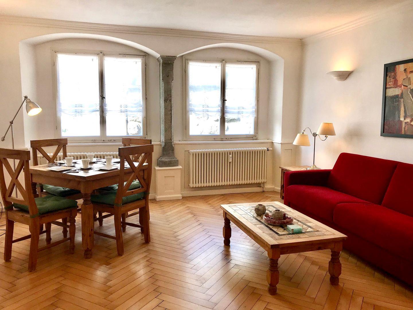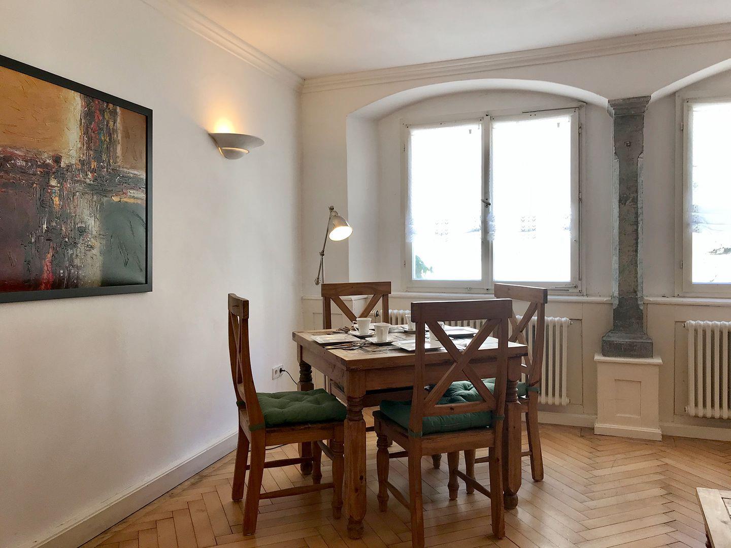 Die Wohnung liegt zentral am Rande des Stadtgartens, direkt an der historischen Stadtmauer – und damit nur wenige Schritte vom Herzen der Altstadt entfernt. Der gepflegte Parkettboden unterstreicht den nostalgischen Charme der Unterkunft. Das separate Badezimmer verfügt über eine Dusche.