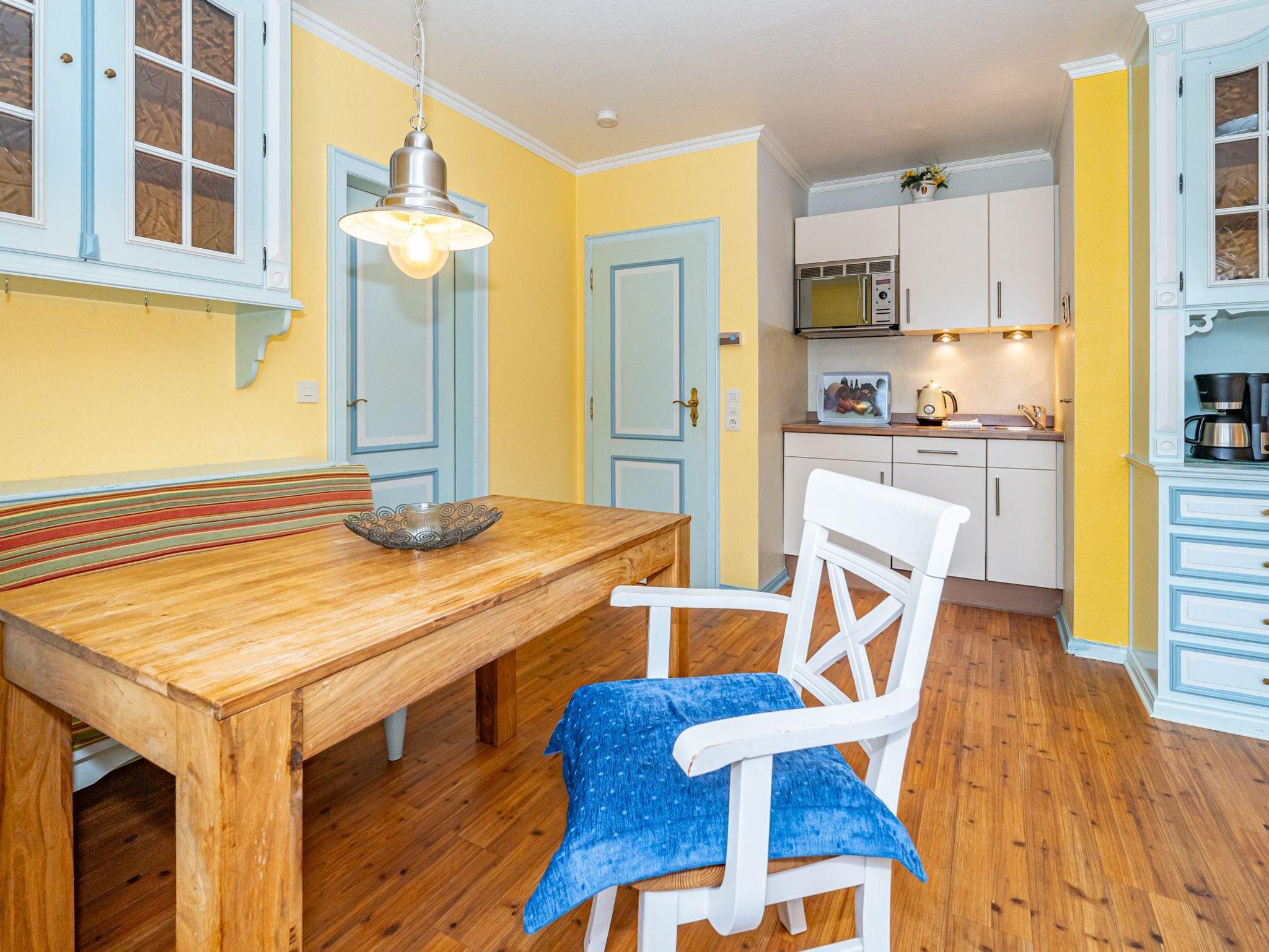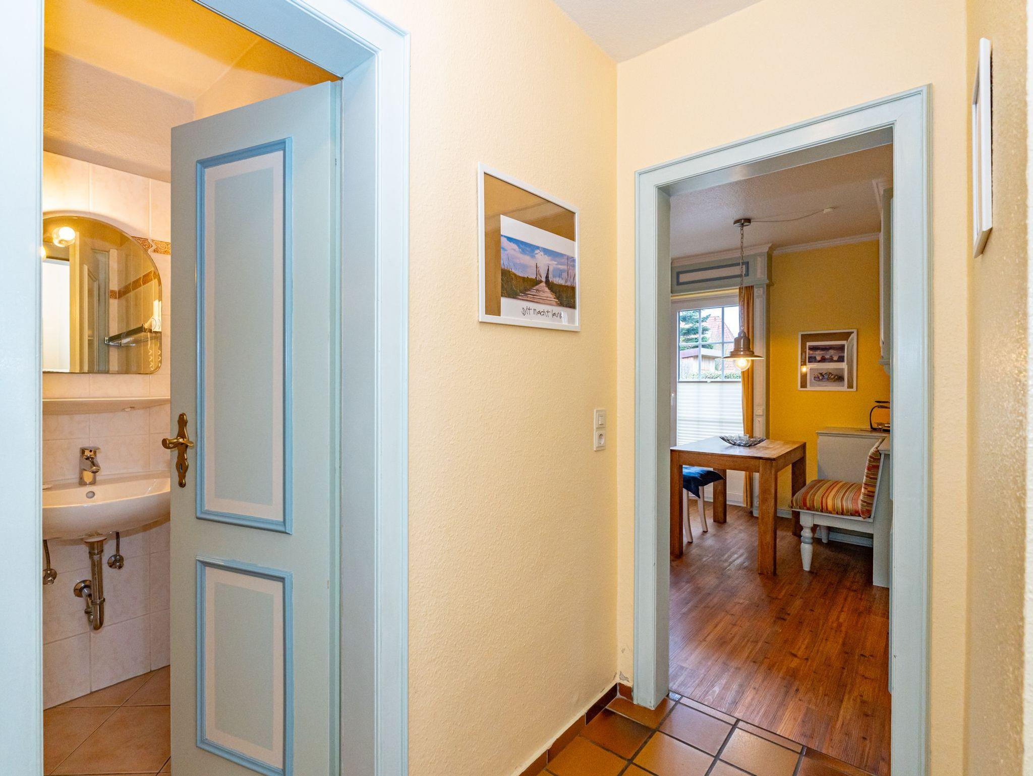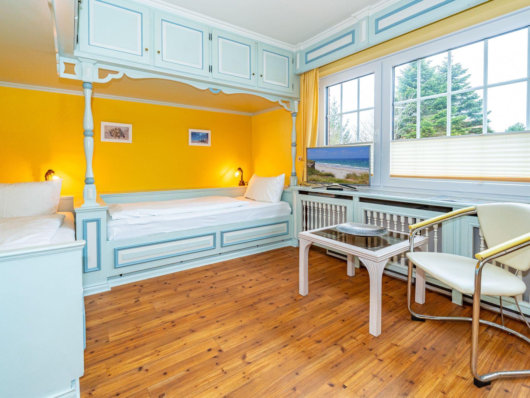 Im dritten Apartment, welches sich ebenfalls im Erdgeschoss befindet und über eine eigene Terrasse verfügt, werden Schifffahrtsträume wahr. 50 Quadratmeter verteilen sich auf 2 Zimmer mit gemütlichen Schlafkojen für 4 Personen. Über den offen gestalteten Wohn- und Essbereich gelangen Sie direkt zum Außenbereich. Das Badezimmer ist ausgestattet mit Dusche, WC und Waschbecken.