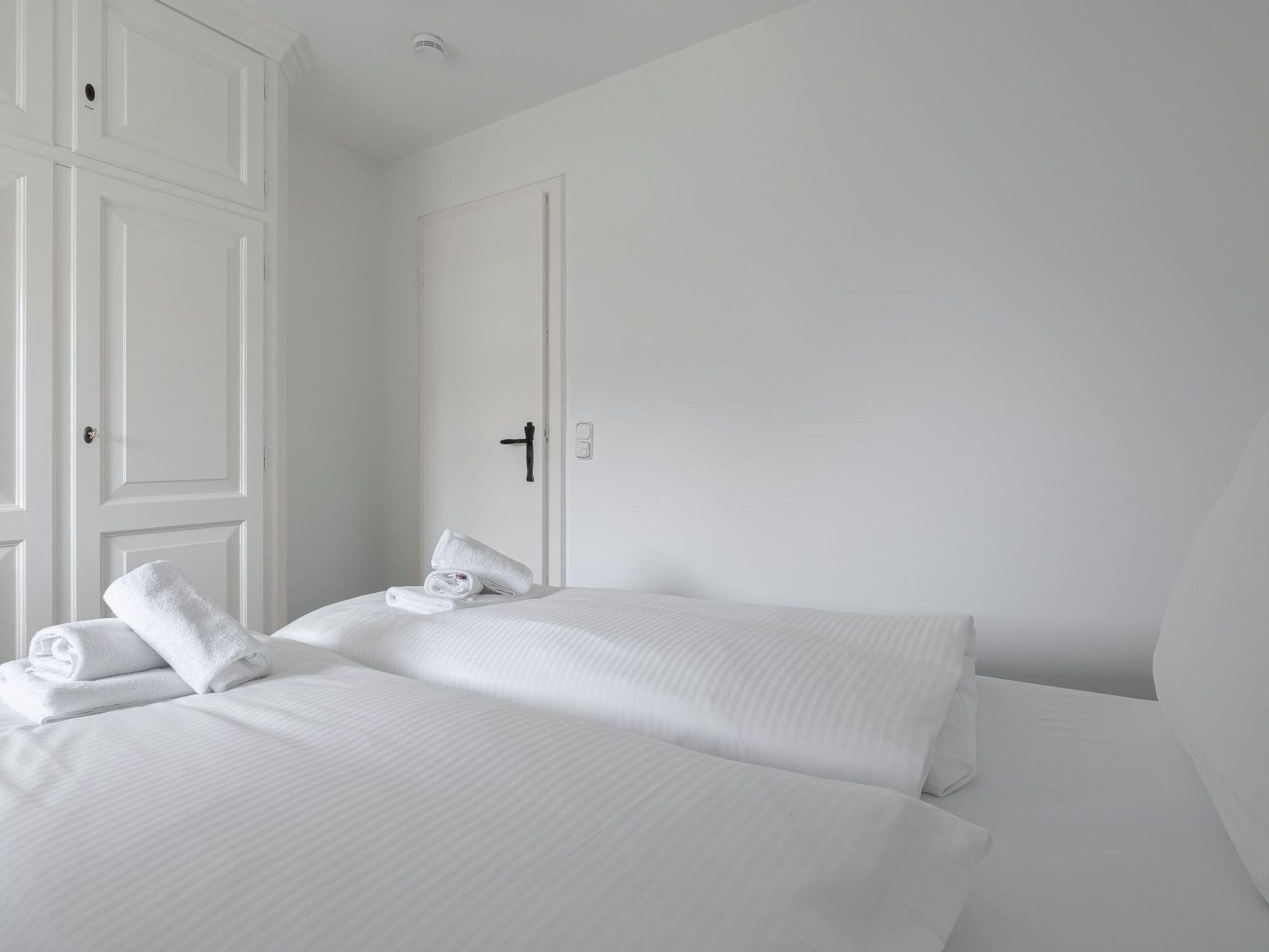 Atmosphäre. Eine offene Wohnküche sorgt für kulinarische Pausen zu jeder Tageszeit. Zum App. gehören zwei Schlafzimmer mit einem Doppelbett bzw. zwei Einzelbetten. Ein großzügig