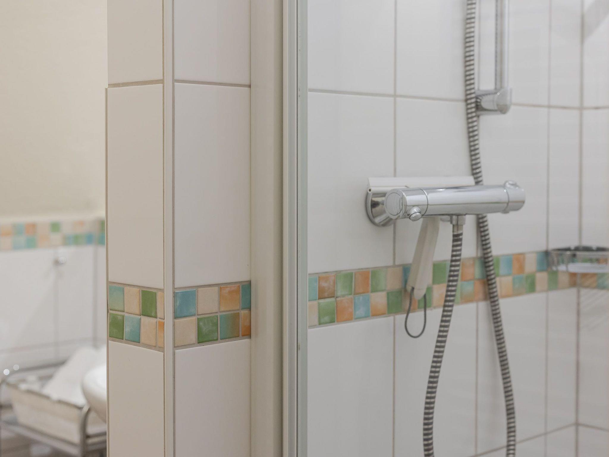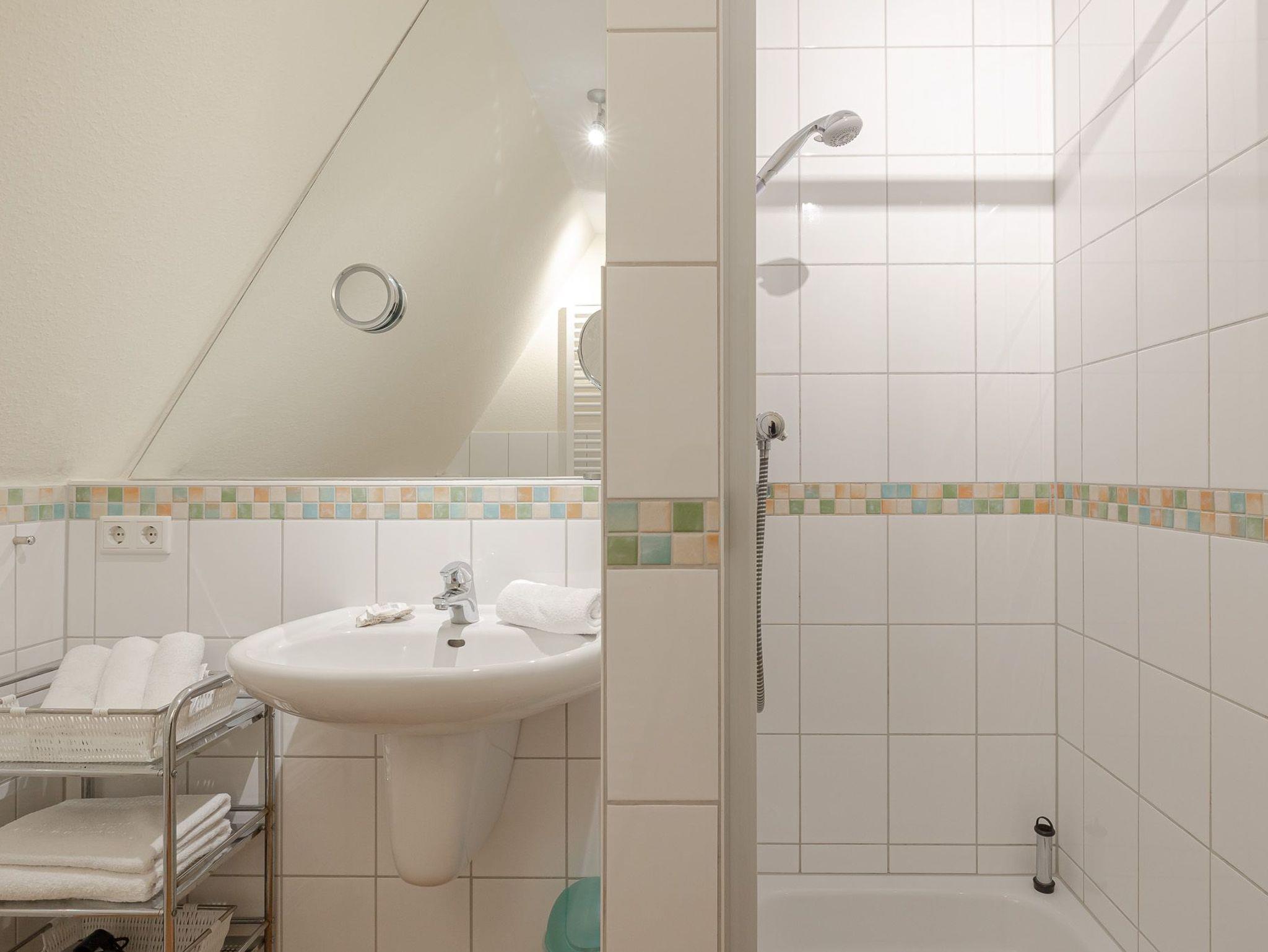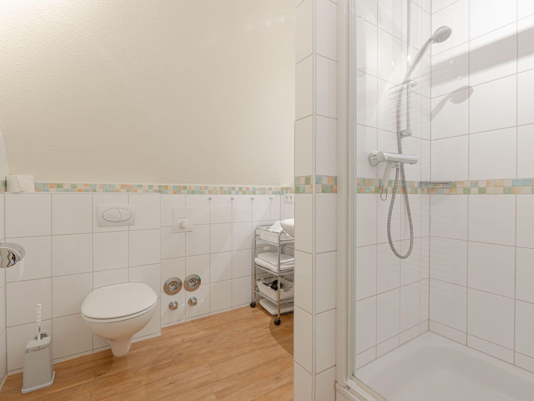 Badezimmer mit Dusche und WC.